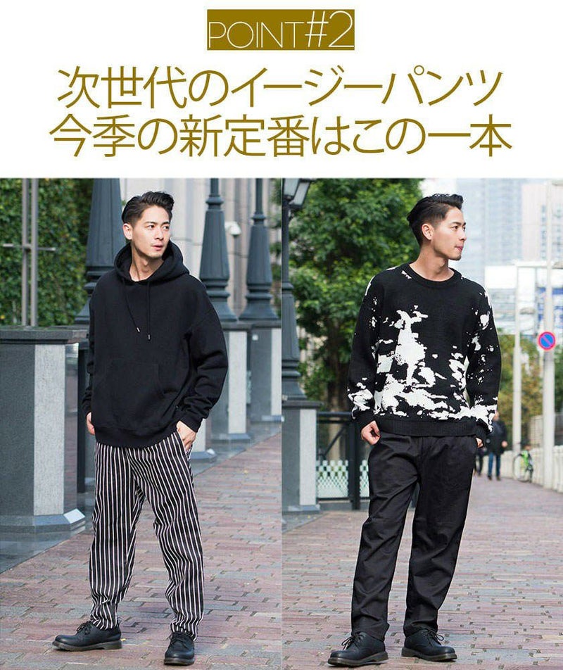 イージーパンツの着心地の楽チンさと快適さはそのままに、デザインにもこだわり旬のテイストにも落とし込めるサイズ感とルックスに。
