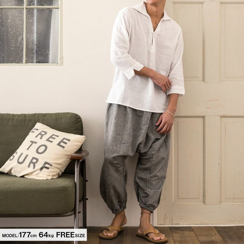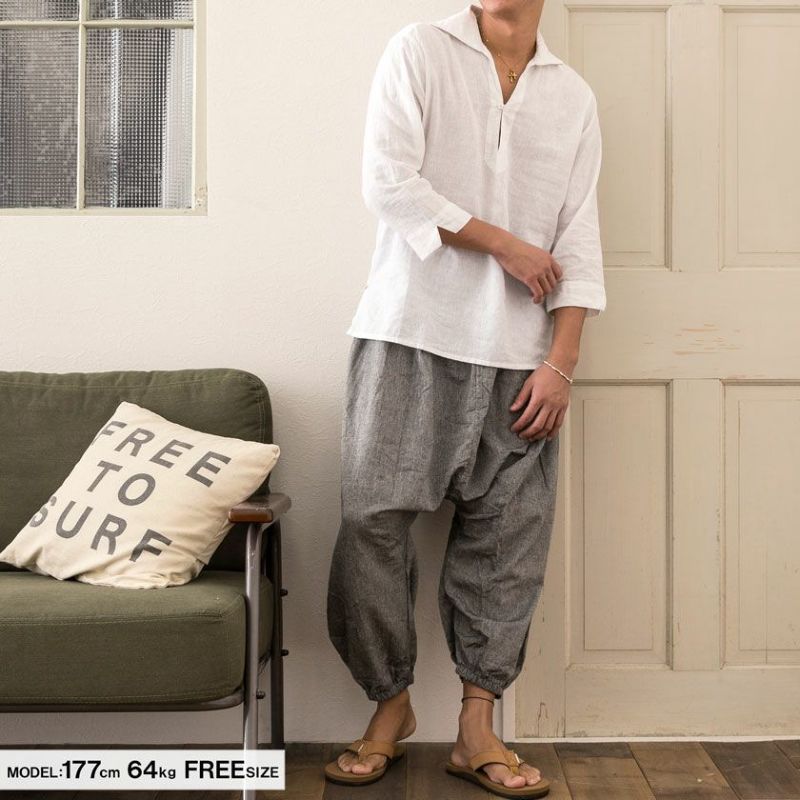 着心地も楽チンで涼しげなゆったりサルエルパンツです。