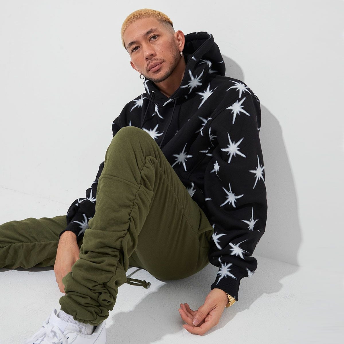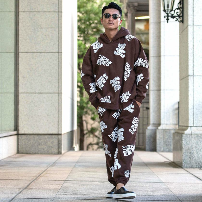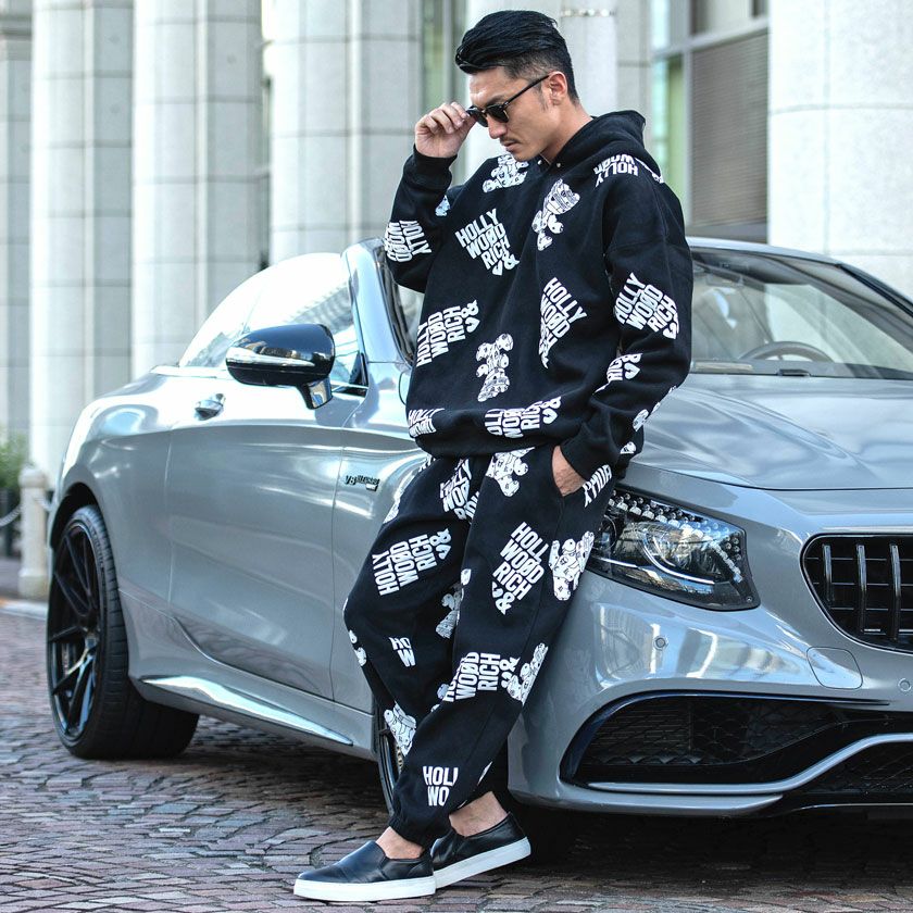 毎日履きたい、快適でおしゃれなスウェットパンツ。カジュアルスタイルに最適。 Hollywood rich.&(ハリウッドリッチ)裏起毛総柄パンツ/全3色