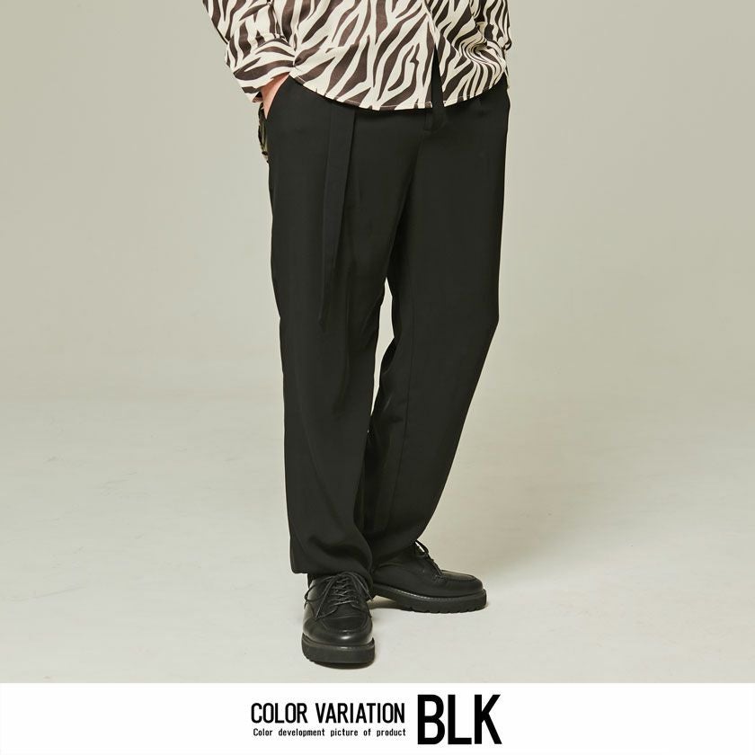 キレイめカジュアルにもぴったりなスラックス。シンプルで上品な印象を与える。 CavariA(キャバリア)ベルト付きワイドパンツ/全4色