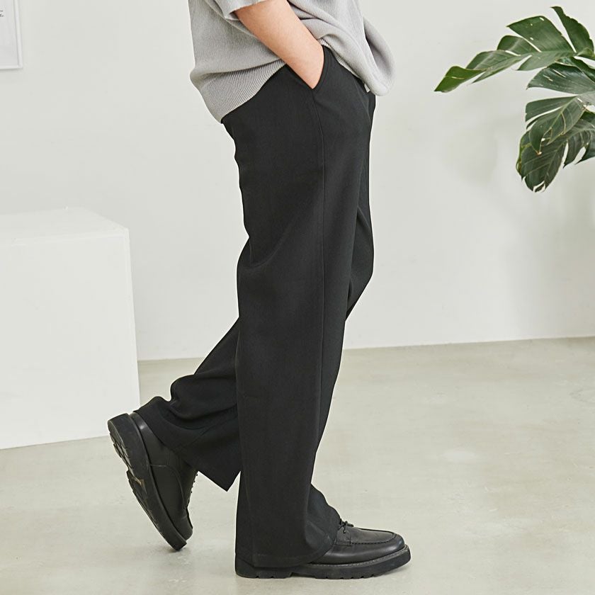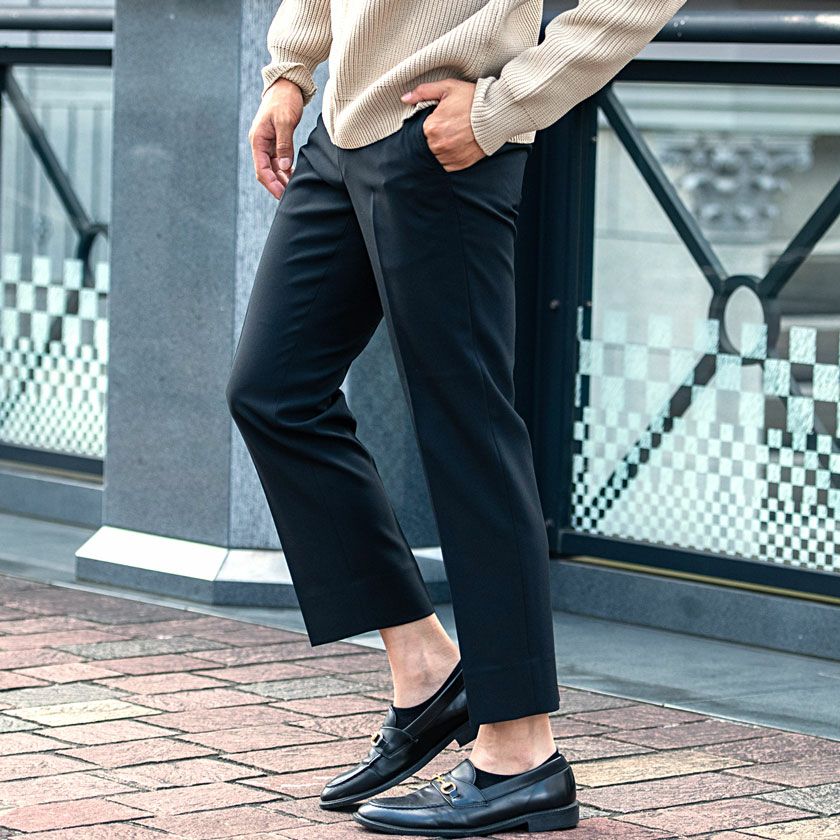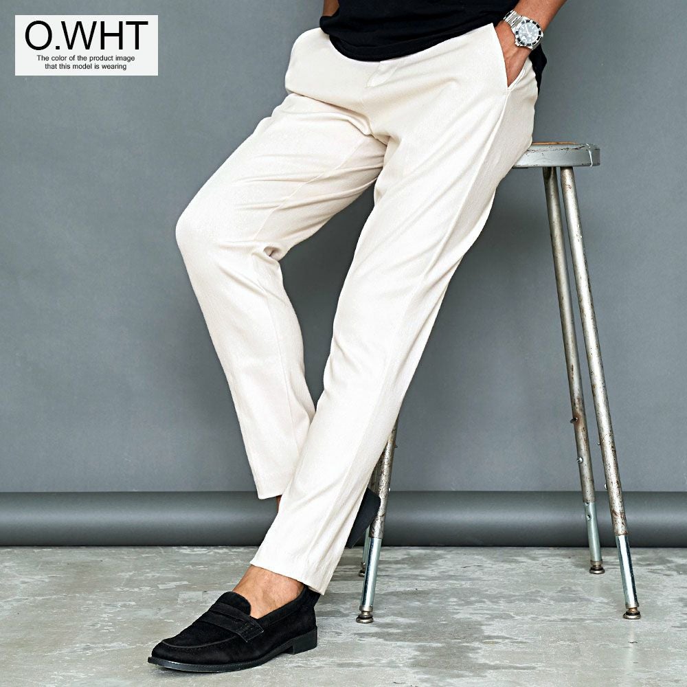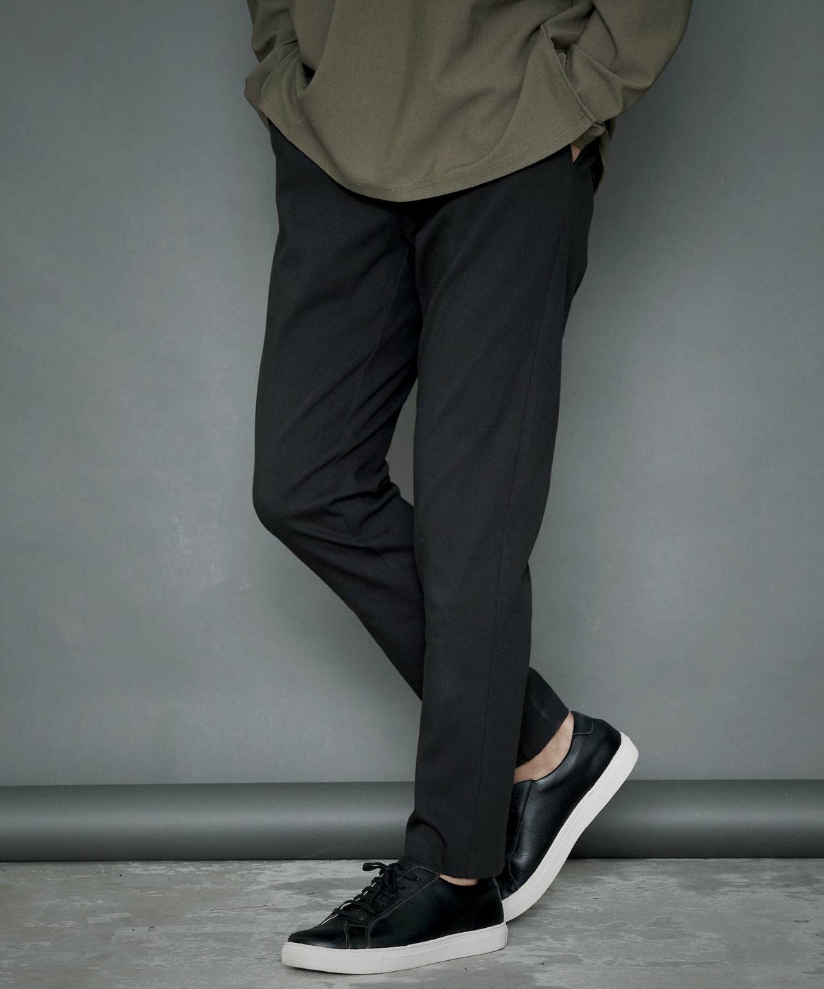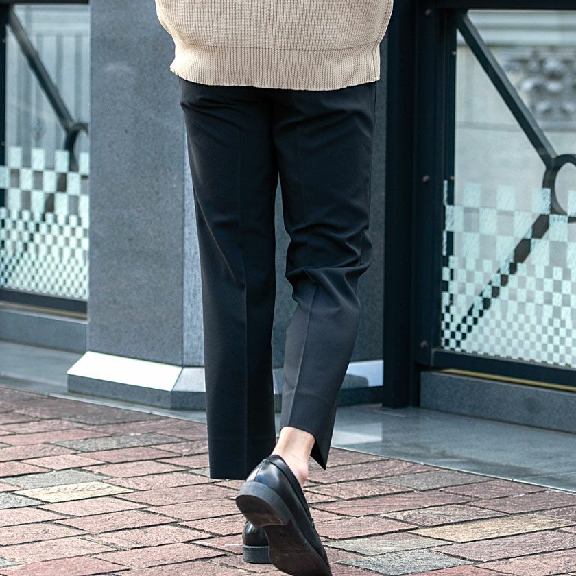 キレイめカジュアルにもぴったりなスラックス。シンプルで上品な印象を与える。 Bitter select(ビターセレクト)2WAYストレッチポリトロスラックス/全6色