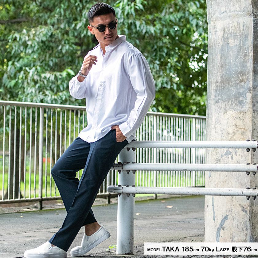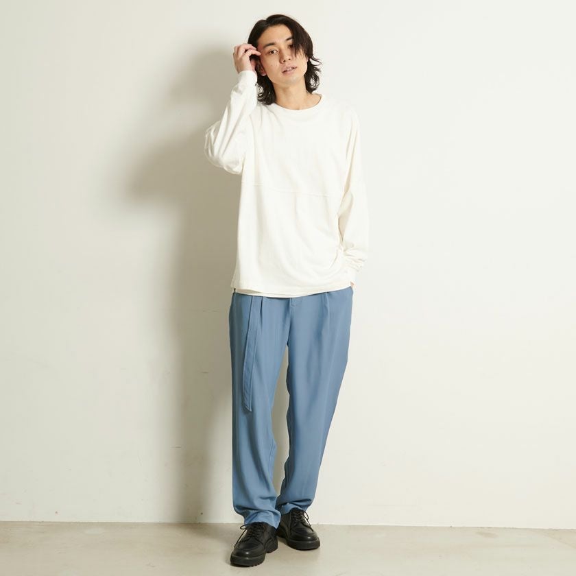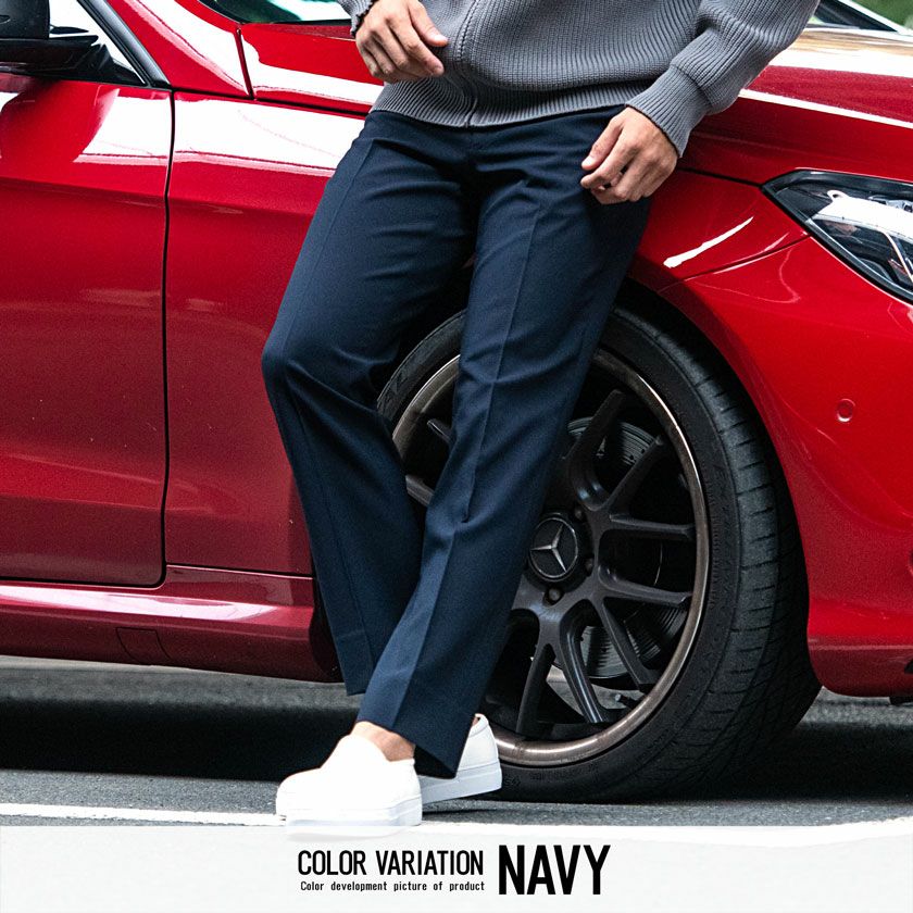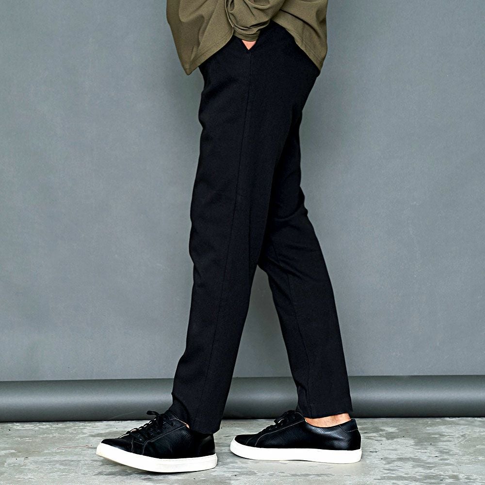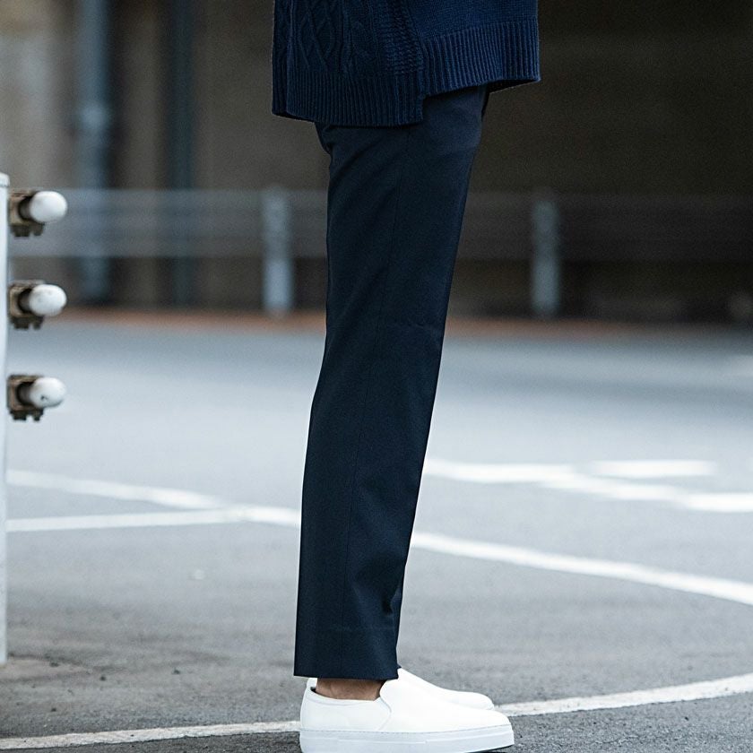 キレイめカジュアルにもぴったりなスラックス。シンプルで上品な印象を与える。 Bitter select(ビターセレクト)2WAYストレッチポリトロスラックス/全6色