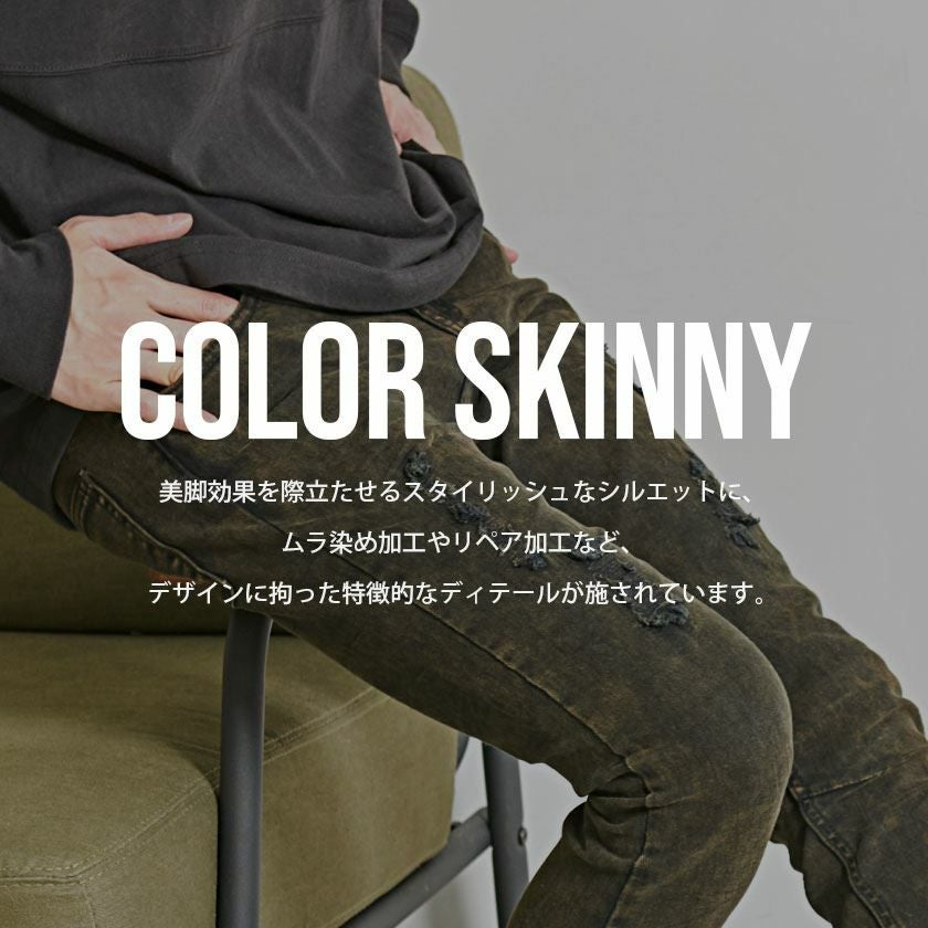 毎日のコーデに欠かせない、定番デニムパンツ。シンプルで着回し力抜群。 CavariA(キャバリア)ムラ染めスキニーカラーデニムパンツ/全3色