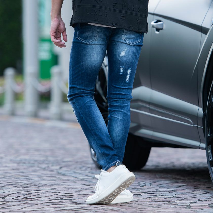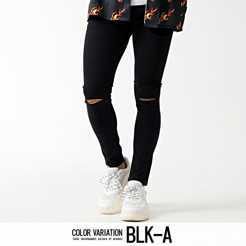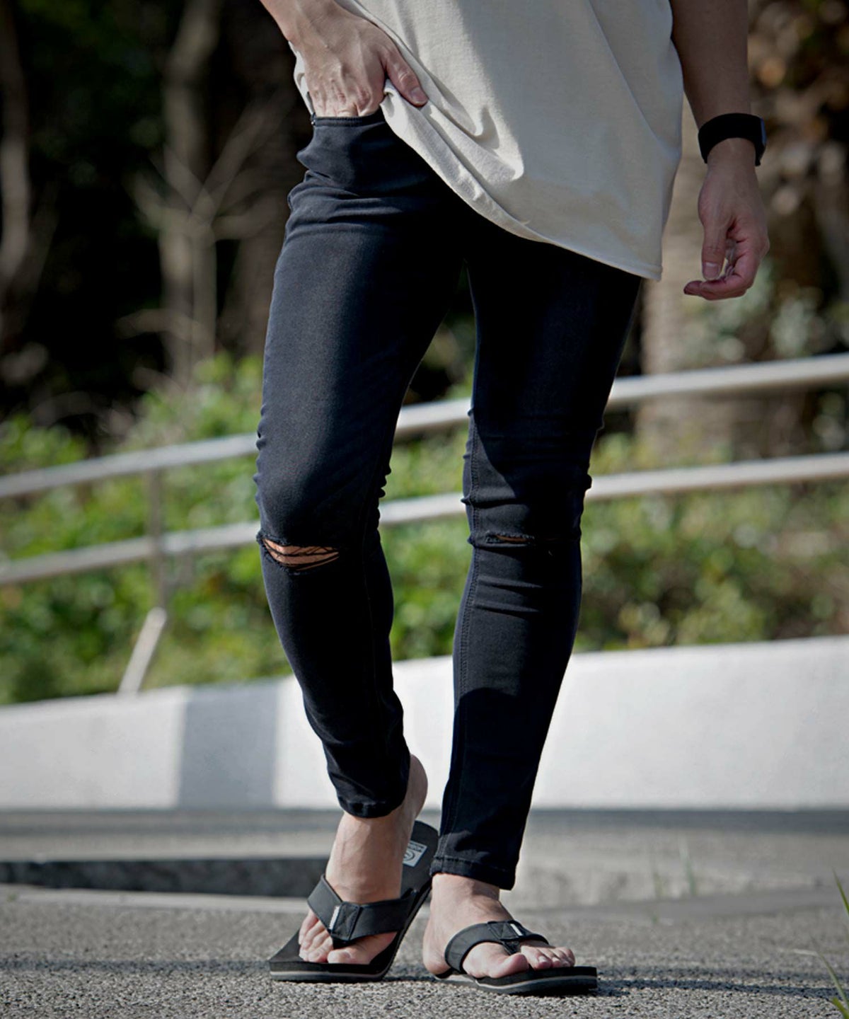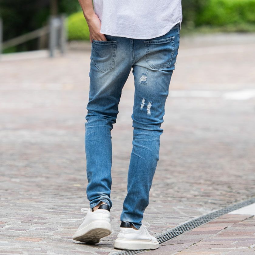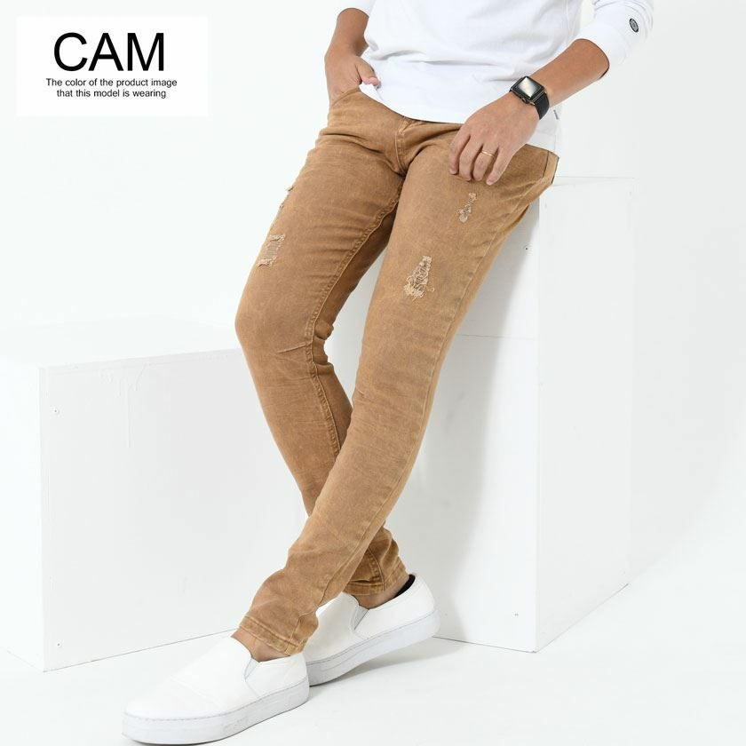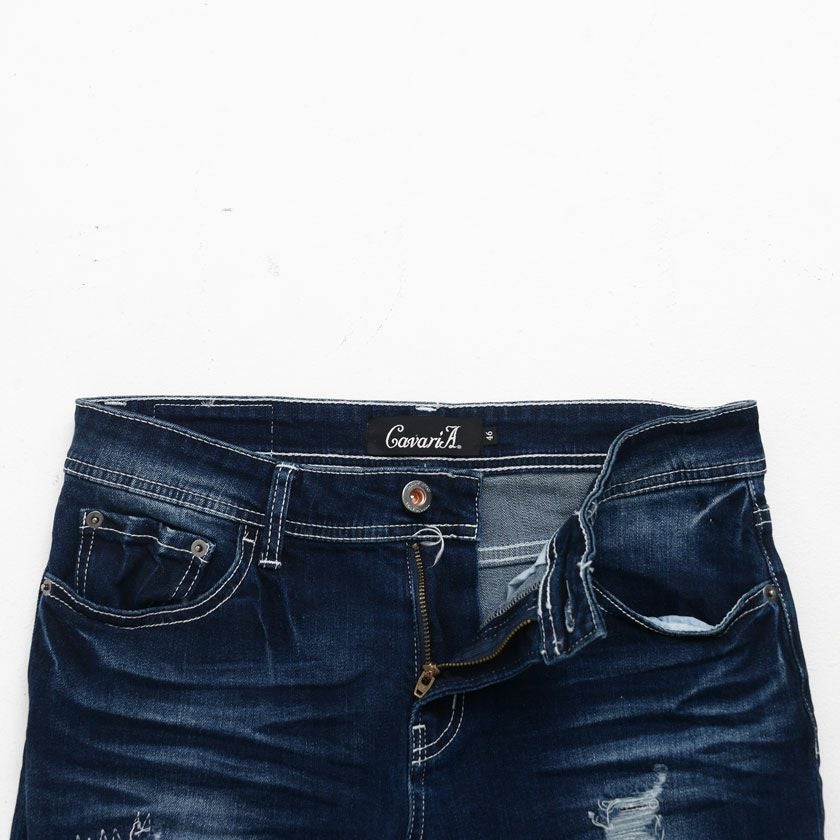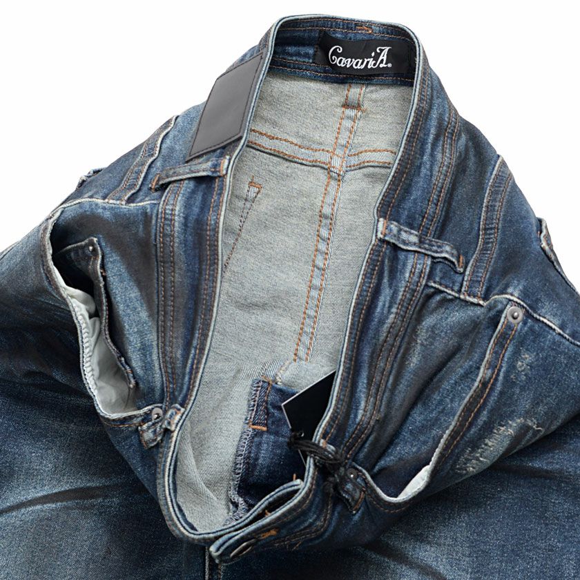 毎日のコーデに欠かせない、定番デニムパンツ。シンプルで着回し力抜群。 CavariA(キャバリア)ダメージ加工ストレッチスキニーデニムパンツ/全2色