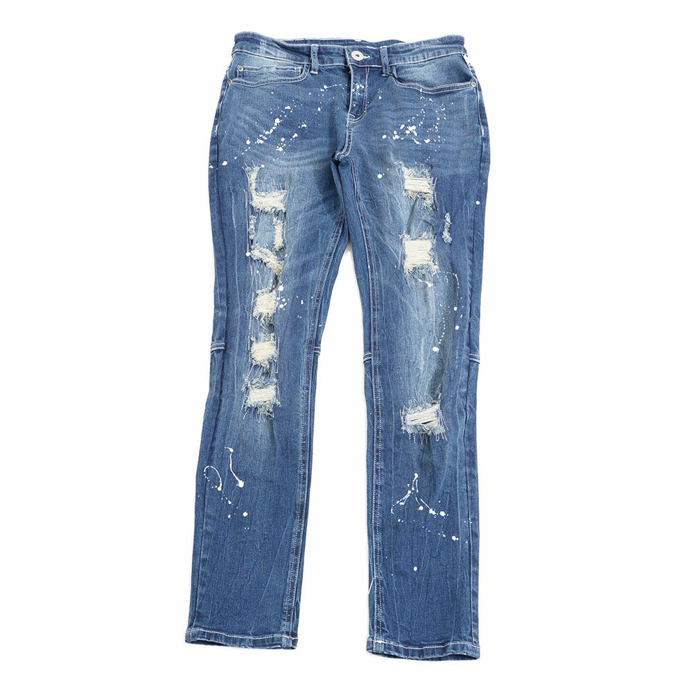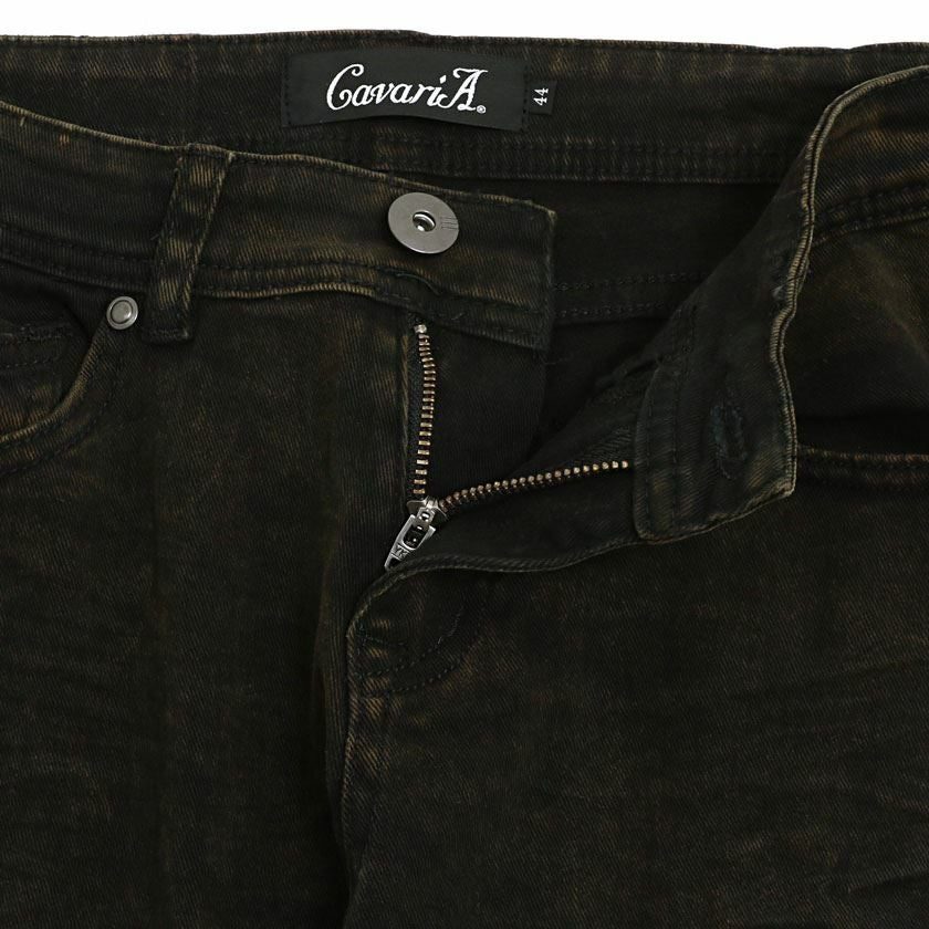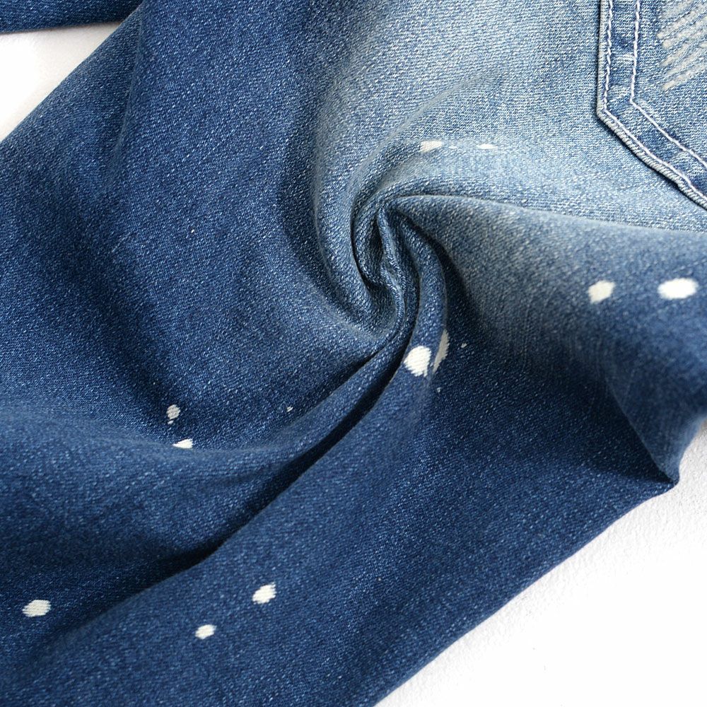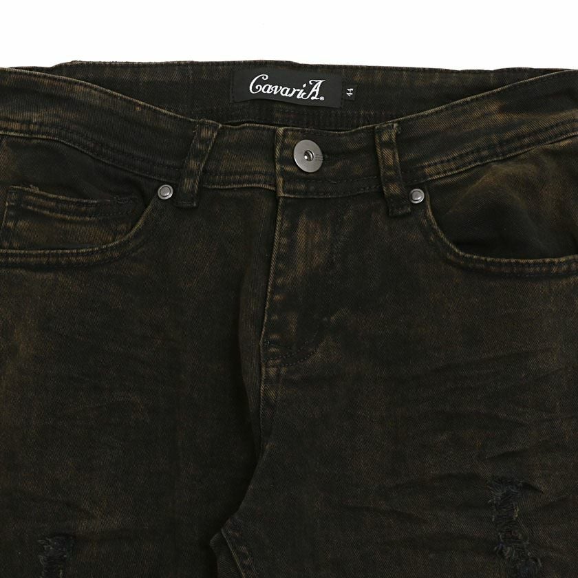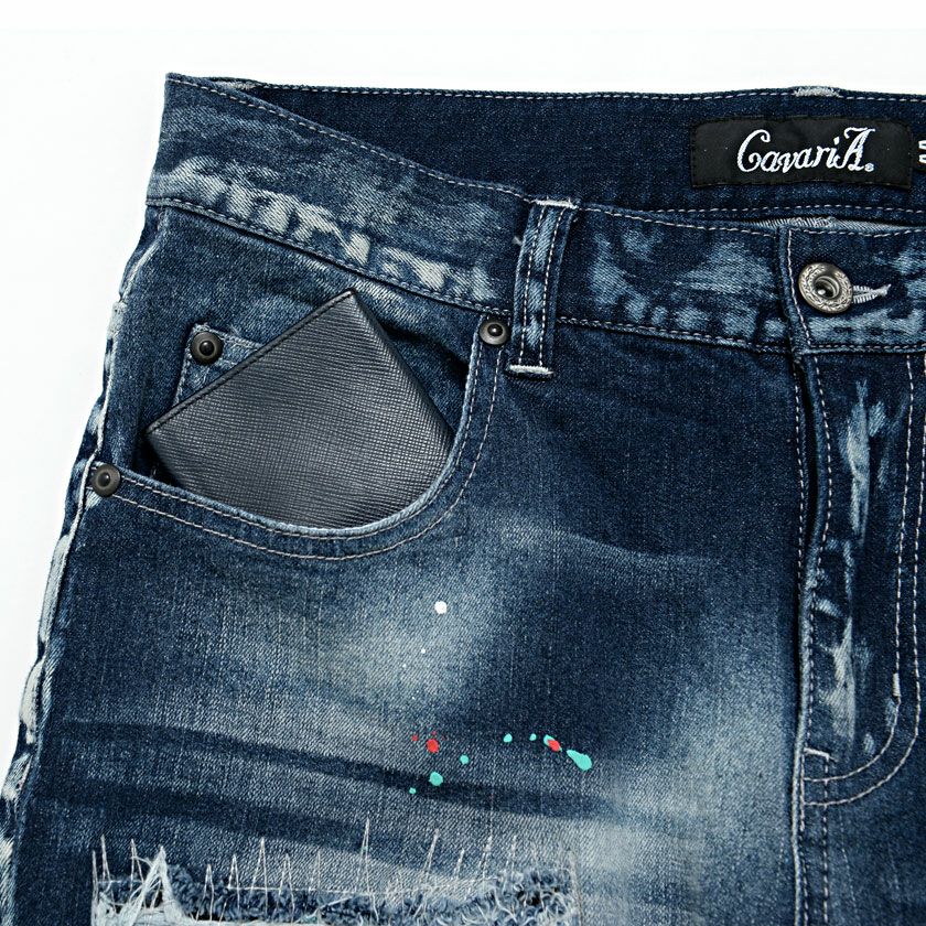 毎日のコーデに欠かせない、定番デニムパンツ。シンプルで着回し力抜群。 CavariA(キャバリア)ペンキ飛ばしダメージ加工ストレッチスキニーデニムパンツ/全2色