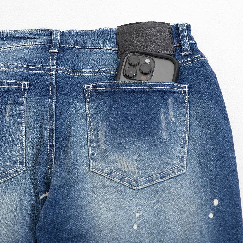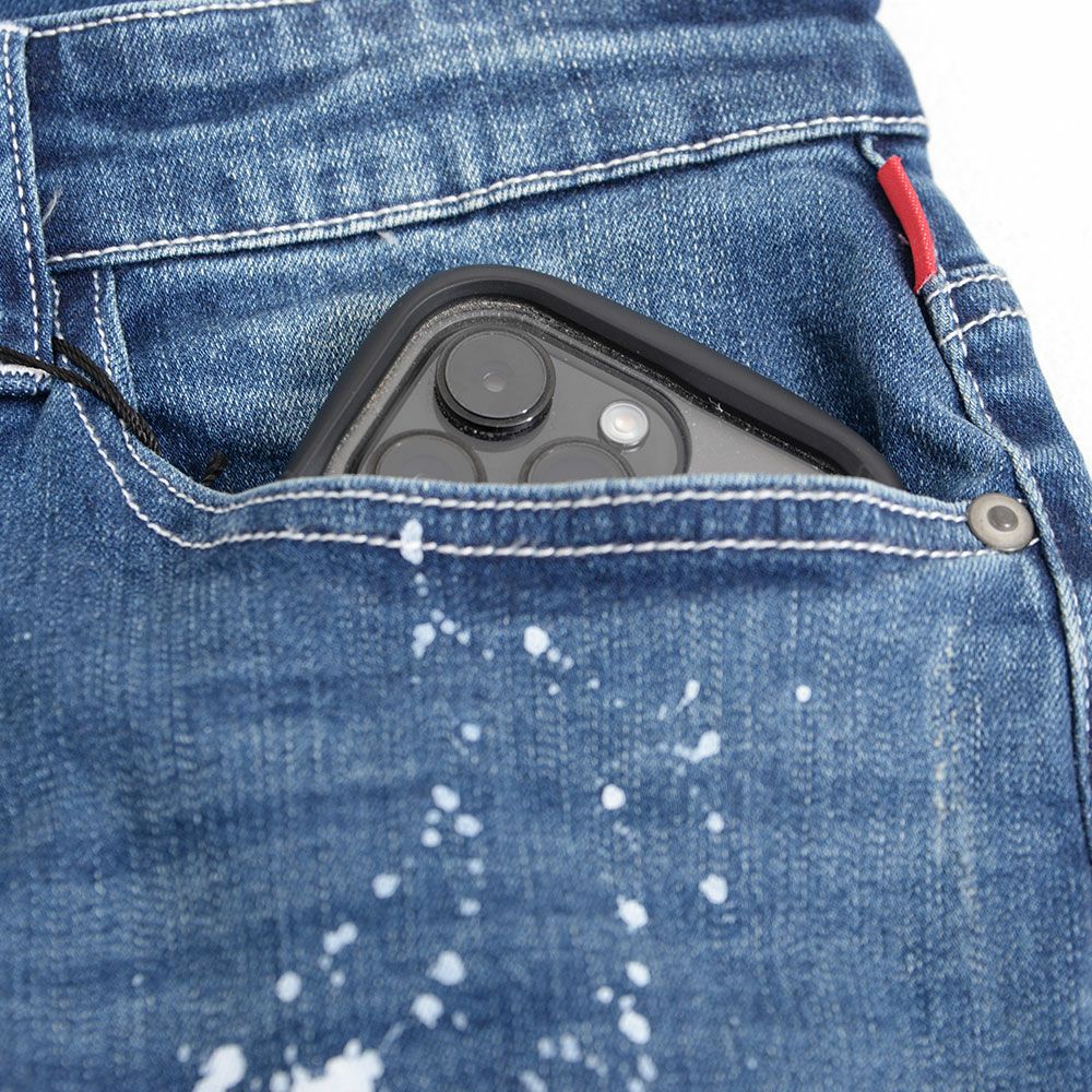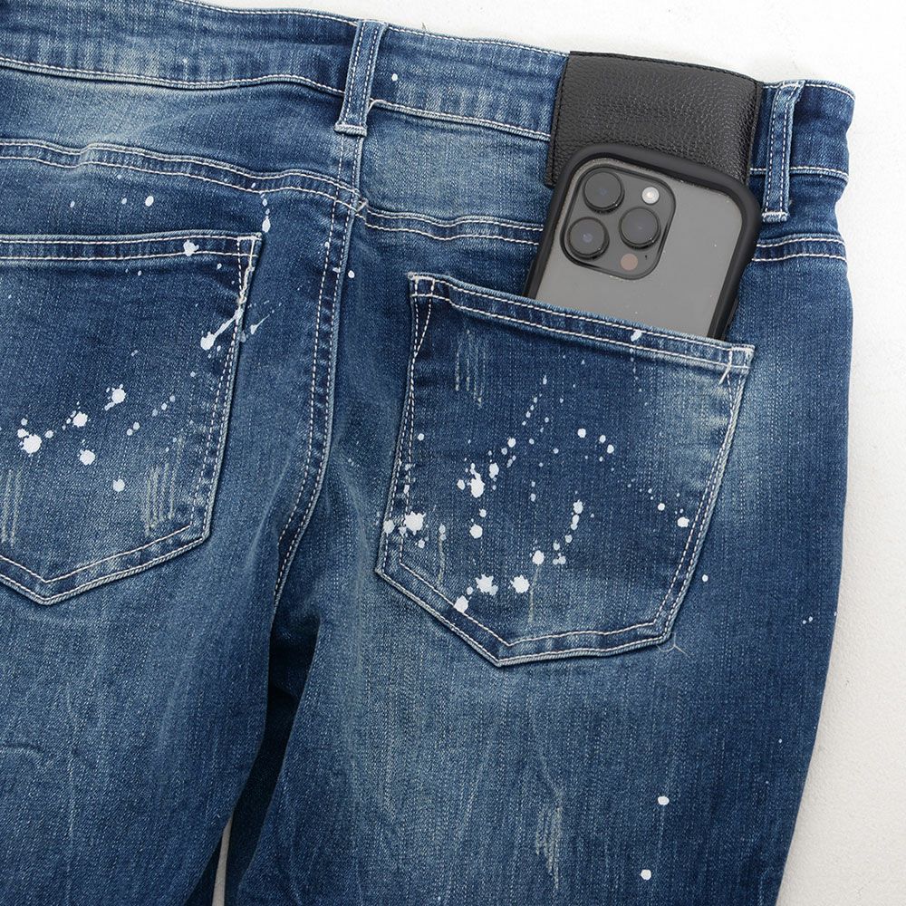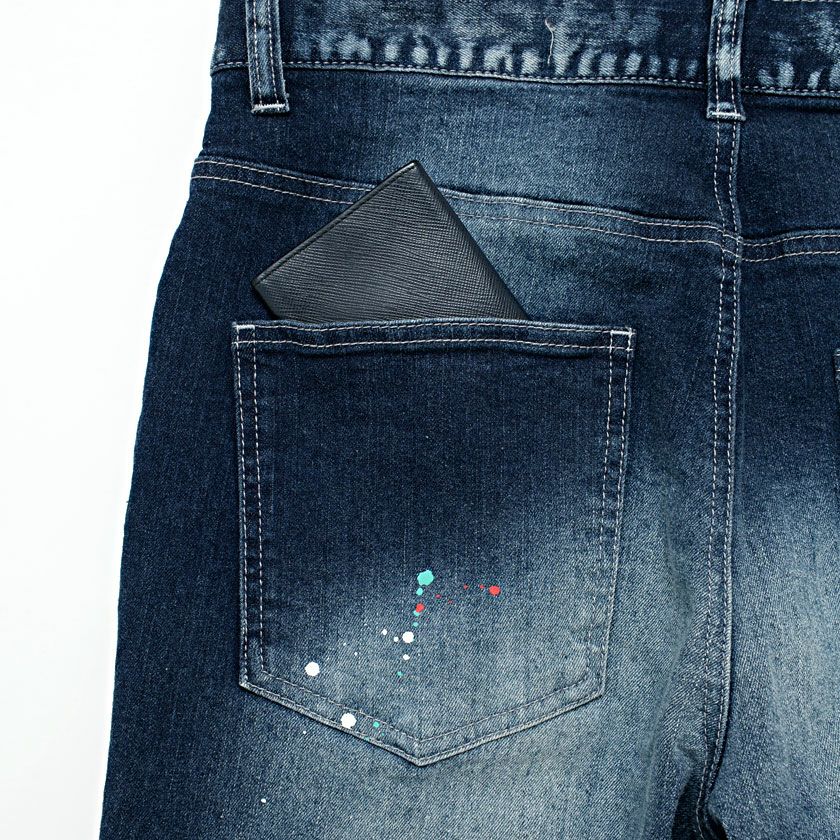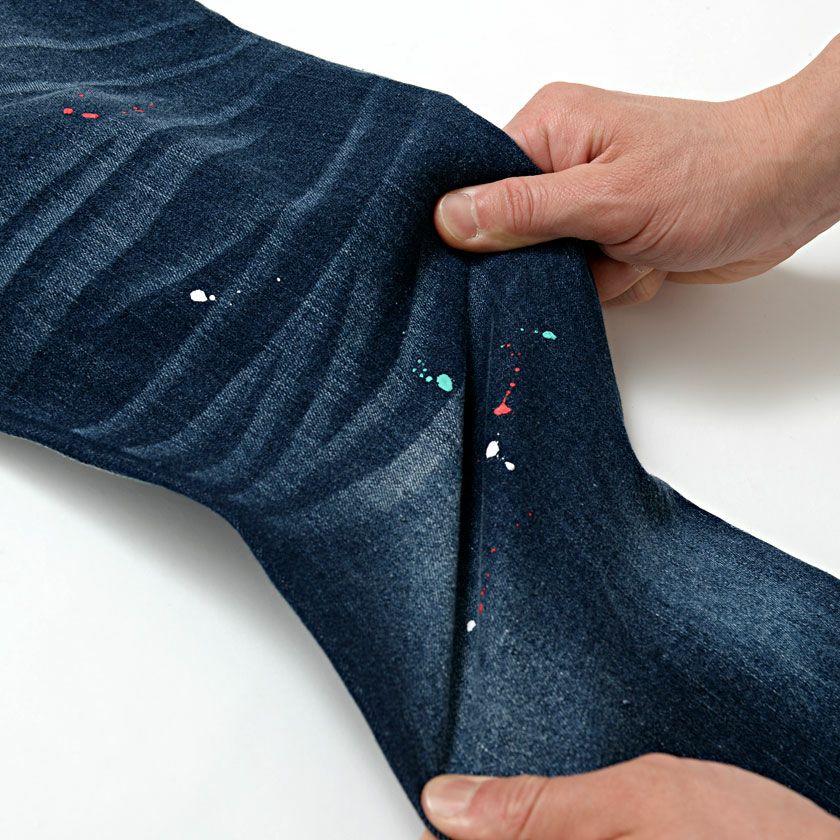毎日のコーデに欠かせない、定番デニムパンツ。シンプルで着回し力抜群。 CavariA(キャバリア)ペンキ飛ばしダメージ加工ストレッチスキニーデニムパンツ/全2色