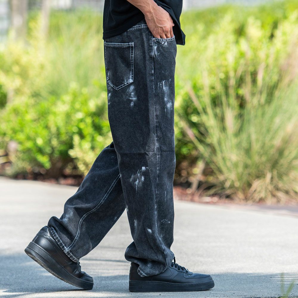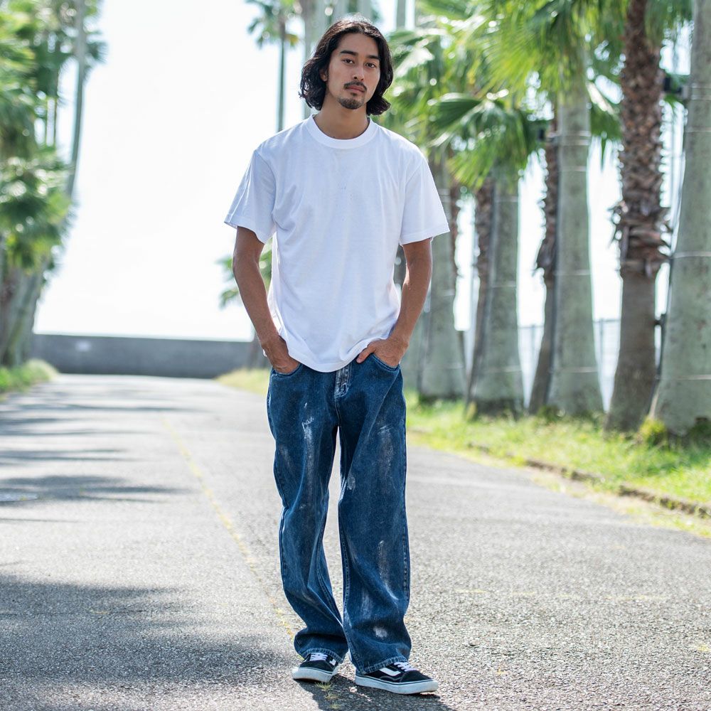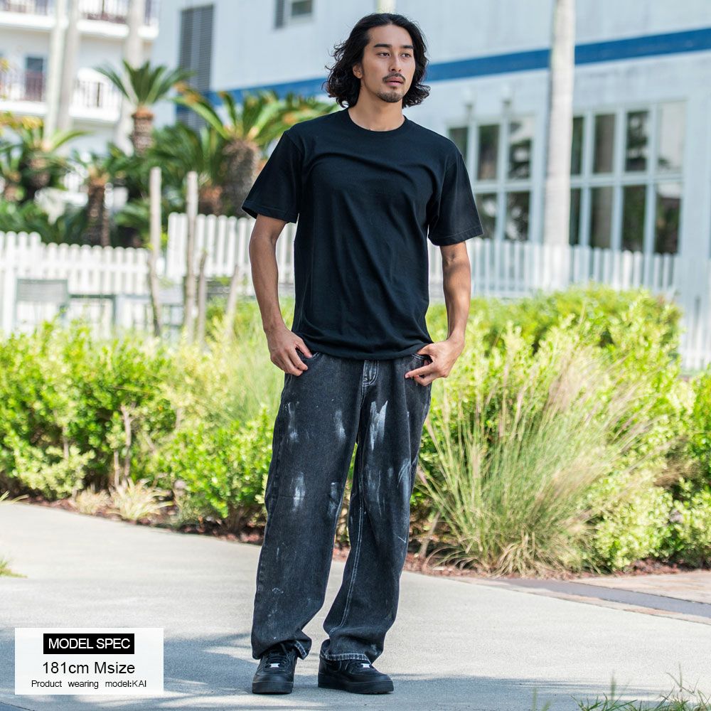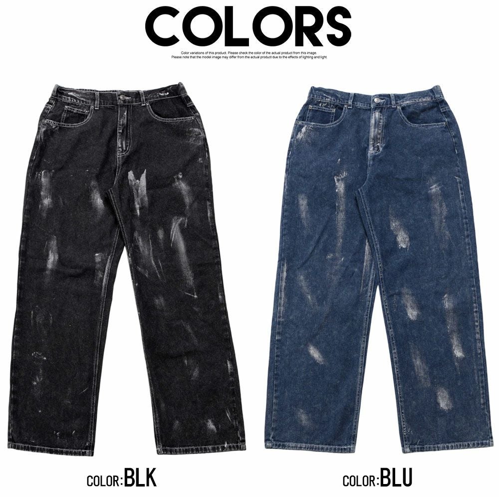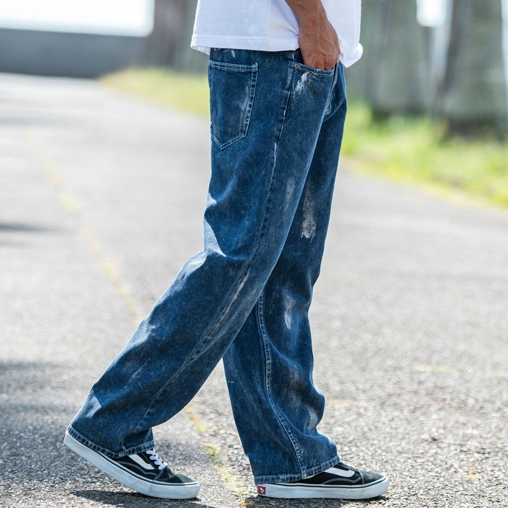デニムパンツ メンズ ブランド おしゃれ パンツ デニム ジーパン ワイドパンツ イージーパンツ バギー バギーパンツ ワイド ゆったり ペンキ ブラック ブルー M L CavariA 春 夏 秋 冬 CavariA(キャバリア)箔ペンキデニムバギーパンツ/全2色