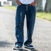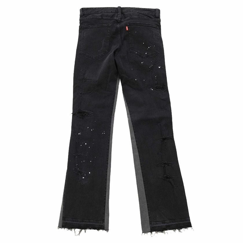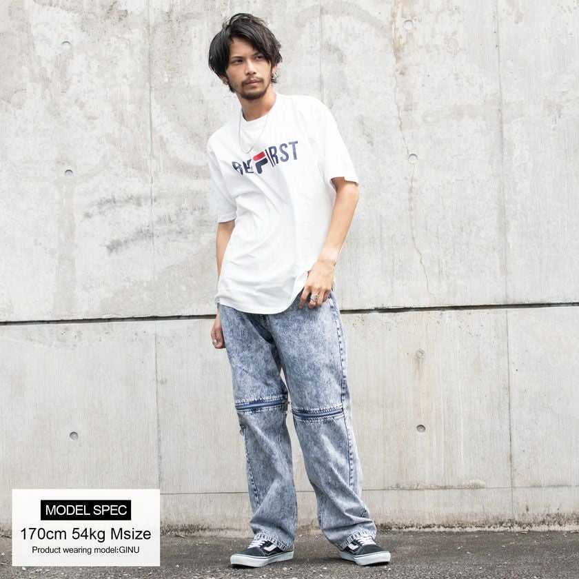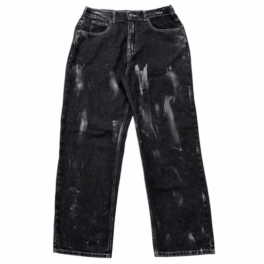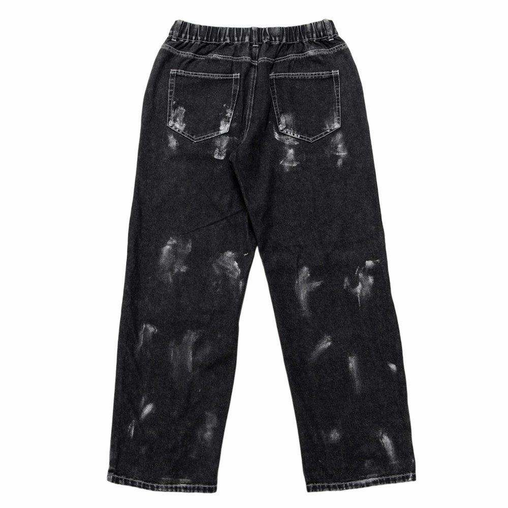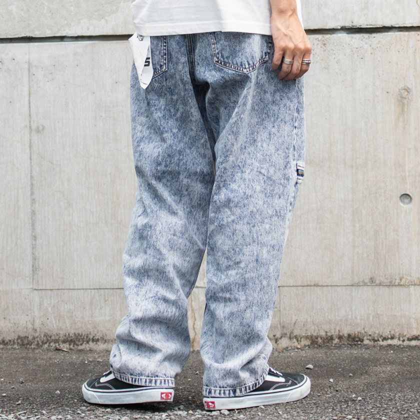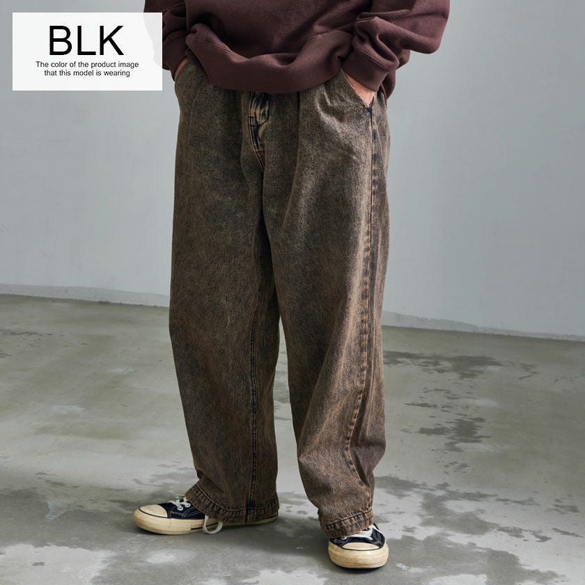 デニムパンツ メンズ ブランド おしゃれ パンツ デニム ジーパン ワイドパンツ イージーパンツ バギー バギーパンツ ワイド ゆったり ペンキ ブラック ブルー M L CavariA 春 夏 秋 冬 CavariA(キャバリア)箔ペンキデニムバギーパンツ/全2色