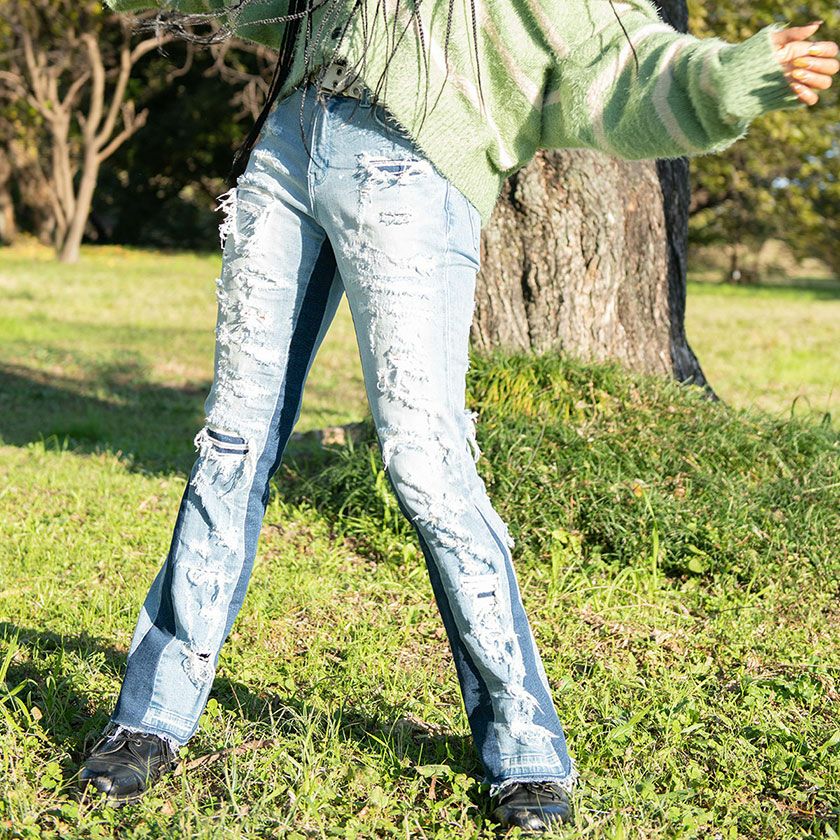 ※こちらの商品はパンツのみの販売となります。別売りのパーカーと組み合わせることで、セットアップとしてもお使い頂けます。 CavariA(キャバリア)総柄カットデニムパンツ/全3色