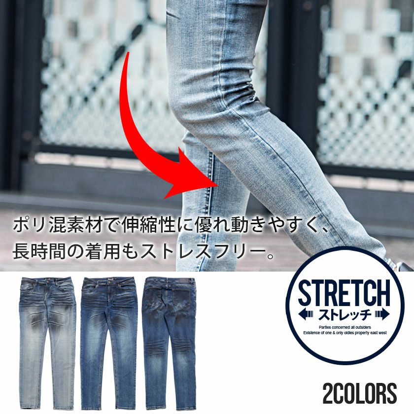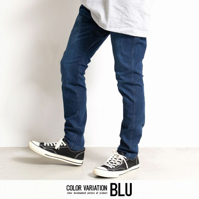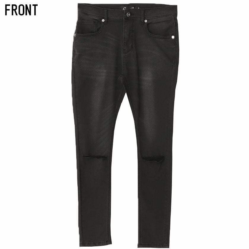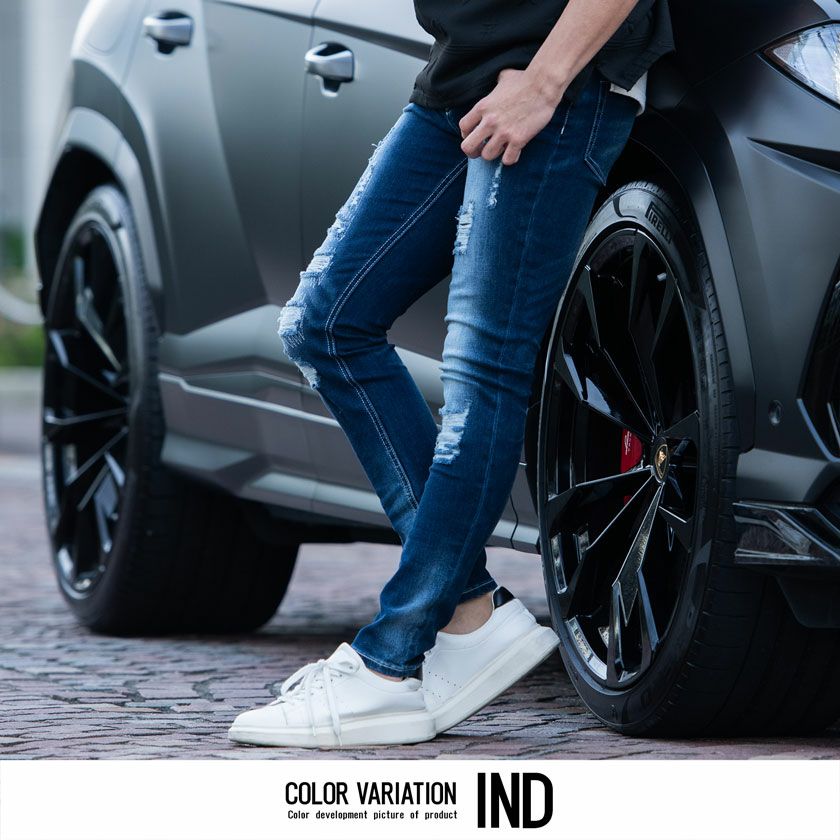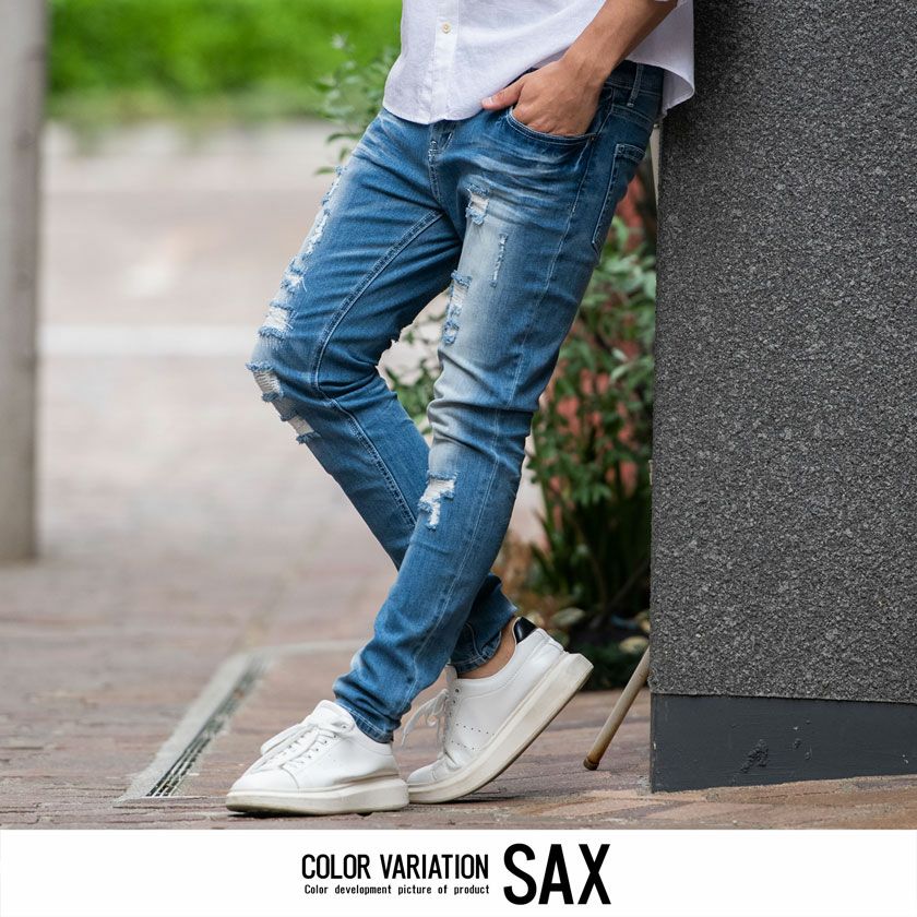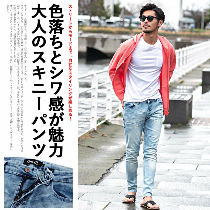 デニムパンツ メンズ スキニーパンツ スキニーデニム ジーンズ ジーパン アンクル丈 アンクルデニム アンクルパンツ Gパン ストレッチ 細身 スリム タイト ダメージ CavariA(キャバリア)リペア立体ヒゲストレッチスキニーアンクルデニムパンツ/全3色