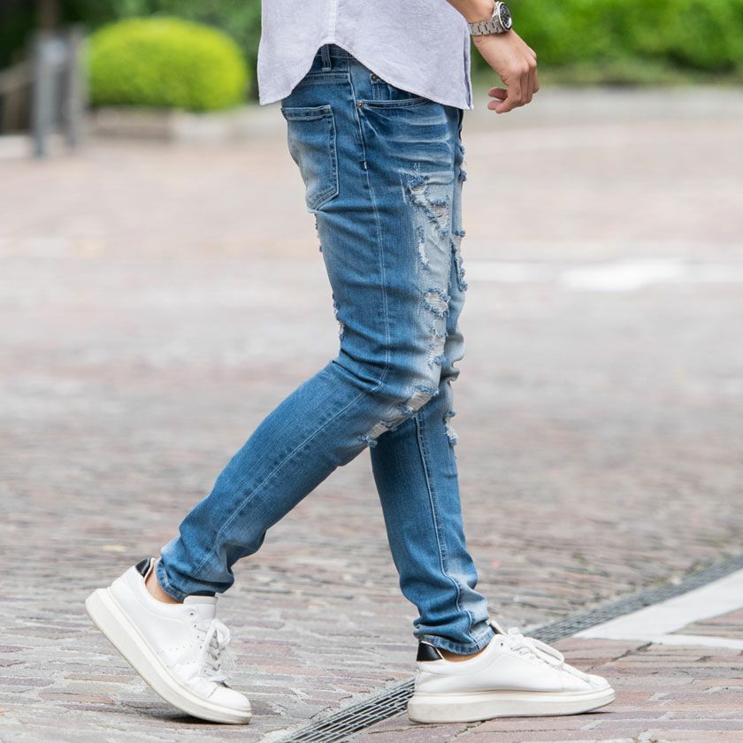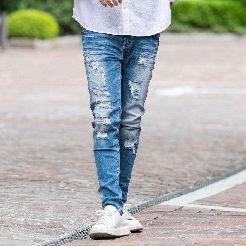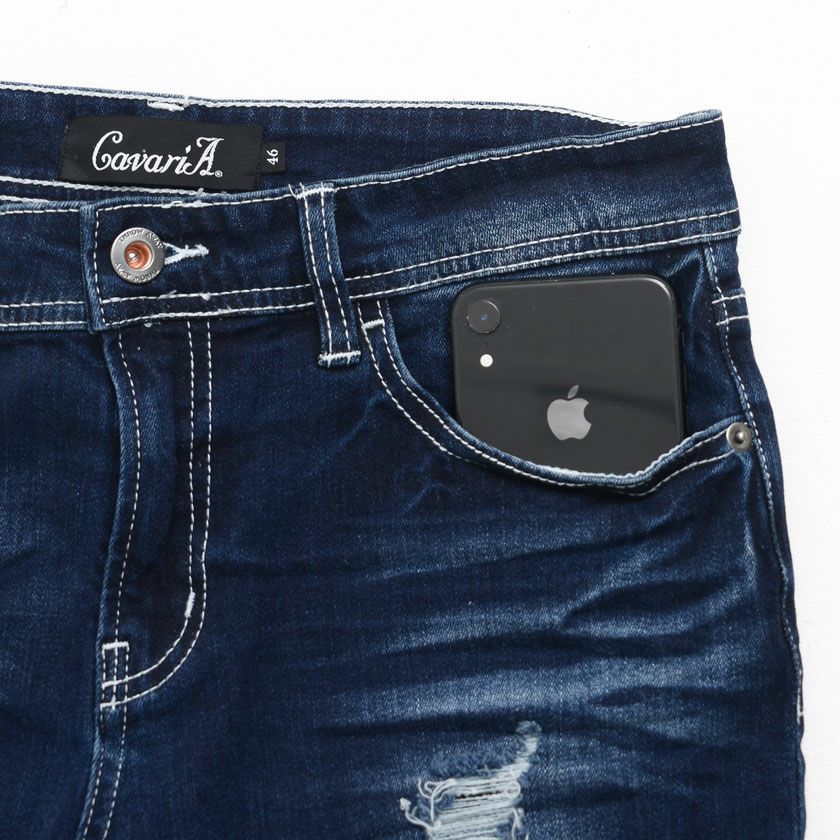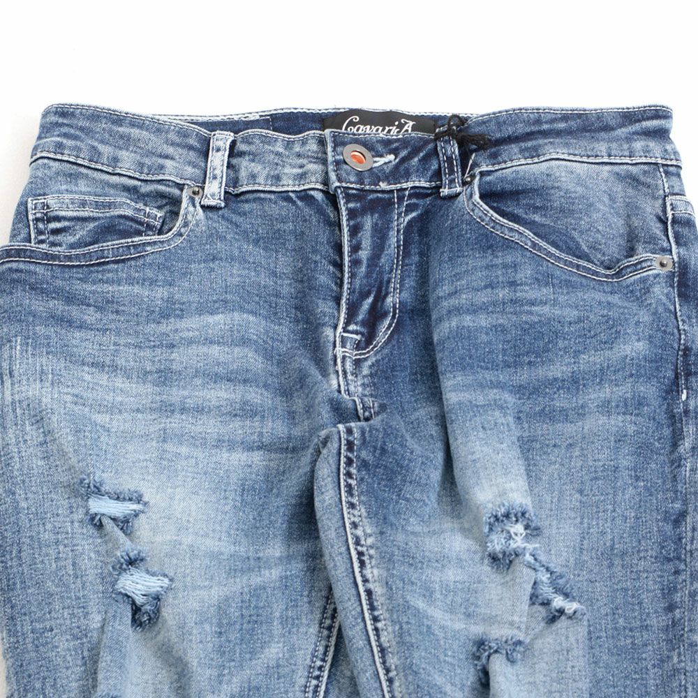 毎日のコーデに欠かせない、定番デニムパンツ。シンプルで着回し力抜群。 CavariA(キャバリア)ダメージデニムパンツ/全2色