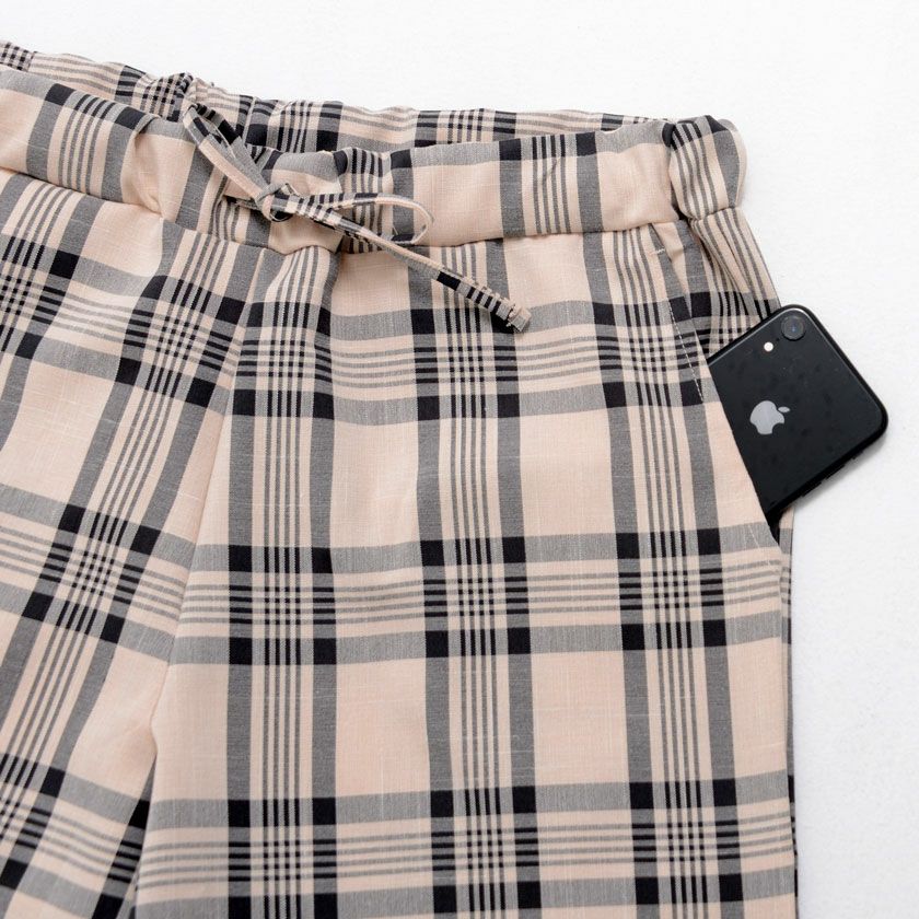 キレイめカジュアルにもぴったりなスラックス。シンプルで上品な印象を与える。 CavariA(キャバリア)モザイクチェックストレッチアンクルパンツ/全3色