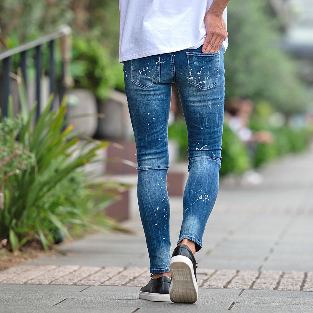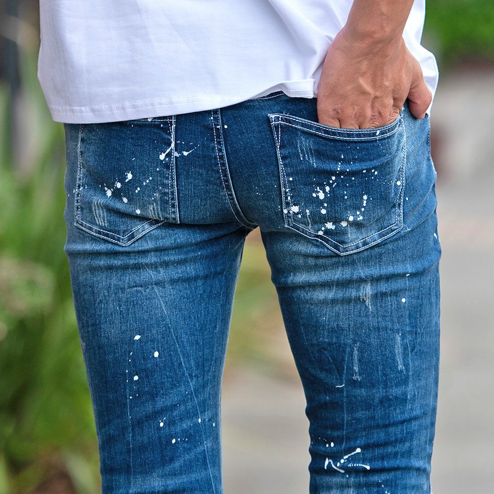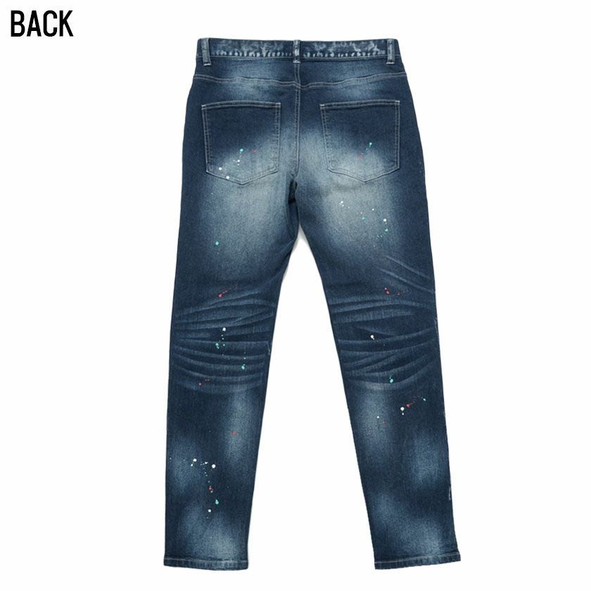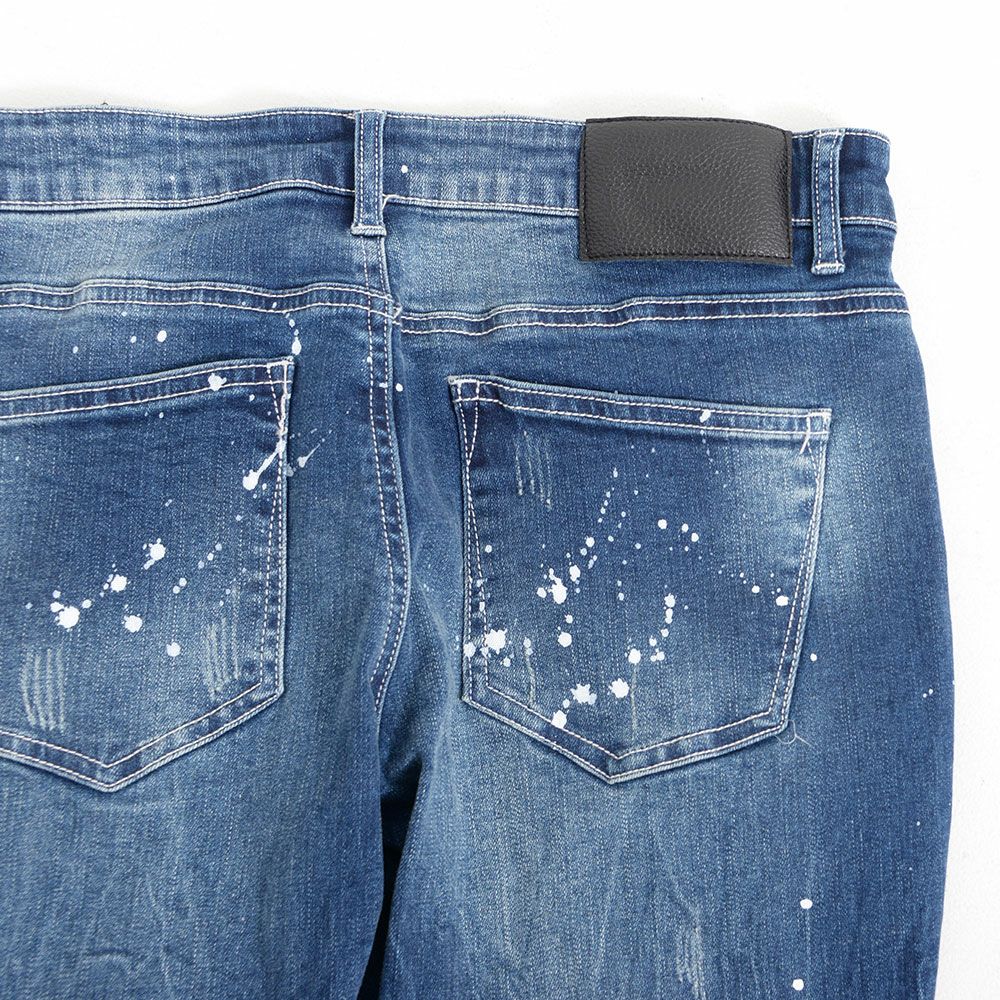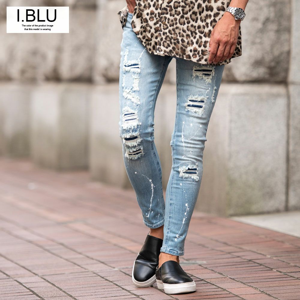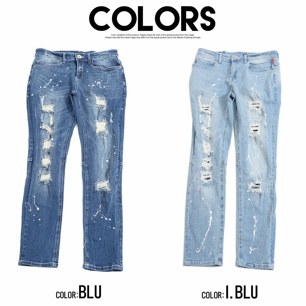 デニムパンツ メンズ ダメージ おしゃれ ペイント スキニーパンツ 伸縮性 ブルー ユニセックス 美シルエット CavariA キャバリア 夏 夏服 春 春服 ファッション CavariA(キャバリア)ペインティングストレッチスキニーアンクルデニムパンツ/全2色