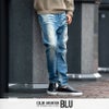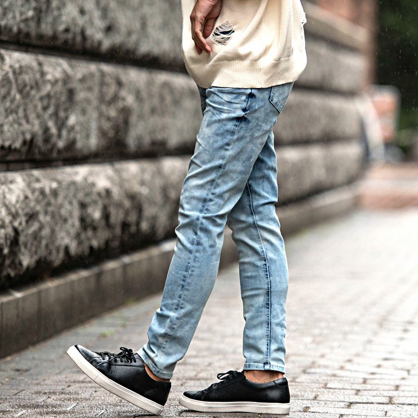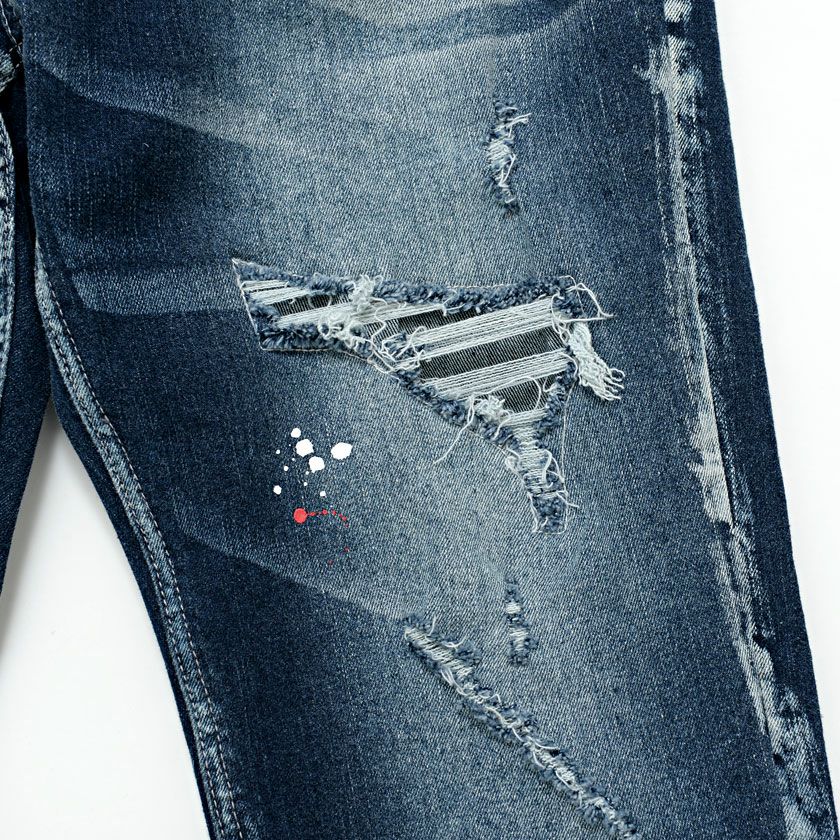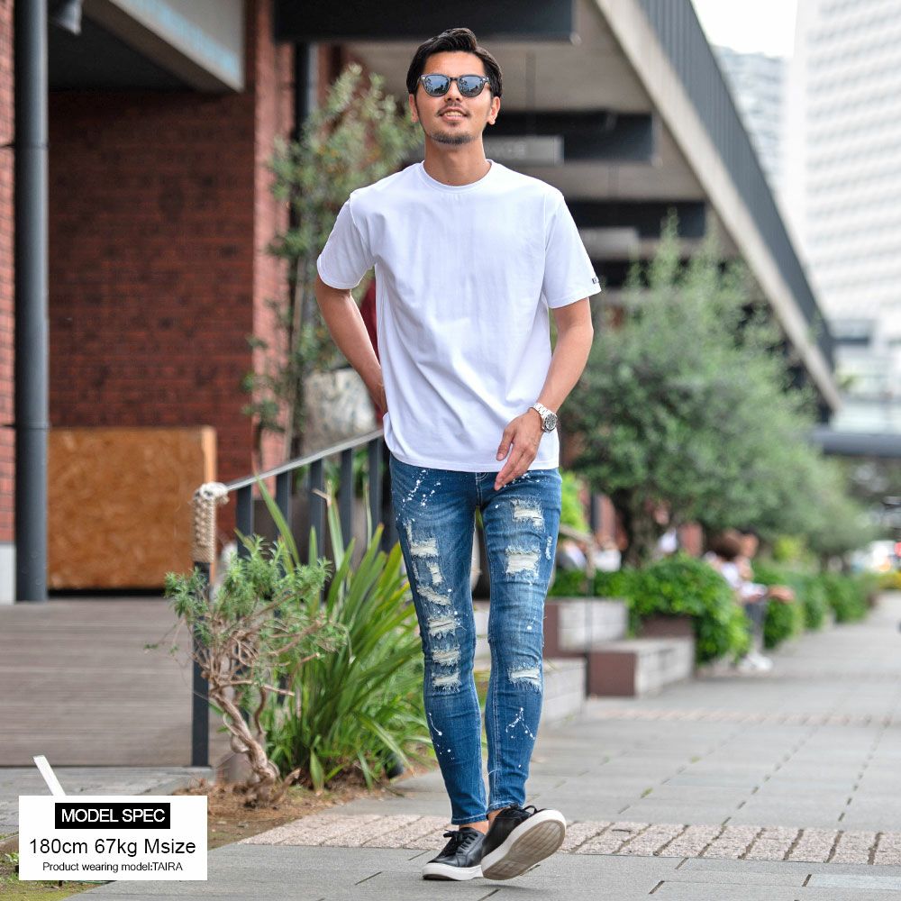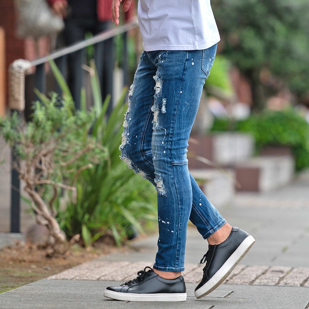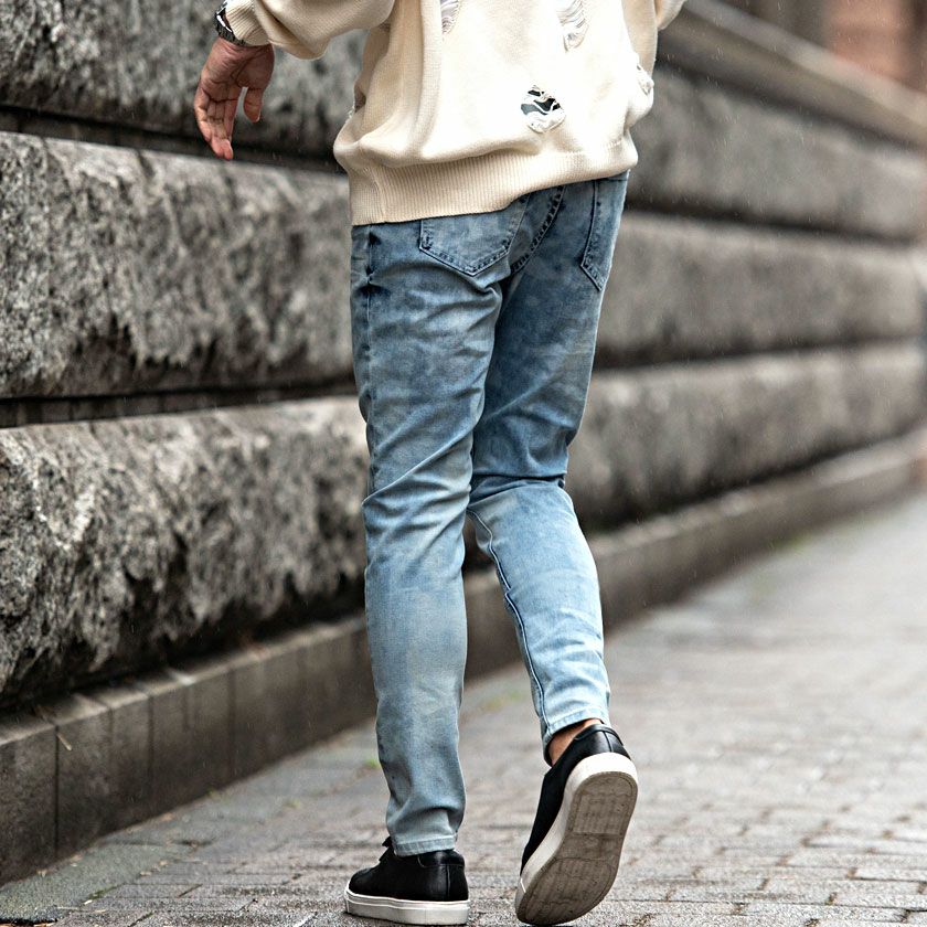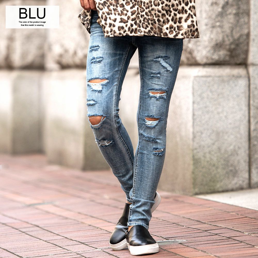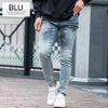 デニムパンツ メンズ ダメージ おしゃれ ペイント スキニーパンツ 伸縮性 ブルー ユニセックス 美シルエット CavariA キャバリア 夏 夏服 春 春服 ファッション CavariA(キャバリア)ペインティングストレッチスキニーアンクルデニムパンツ/全2色