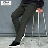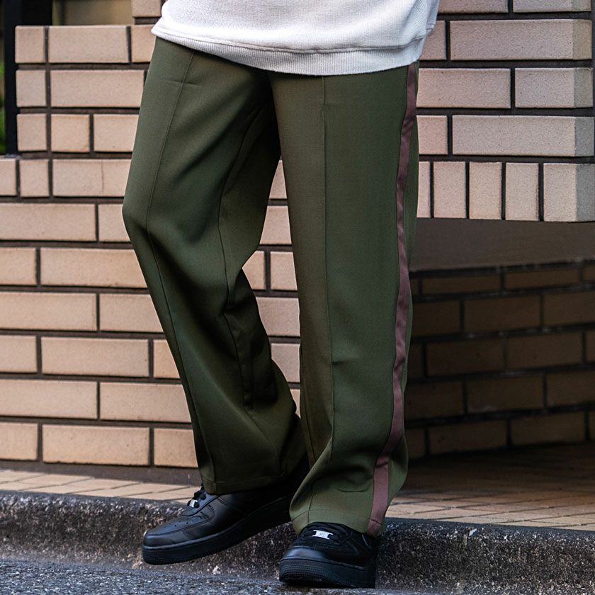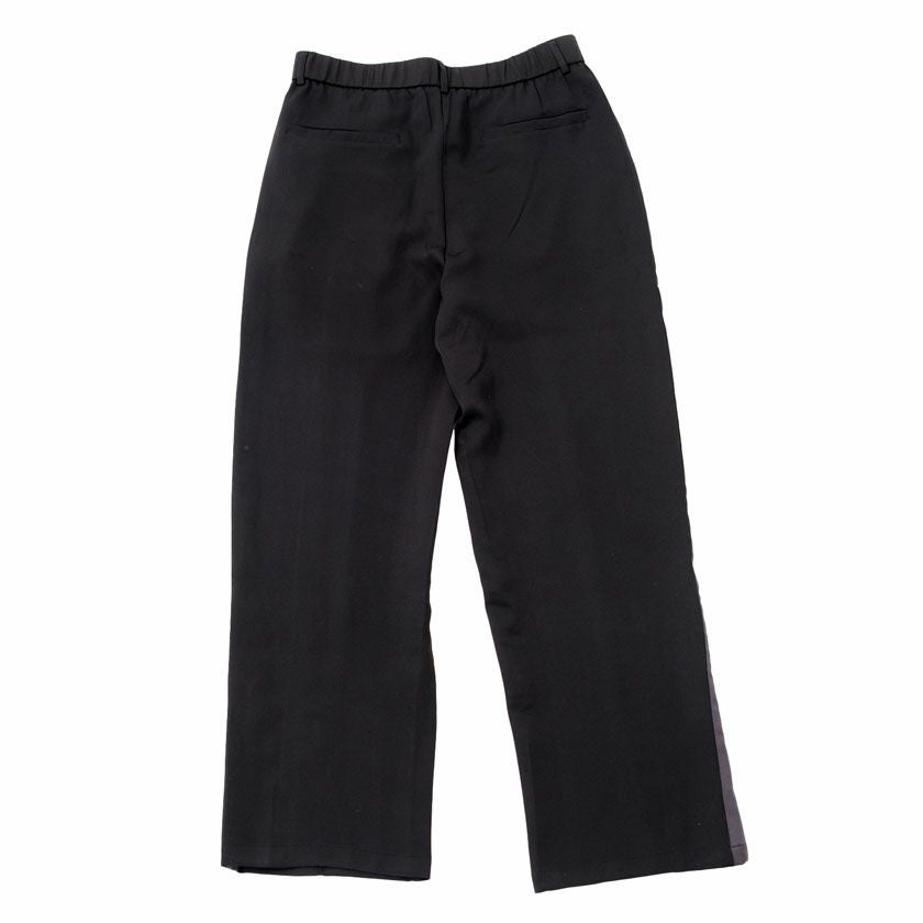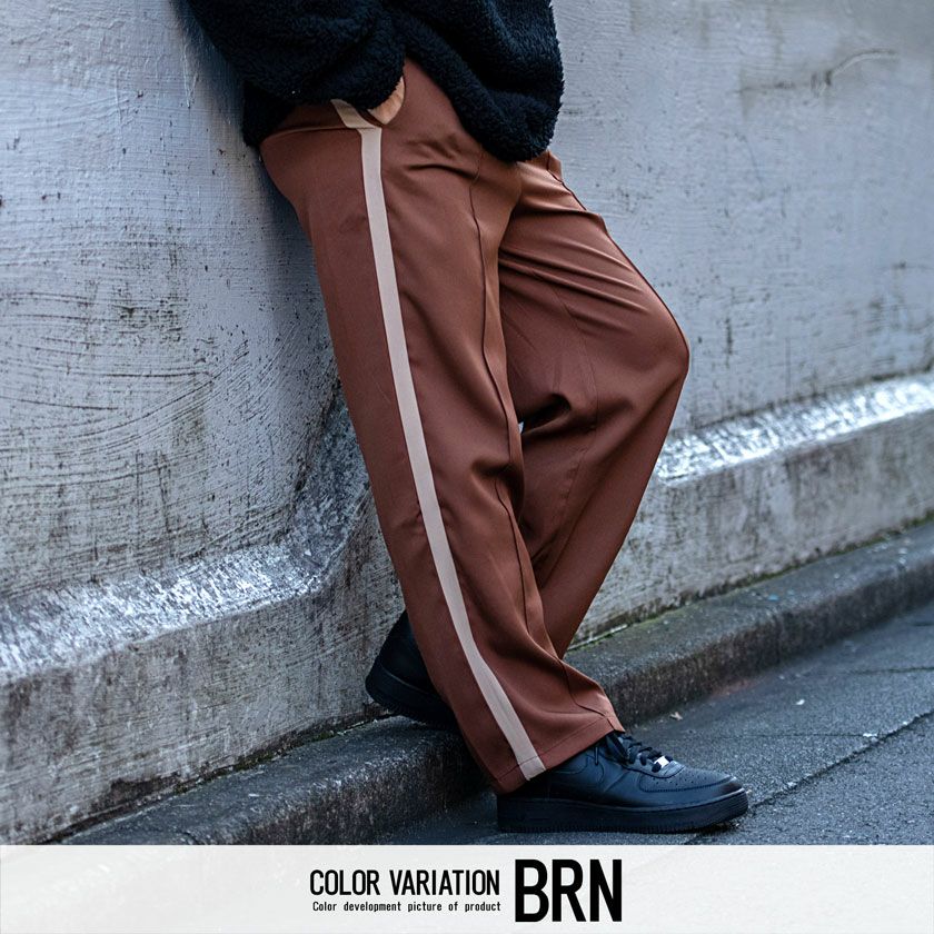 キレイめカジュアルにもぴったりなスラックス。シンプルで上品な印象を与える。 CavariA(キャバリア)センタープレスサイドラインパンツ/全3色