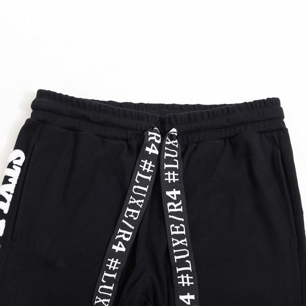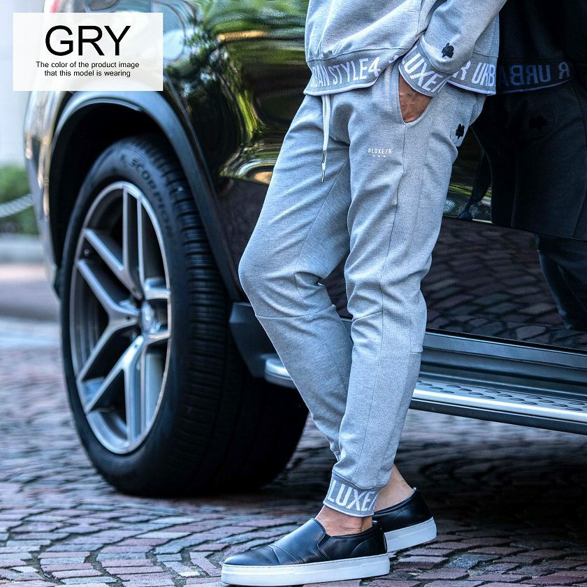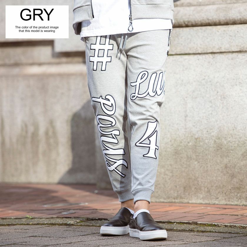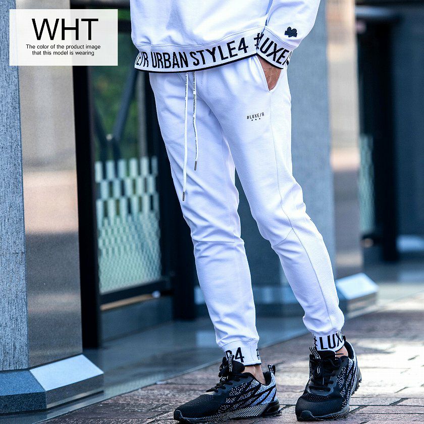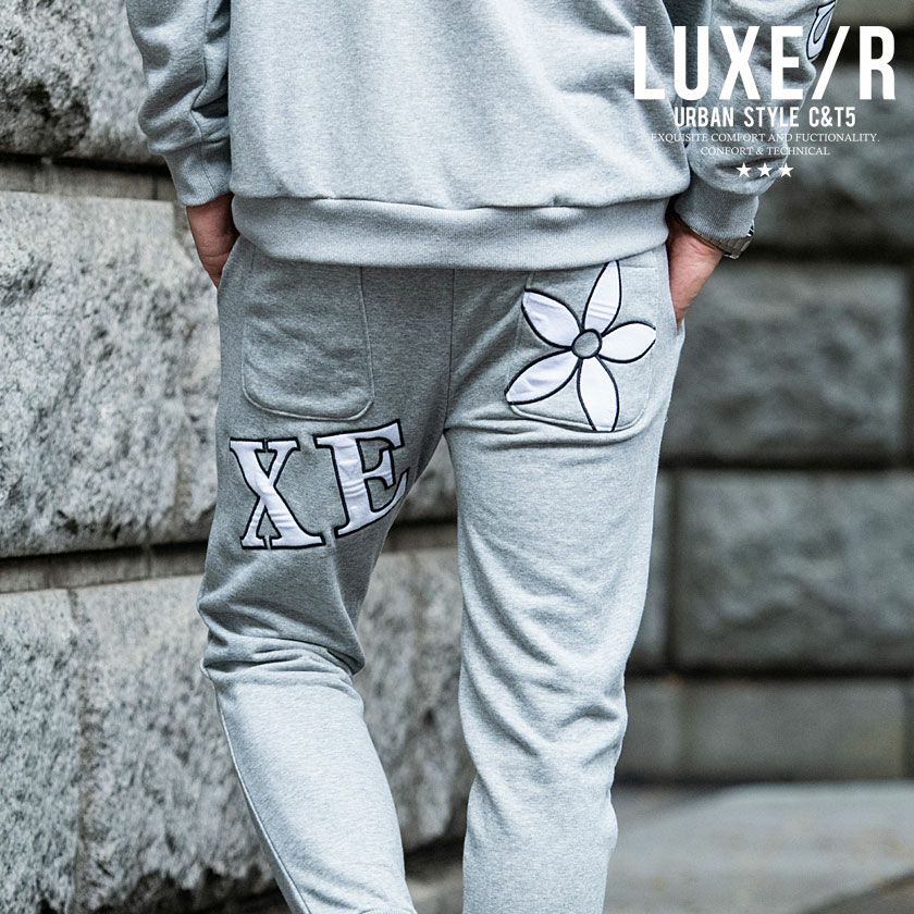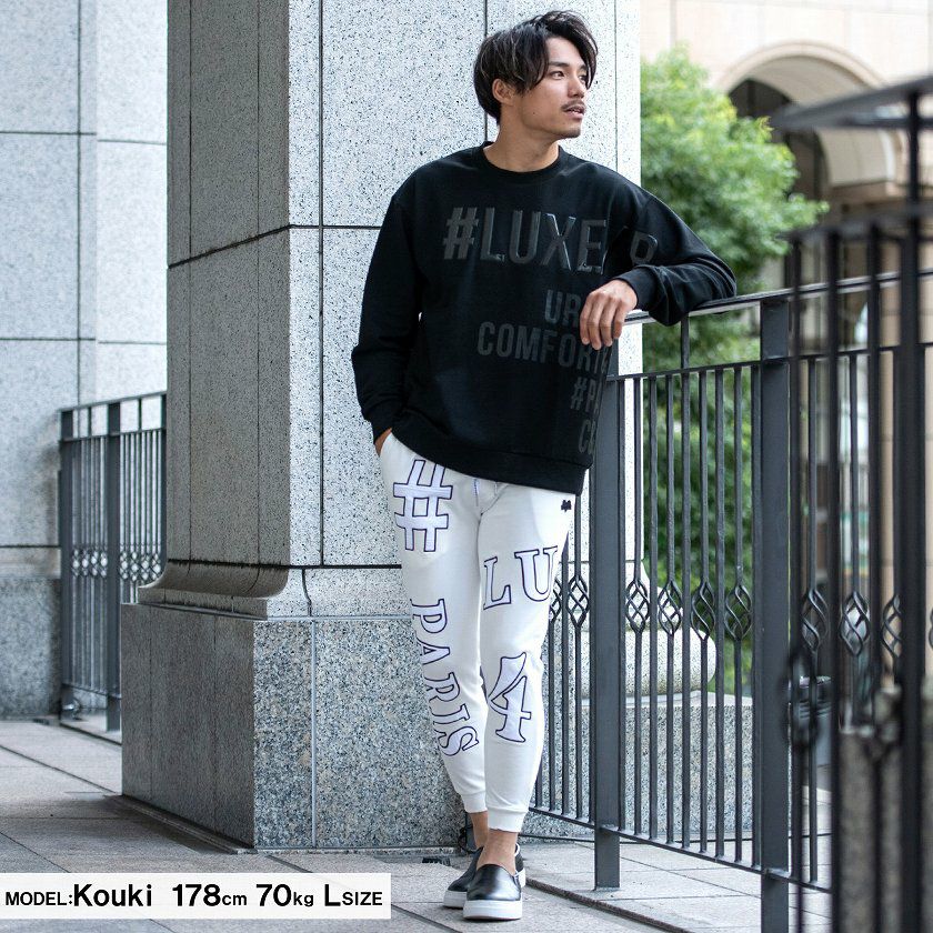 毎日履きたい、快適でおしゃれなスウェットパンツ。カジュアルスタイルに最適。 LUXE/R(ラグジュ)ビッグロゴ貼付け裏毛ジョガーパンツ/全3色
