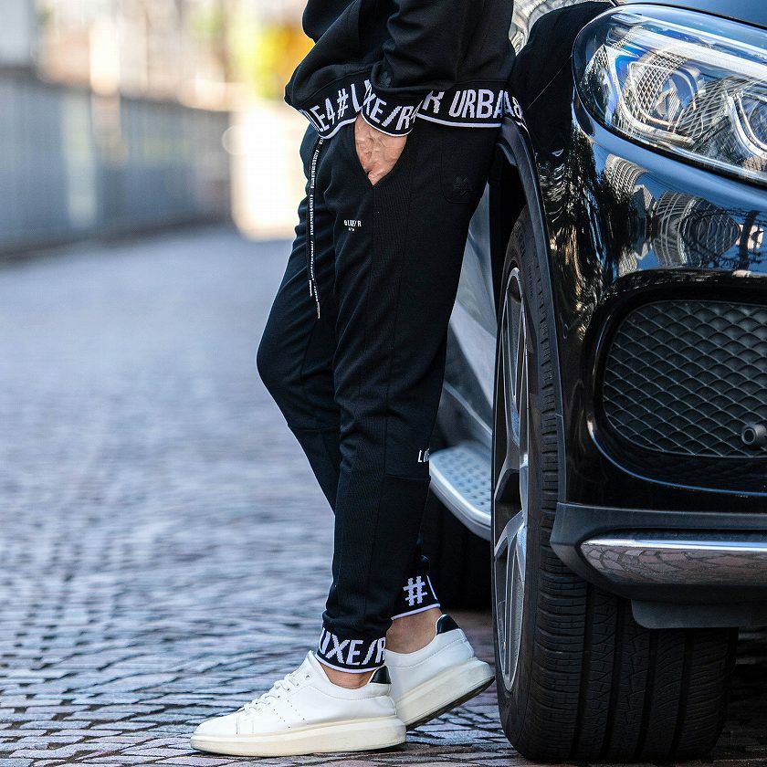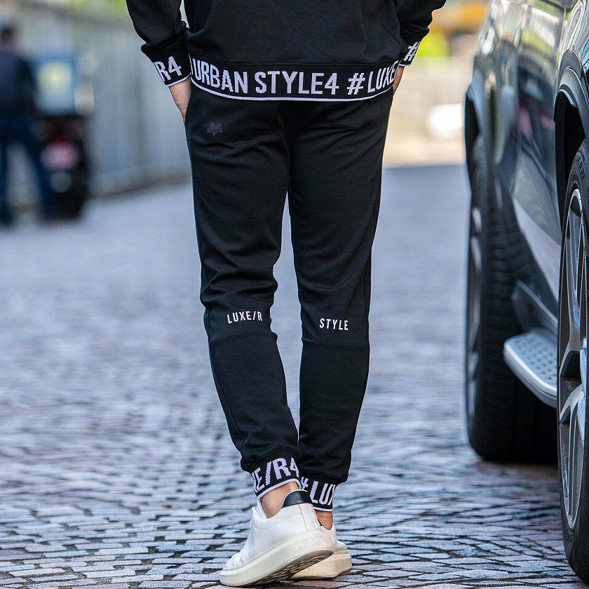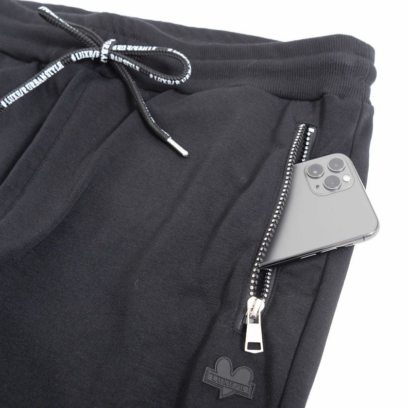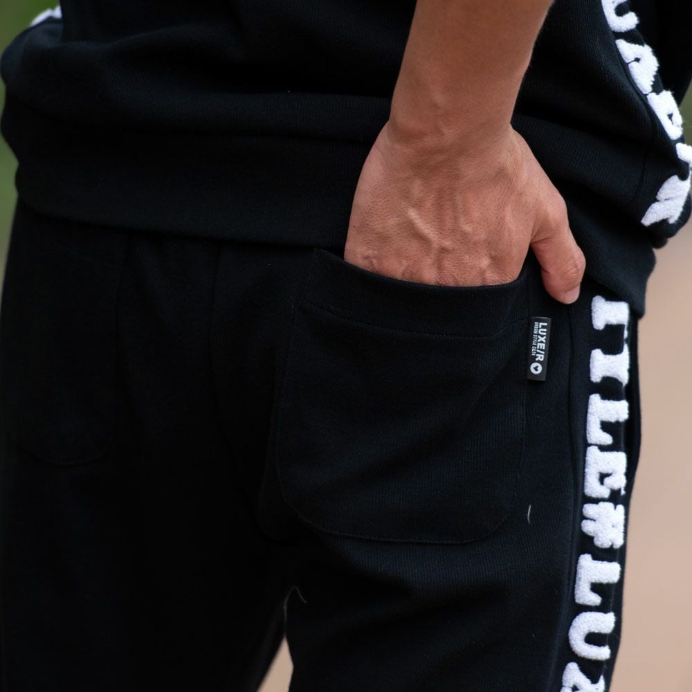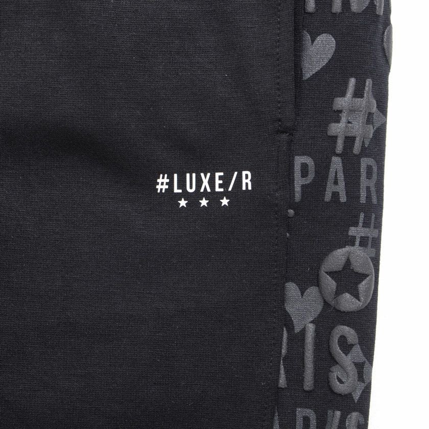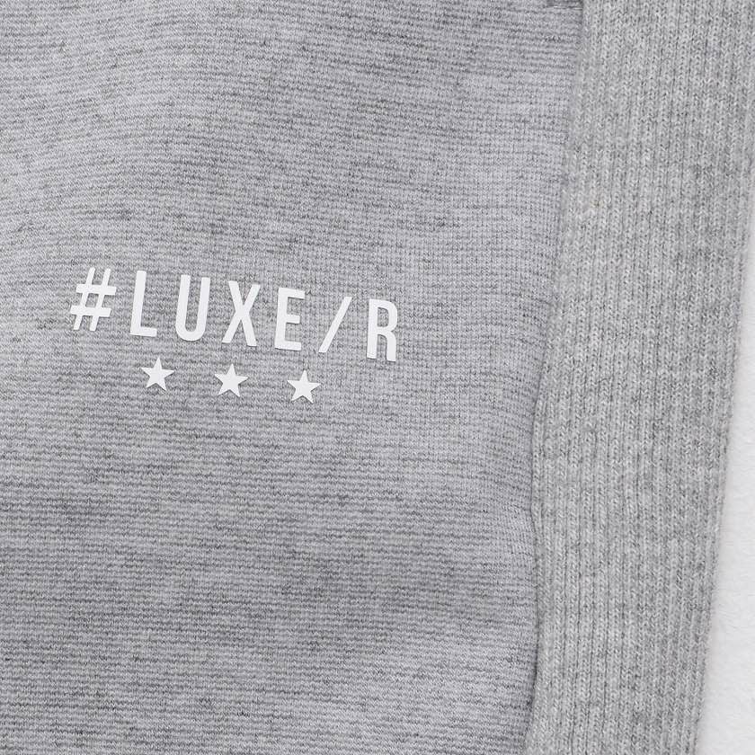 毎日履きたい、快適でおしゃれなスウェットパンツ。カジュアルスタイルに最適。 LUXE/R(ラグジュ)ビッグロゴ貼付け裏毛ジョガーパンツ/全3色