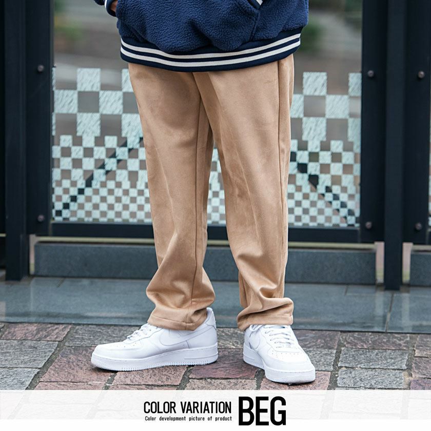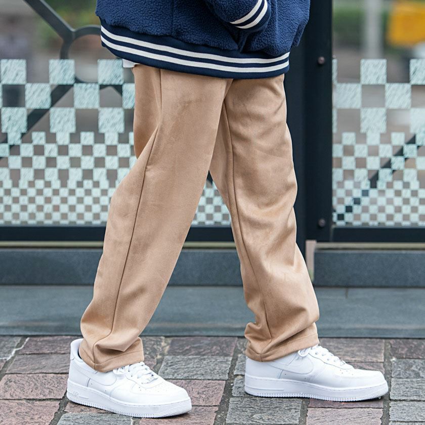 ゆったりとしたシルエットが魅力的なワイドパンツ。リラックス感とおしゃれさを両立。 CavariA(キャバリア)フェイクスウェードワイドテーパードパンツ/全2色