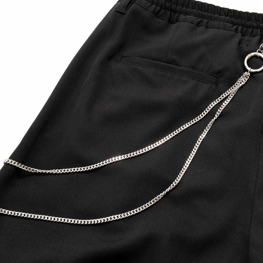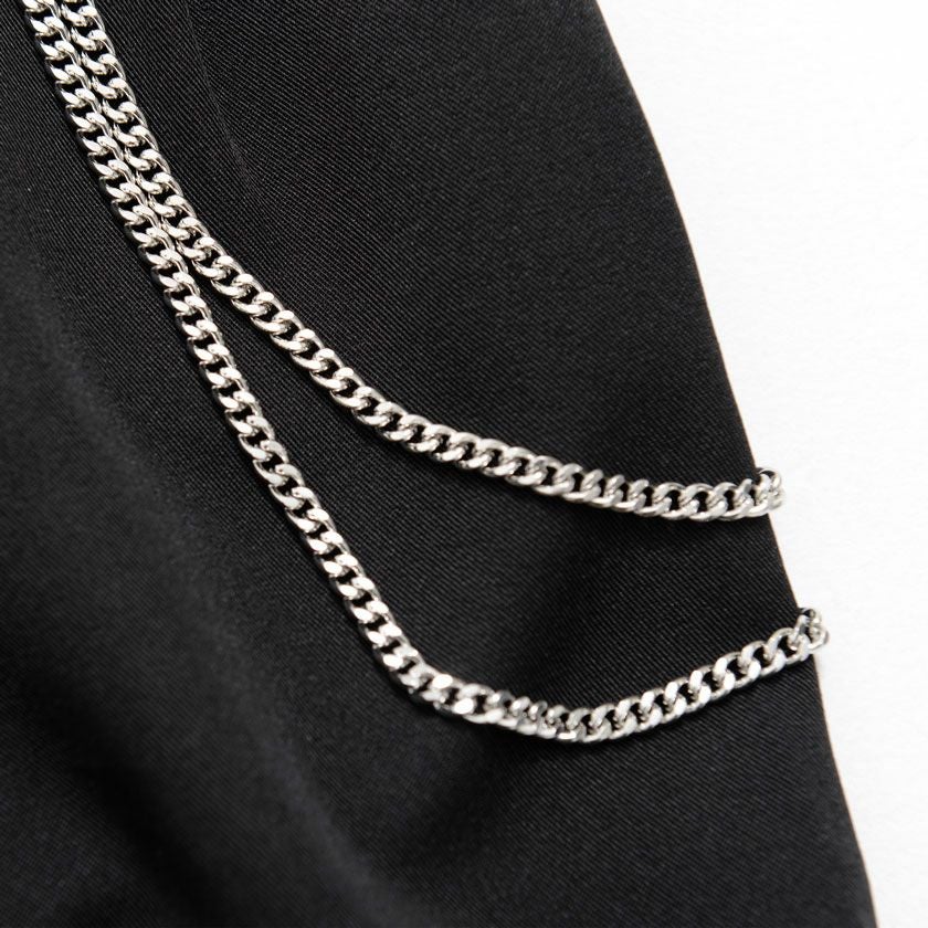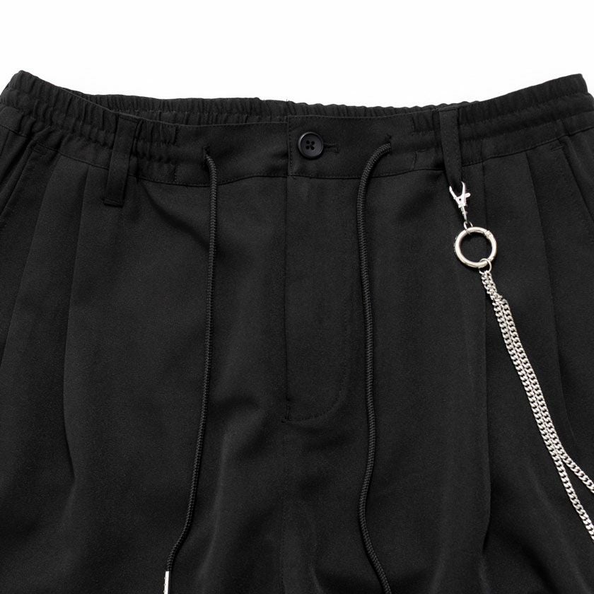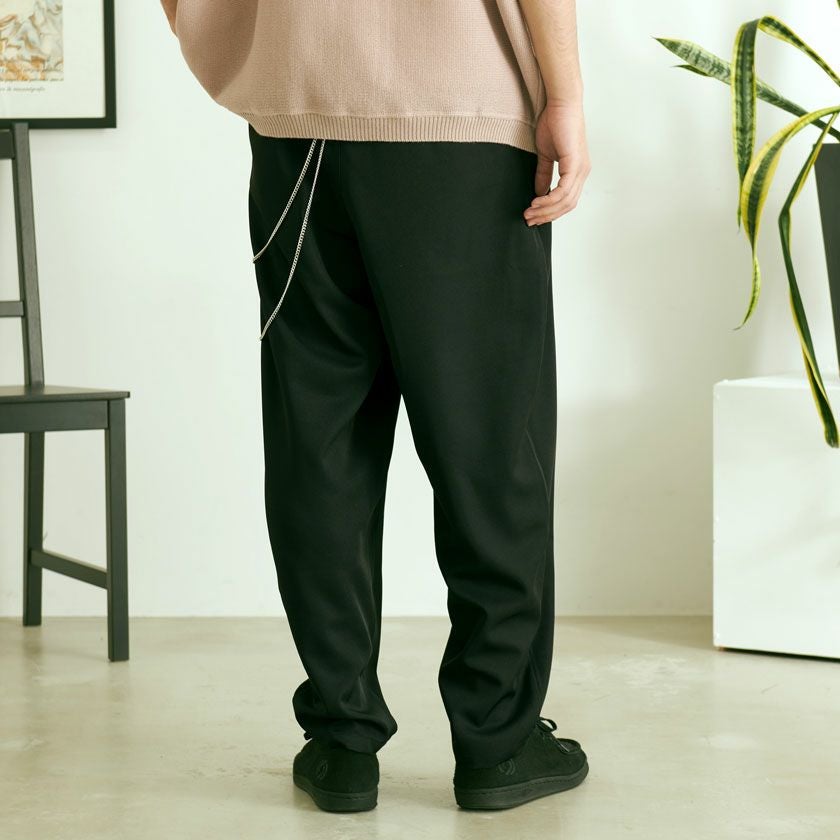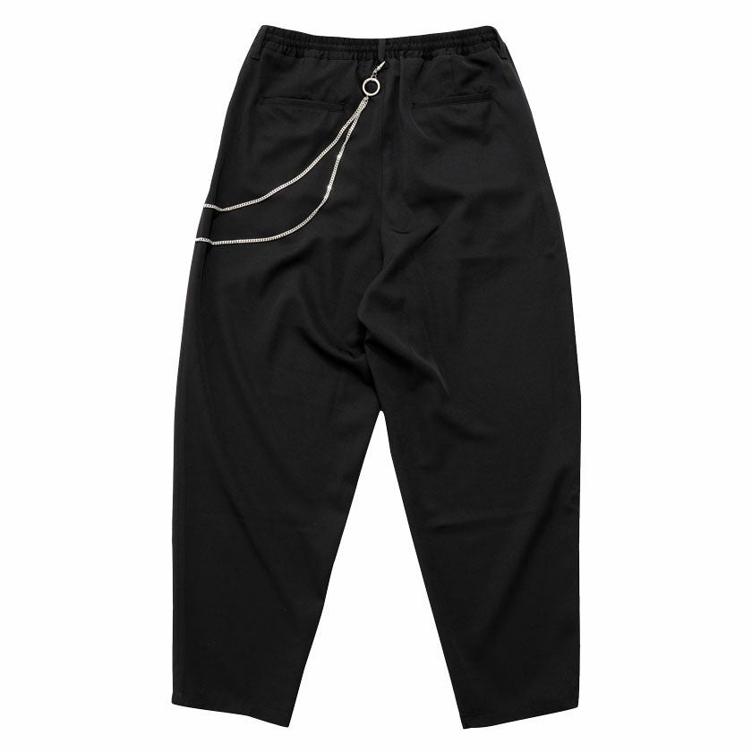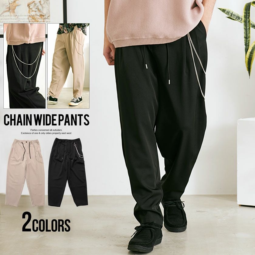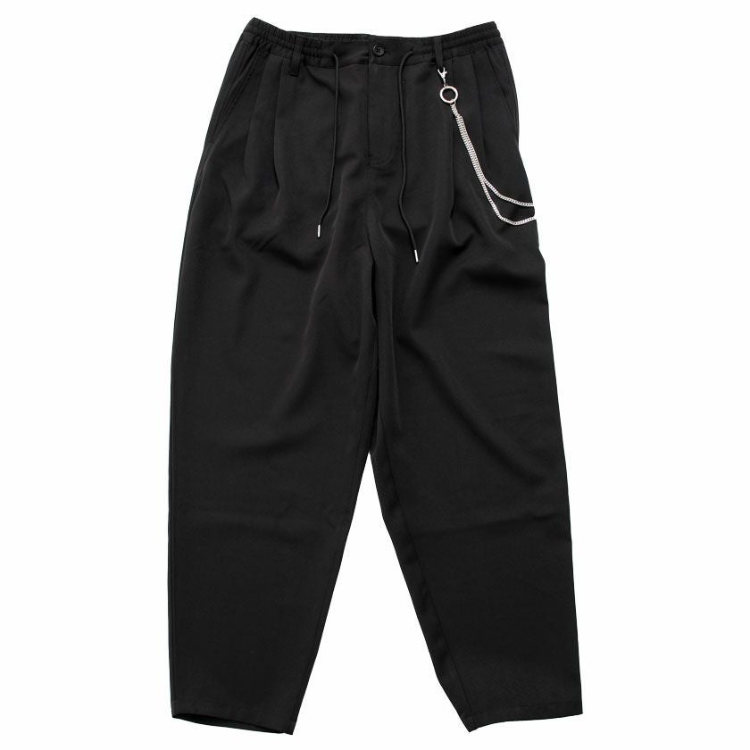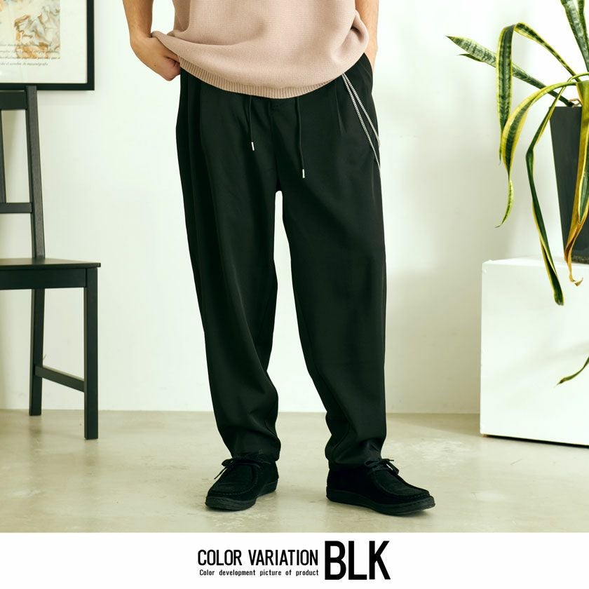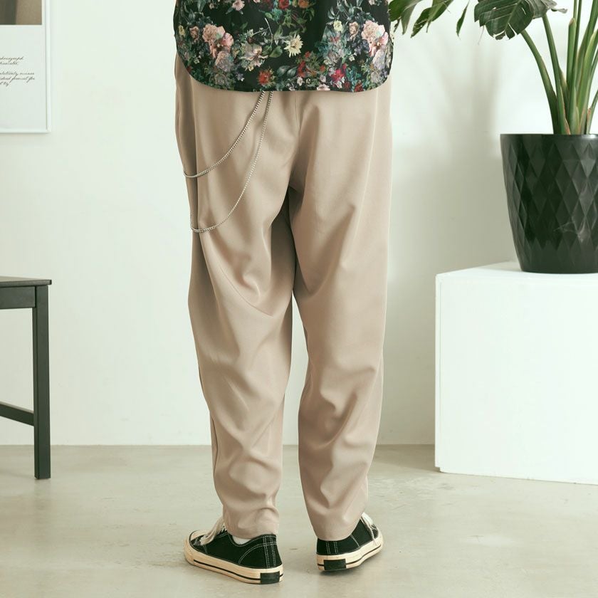 キレイめカジュアルにもぴったりなスラックス。シンプルで上品な印象を与える。 CavariA(キャバリア)チェーン付きツータックパンツ/全2色