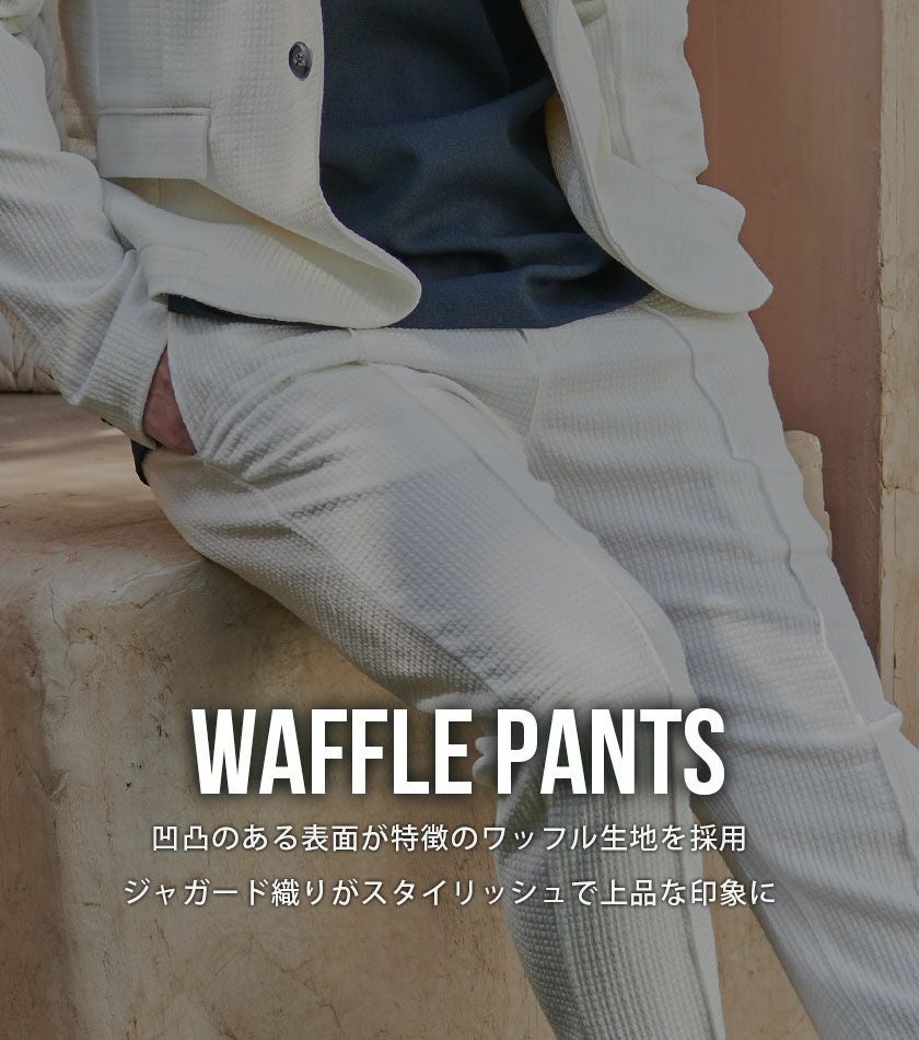 ※こちらの商品はパンツのみの販売となります。別売りのジャケットと組み合わせることで、セットアップとしてもお使い頂けます。 CavariA(キャバリア)ワッフルジャガードプレミアパンツ/全3色