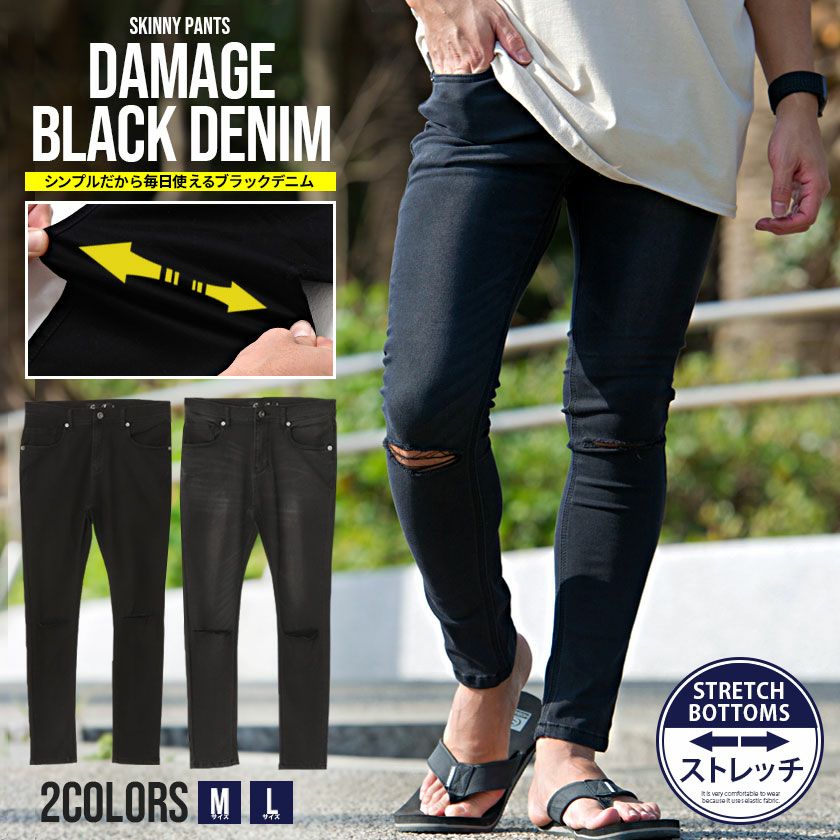 毎日のコーデに欠かせない、定番デニムパンツ。シンプルで着回し力抜群。 【SALE/セール】CavariA(キャバリア)シンプルダメージブラックデニムパンツ/全2色