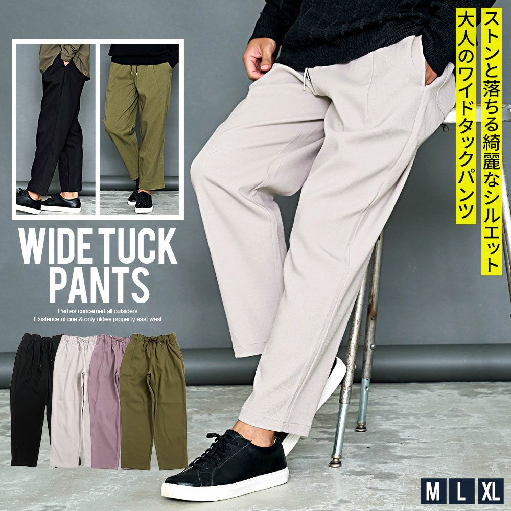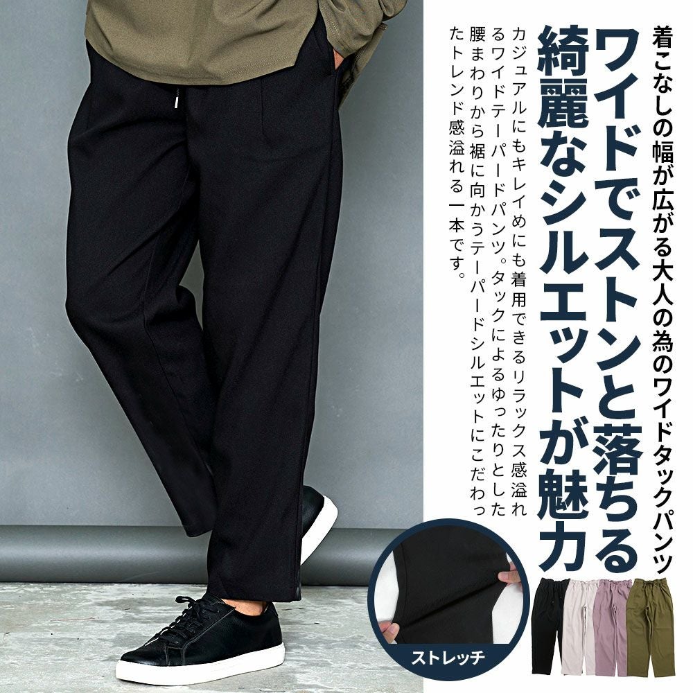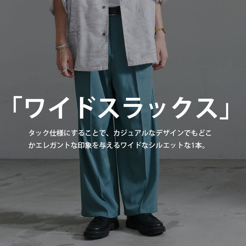 ゆったりとしたシルエットが魅力的なワイドパンツ。リラックス感とおしゃれさを両立。 CavariA(キャバリア)ワイドタックパンツ/全4色