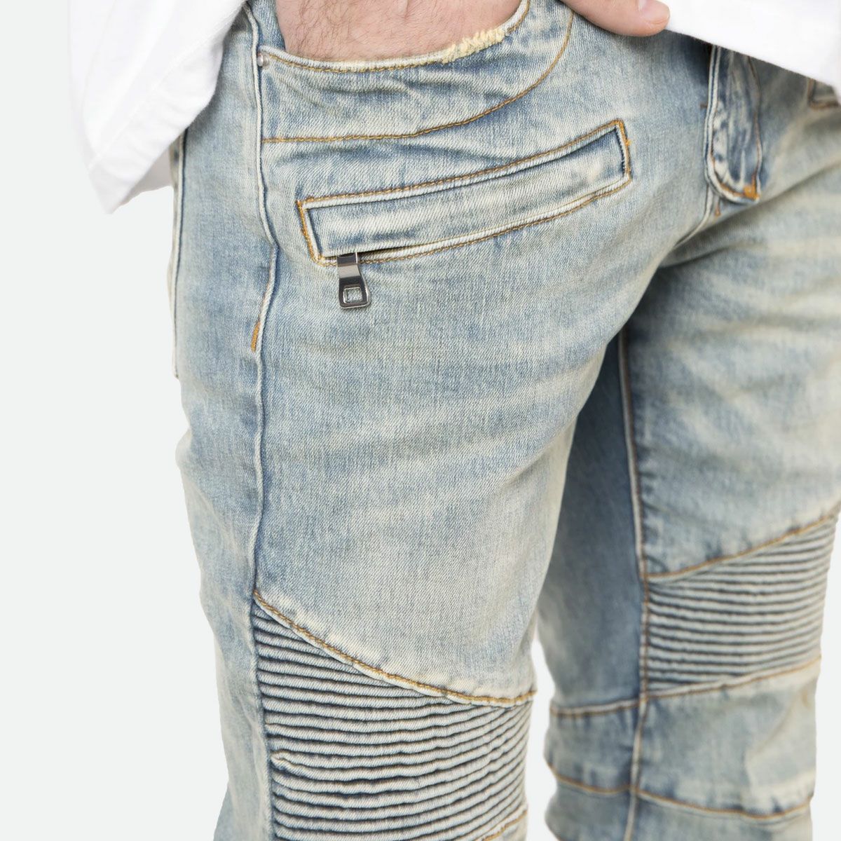 毎日のコーデに欠かせない、定番デニムパンツ。シンプルで着回し力抜群。 【送料無料】mnml(ミニマル)M14 DENIM STRETCH LIGHT BLUE/全1色