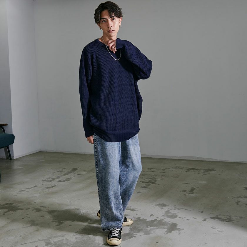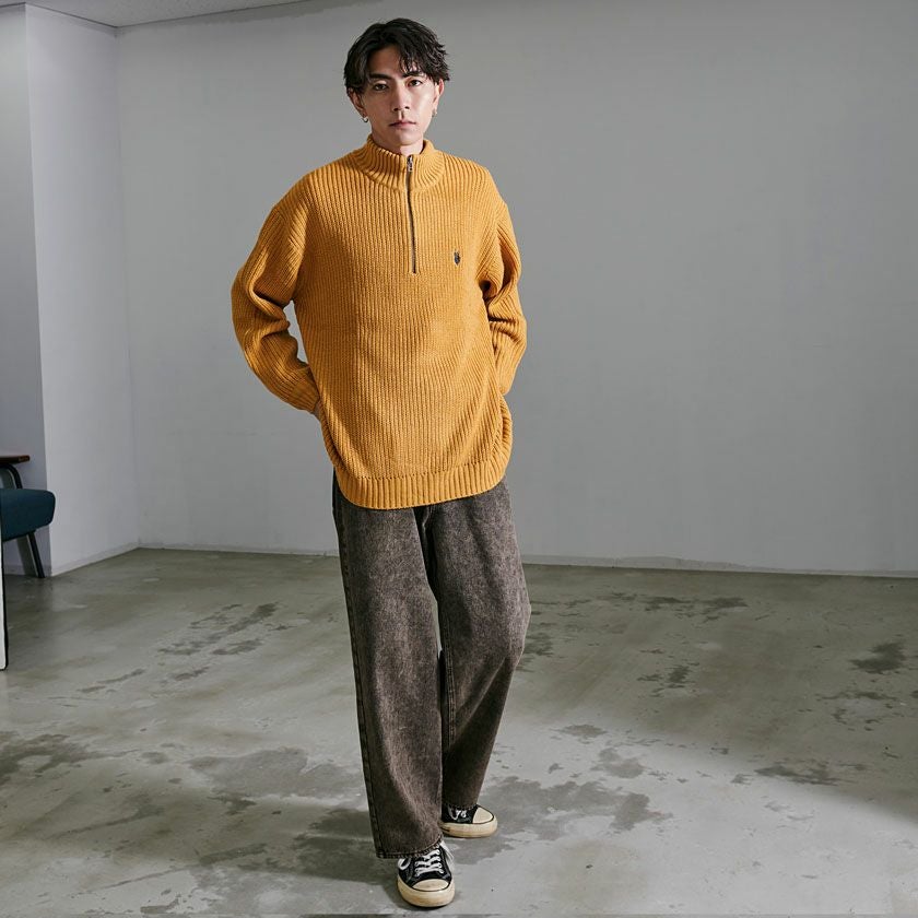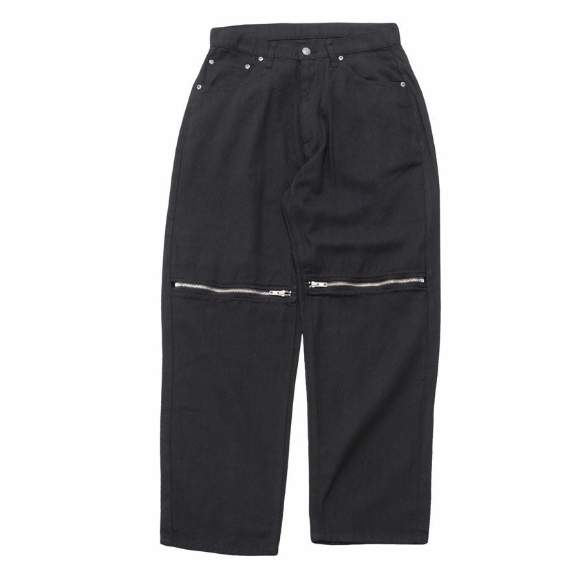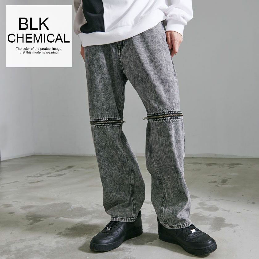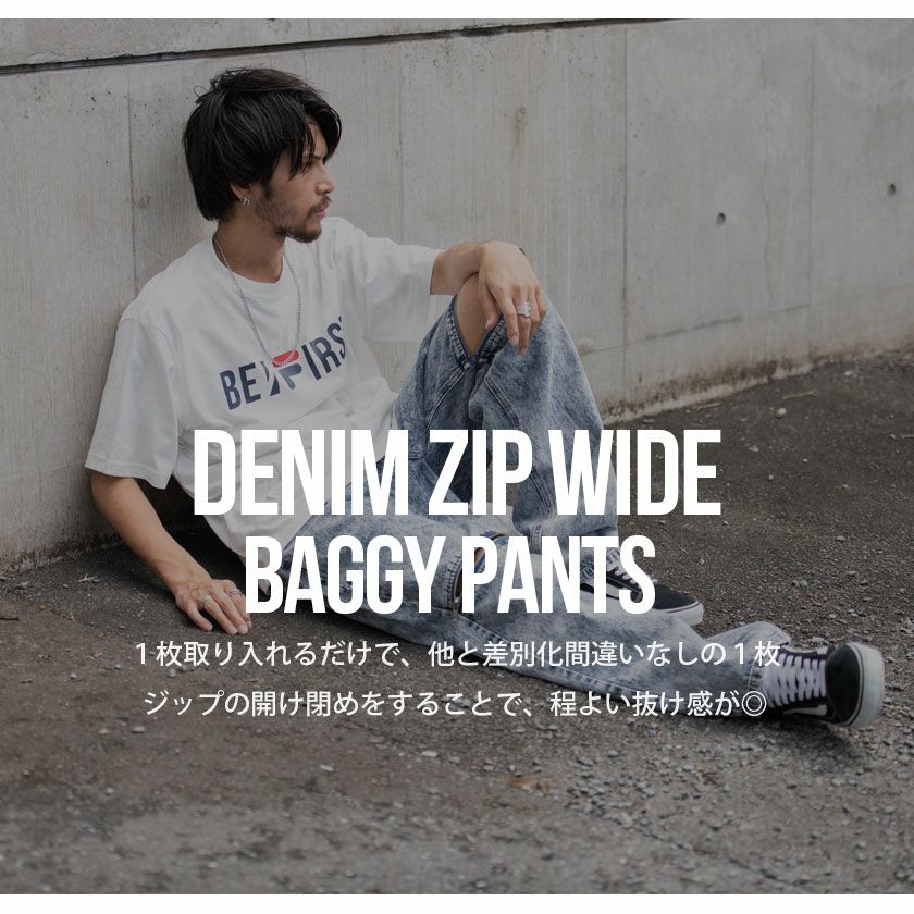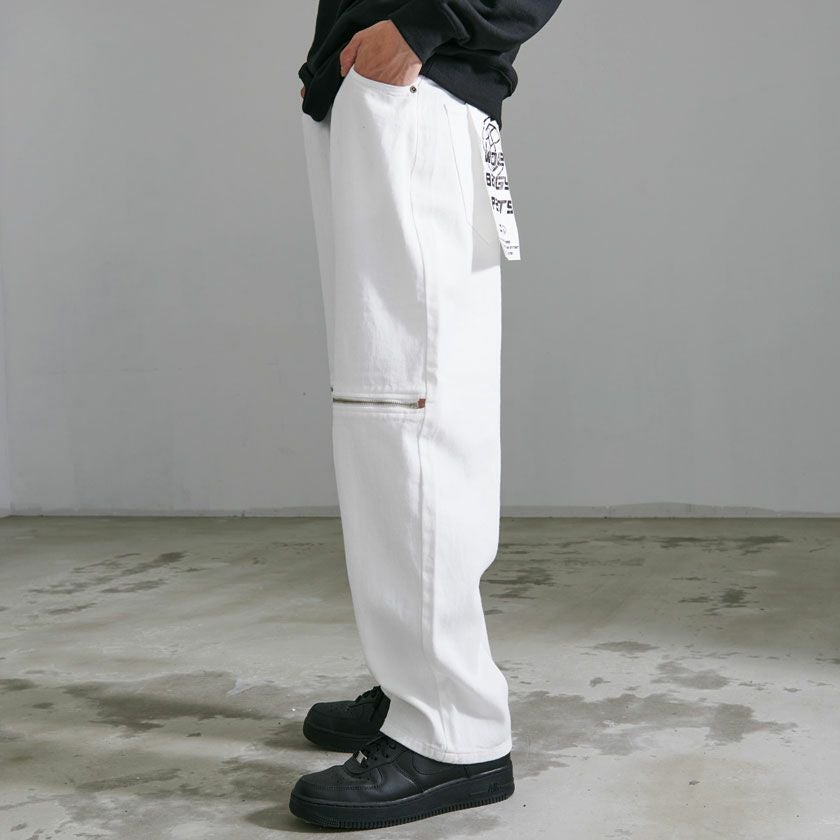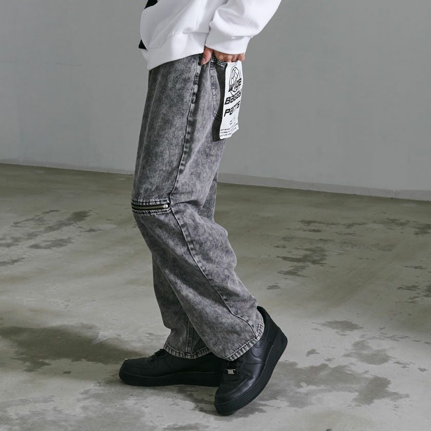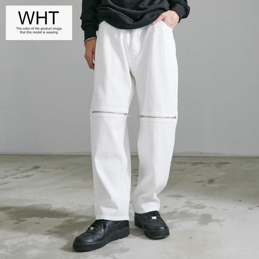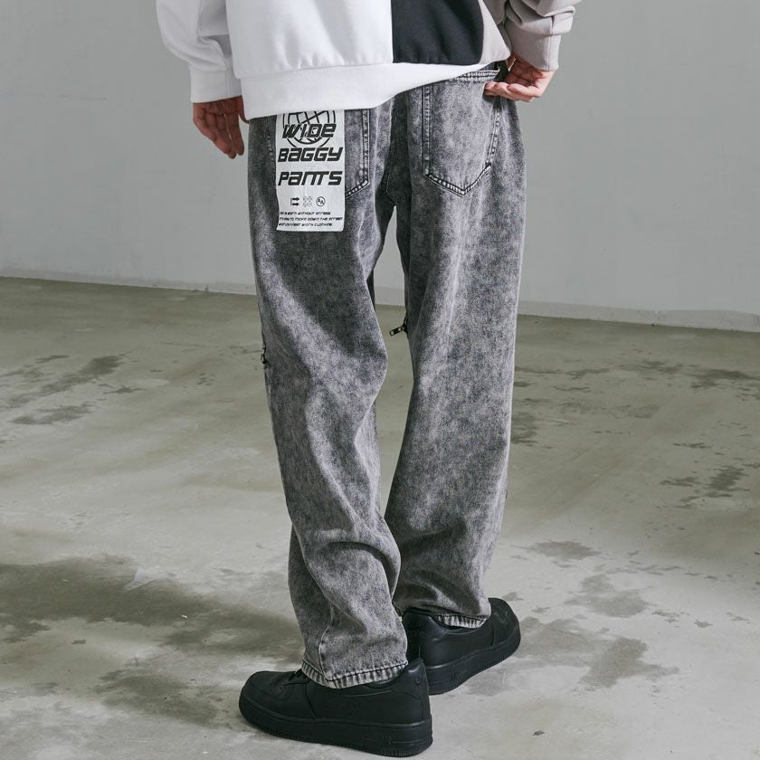 ゆったりとしたシルエットが魅力的なワイドパンツ。リラックス感とおしゃれさを両立。 CavariA(キャバリア)デニム膝ZIPワイドバギーパンツ/全4色