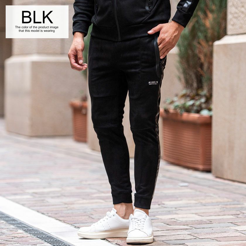スポーティーで快適なジャージパンツ。リラックスしたスタイルにもぴったり! LUXE/R(ラグジュ)スエード切替えパンツ/全3色