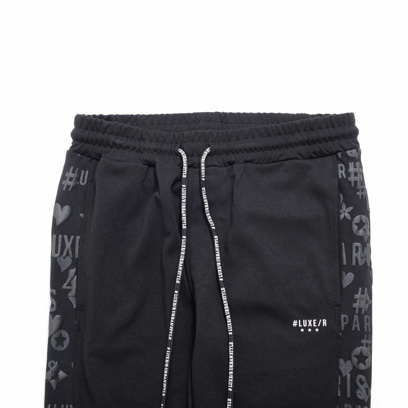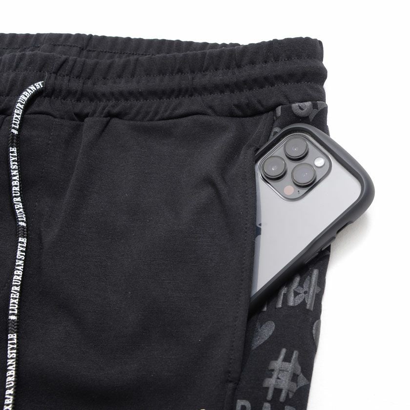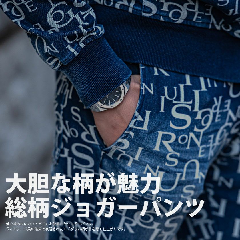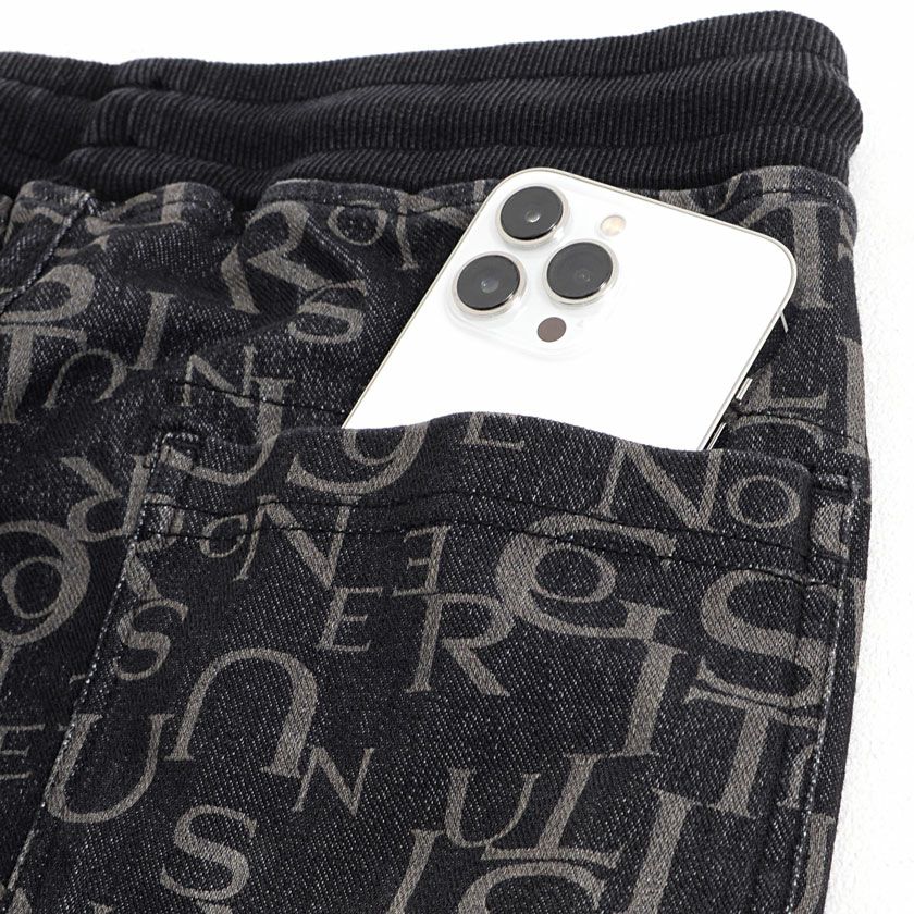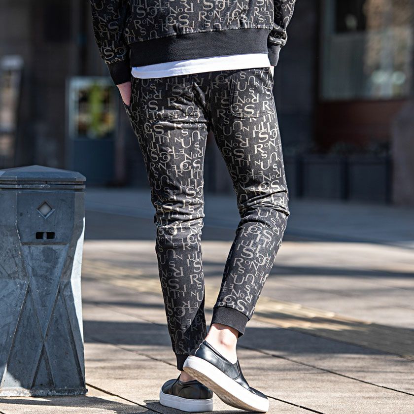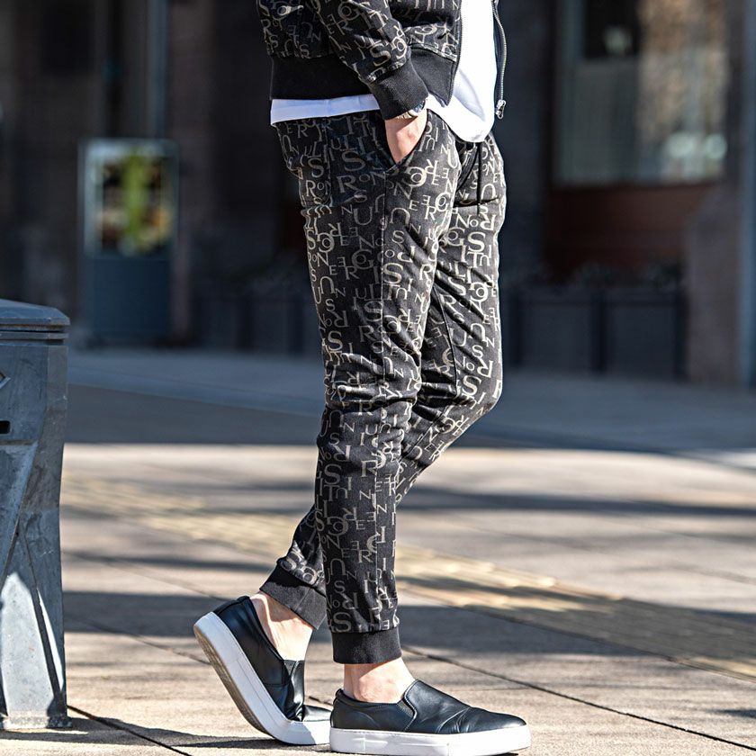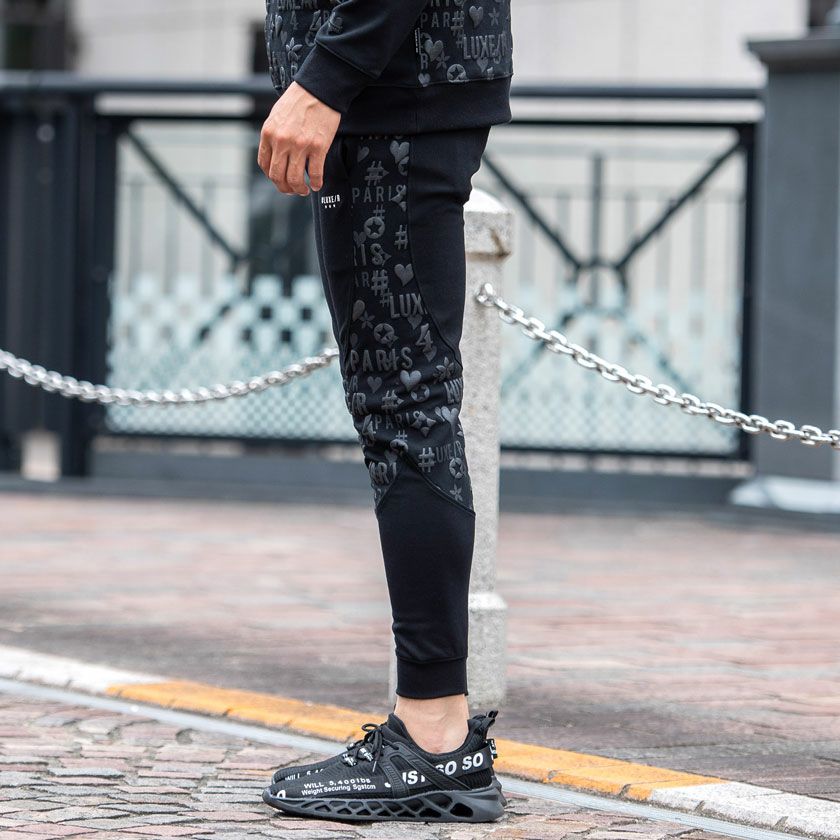 毎日履きたい、快適でおしゃれなスウェットパンツ。カジュアルスタイルに最適。 LUXE/R(ラグジュ)切り替え総柄ロゴジョガーパンツ/全3色