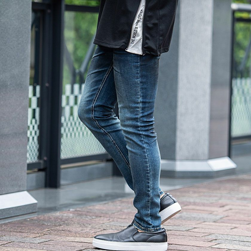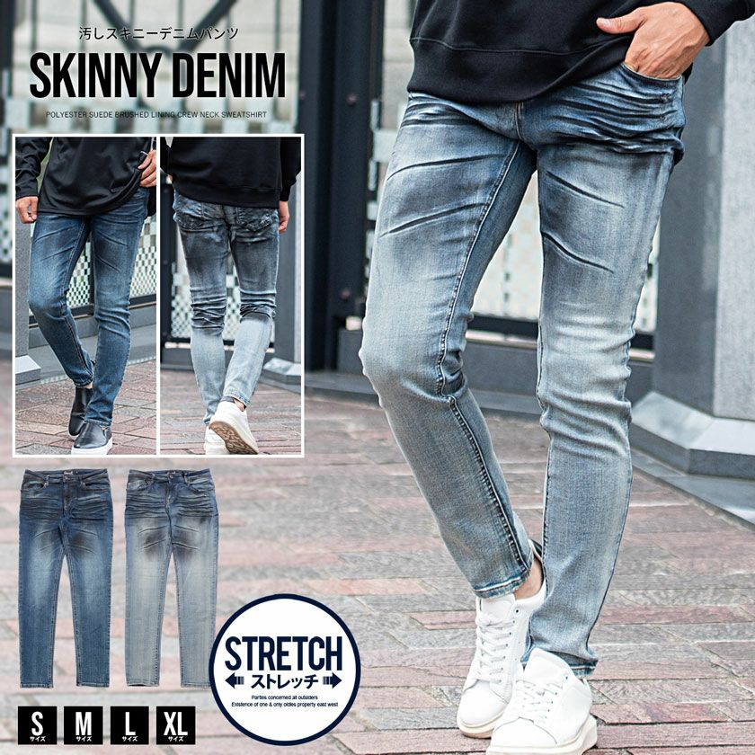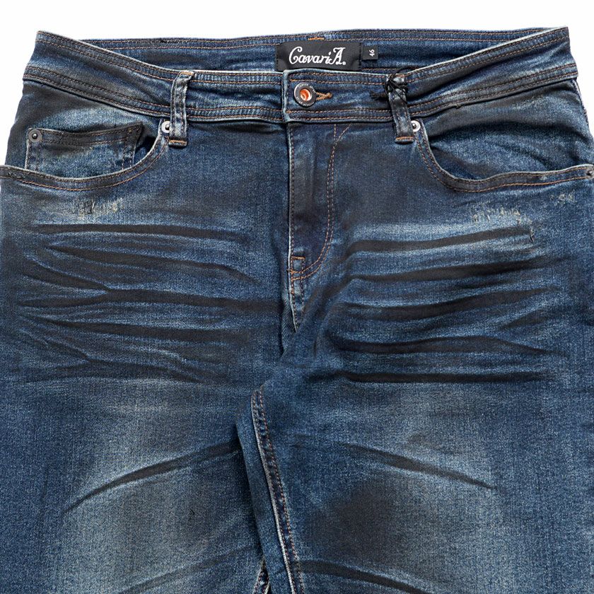 毎日のコーデに欠かせない、定番デニムパンツ。シンプルで着回し力抜群。 CavariA(キャバリア)汚しスキニーデニムパンツ/全2色