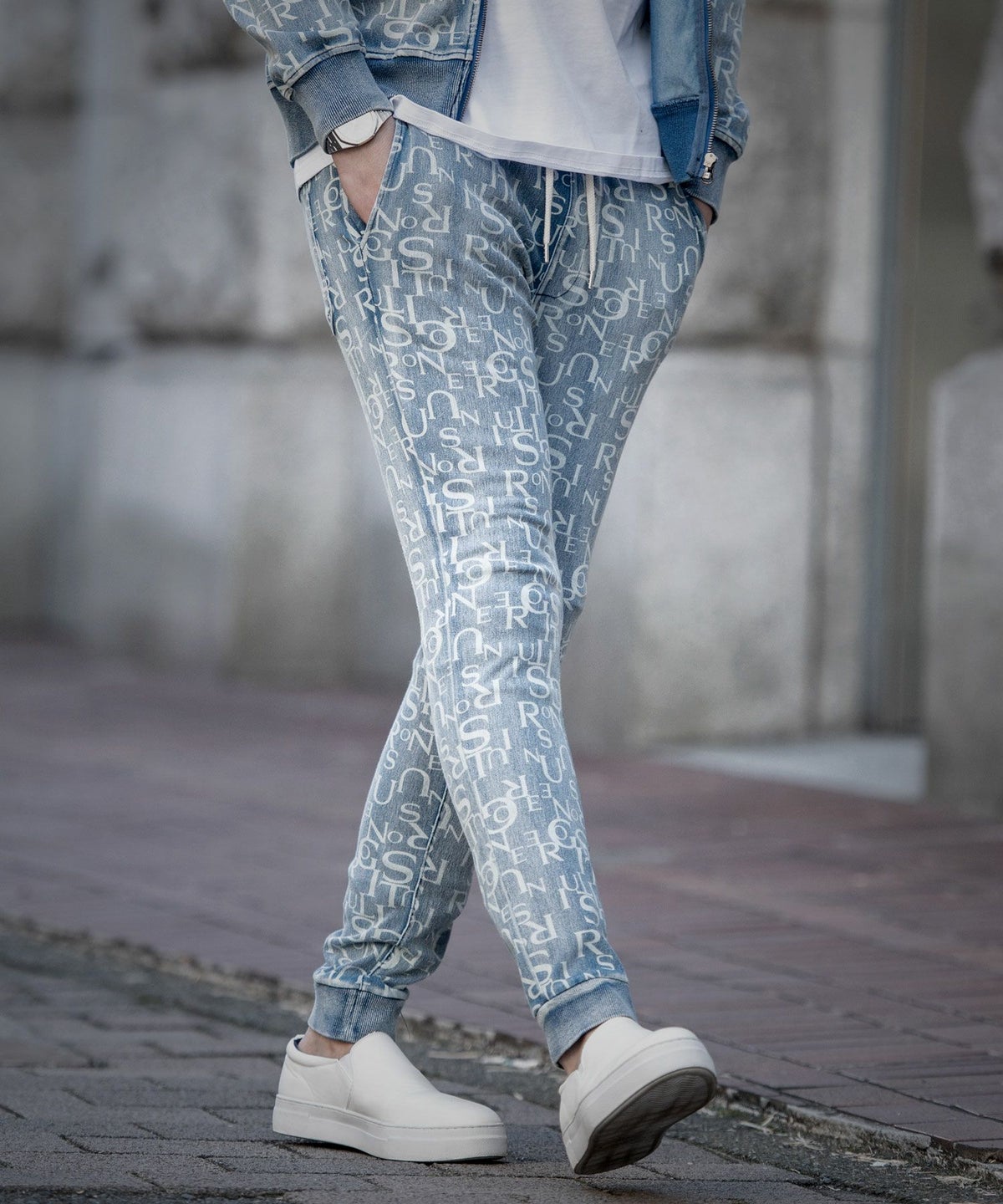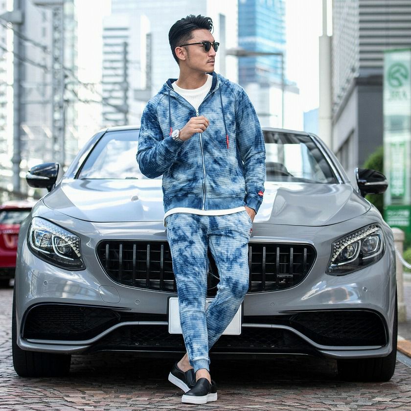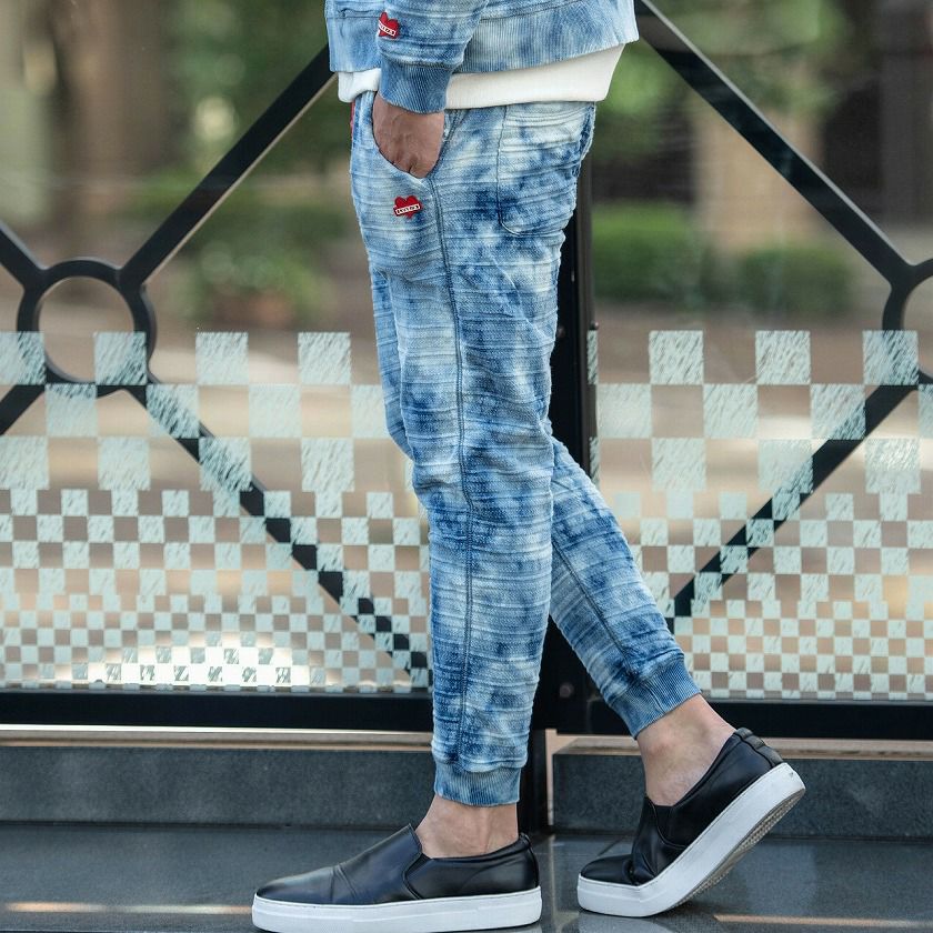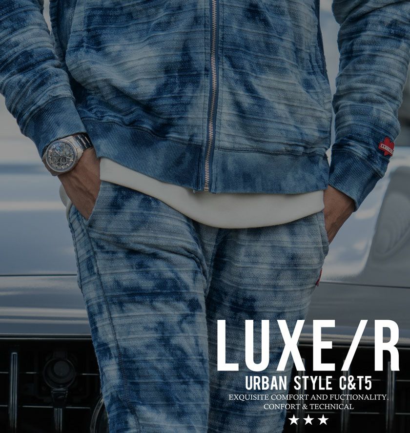 毎日履きたい、快適でおしゃれなスウェットパンツ。カジュアルスタイルに最適。 LUXE/R(ラグジュ)インディゴタイダイブリーチパンツ/全2色