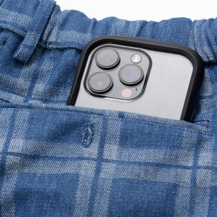 キレイめカジュアルにもぴったりなスラックス。シンプルで上品な印象を与える。 CavariA(キャバリア)デニムチェックパンツ/全2色