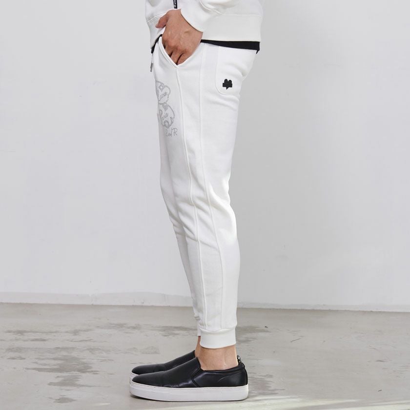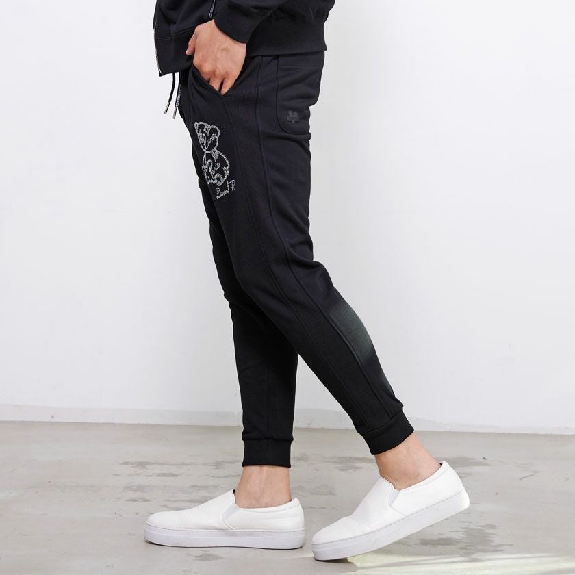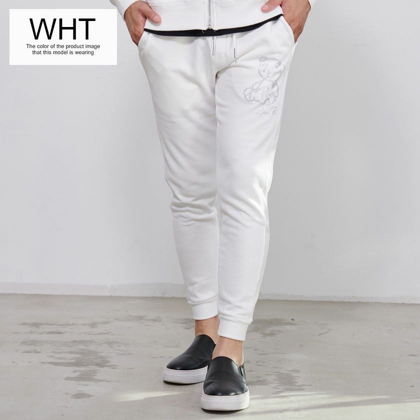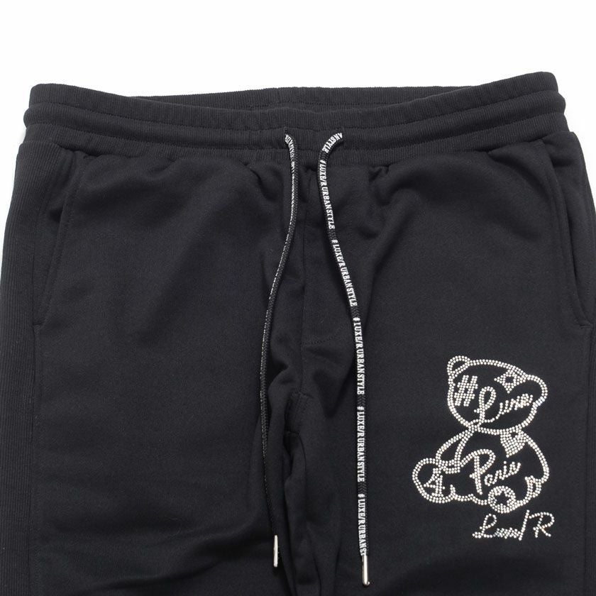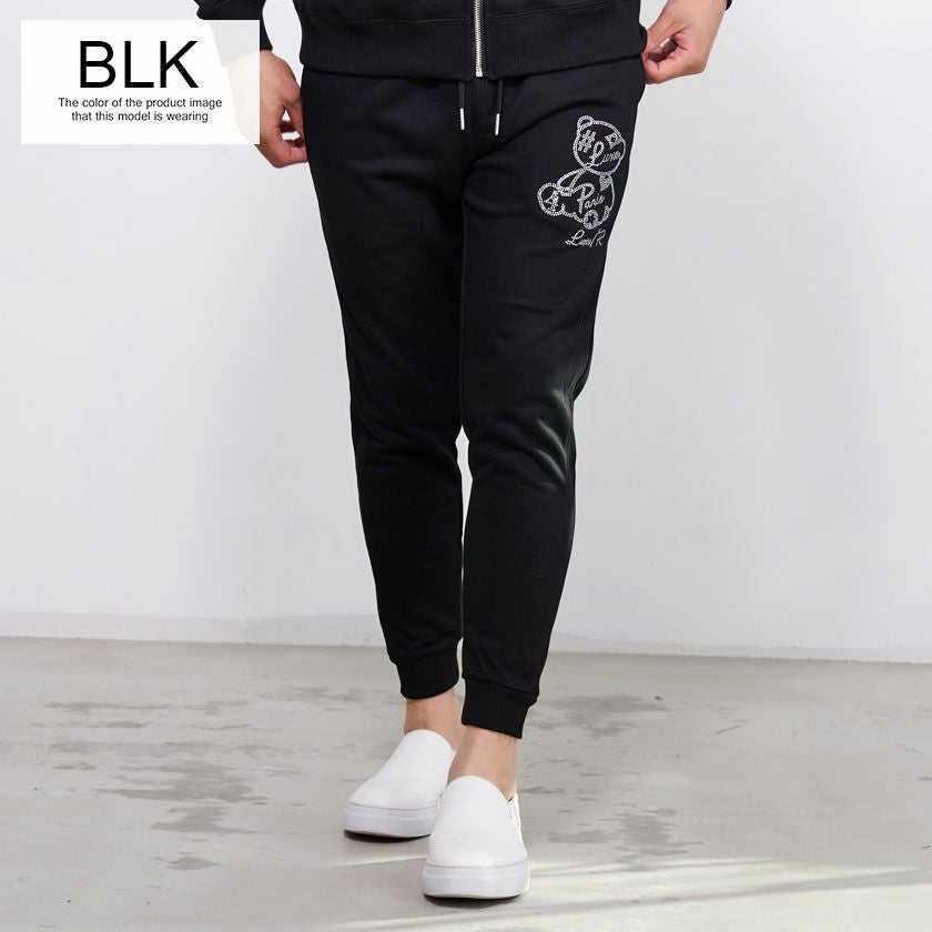 毎日履きたい、快適でおしゃれなスウェットパンツ。カジュアルスタイルに最適。 LUXE/R(ラグジュ)ラインストーンベア裏毛パンツ/全2色