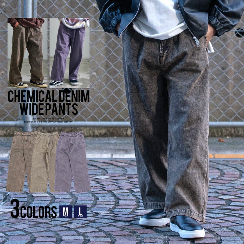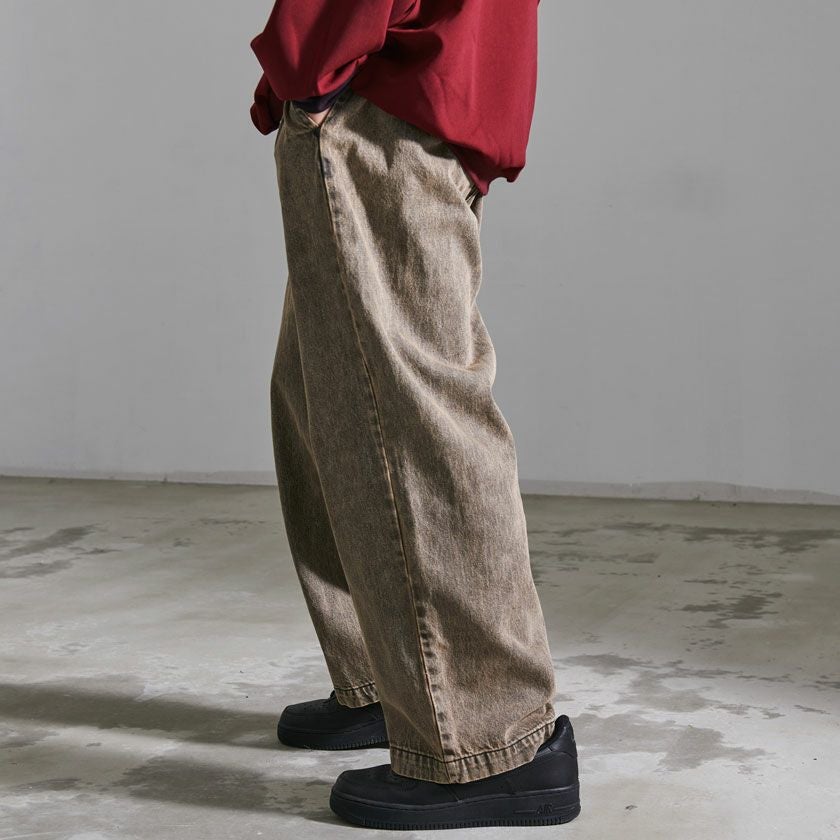 ゆったりとしたシルエットが魅力的なワイドパンツ。リラックス感とおしゃれさを両立。 CavariA(キャバリア)カラーケミカル加工2タックワイドパンツ/全3色
