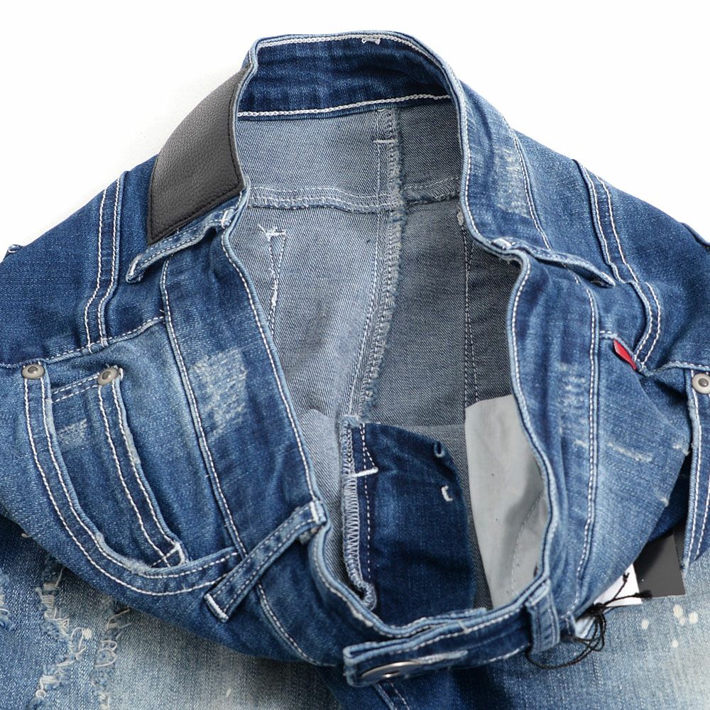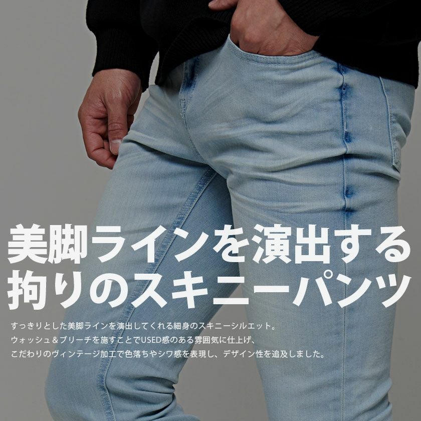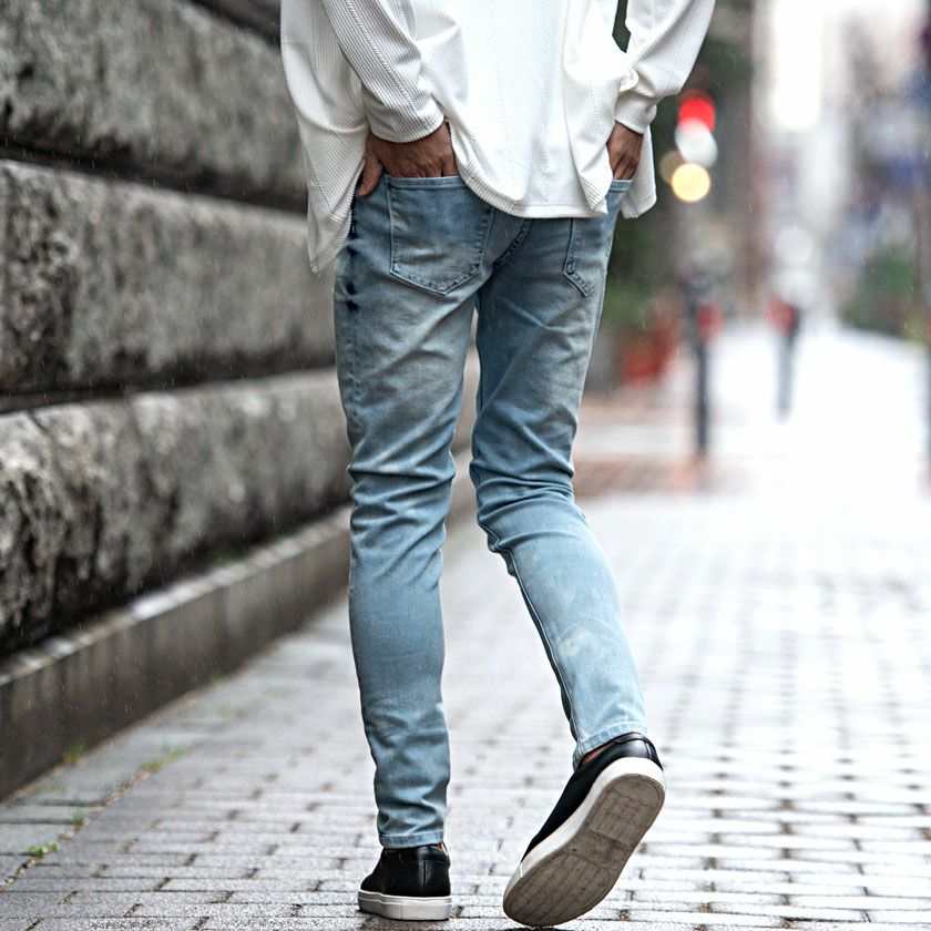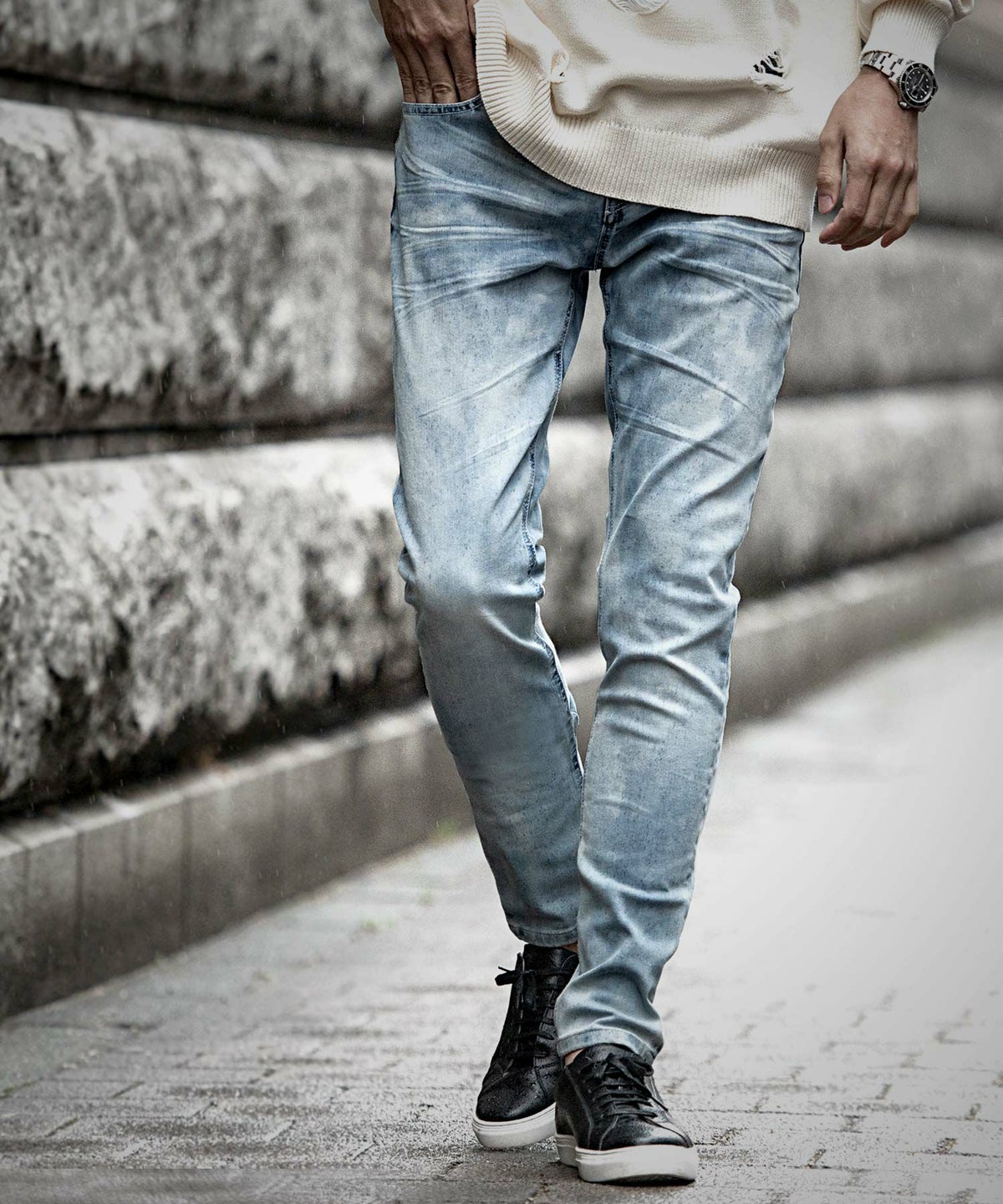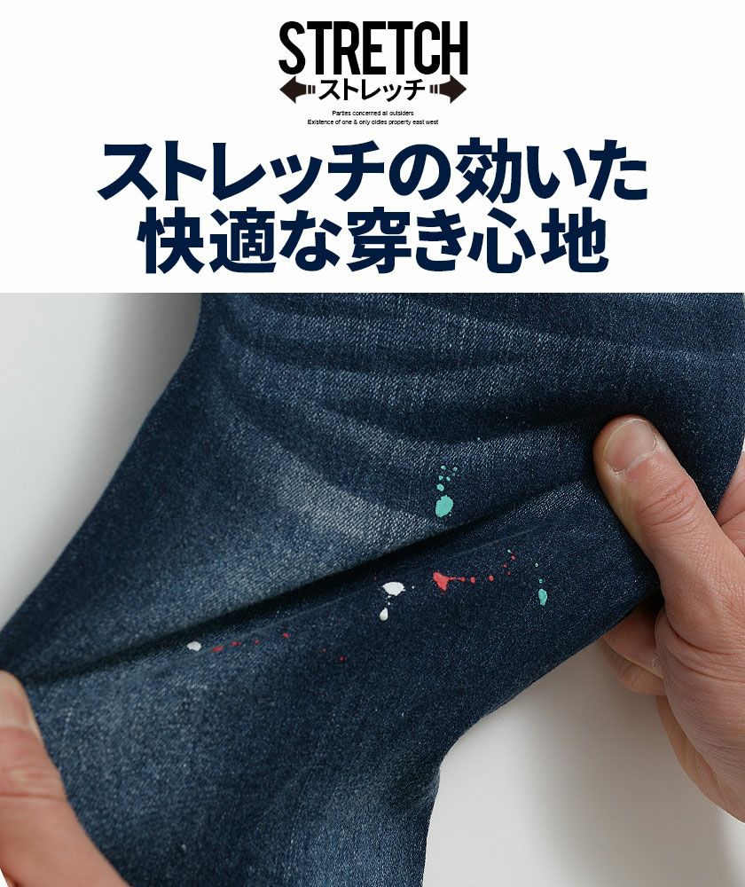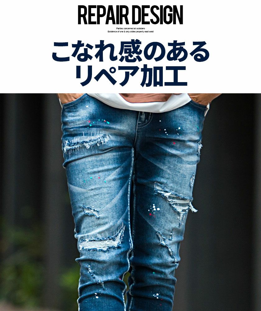 デニムパンツ メンズ ブランド おしゃれ スキニーパンツ デニム パンツ スキニーデニム ジーンズ テーパードパンツ ブリーチ ペンキ飛ばし リペア加工 細身 スリム タイト ストレッチ CavariA(キャバリア)リペアペインティングストレッチスキニーアンクルデニムパンツ/全2色