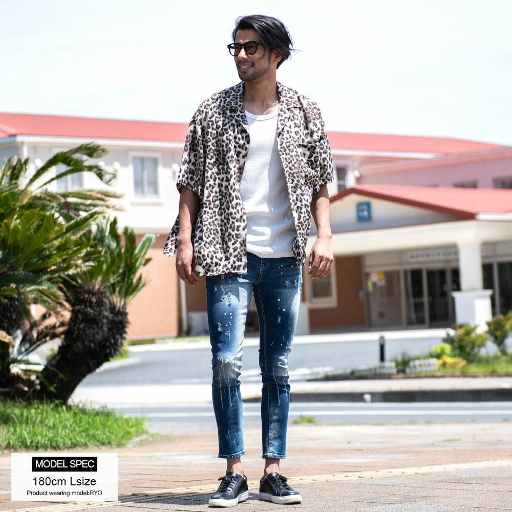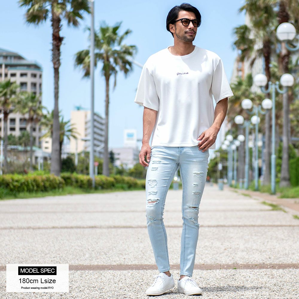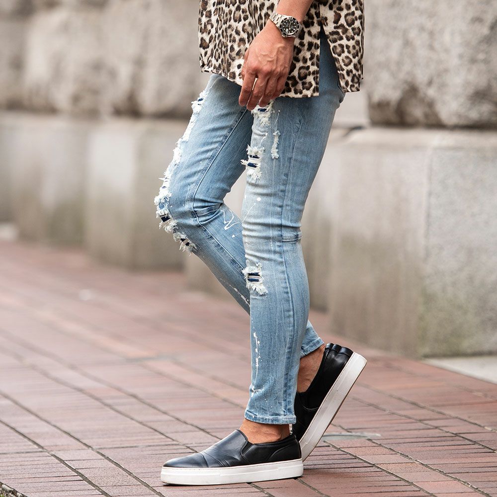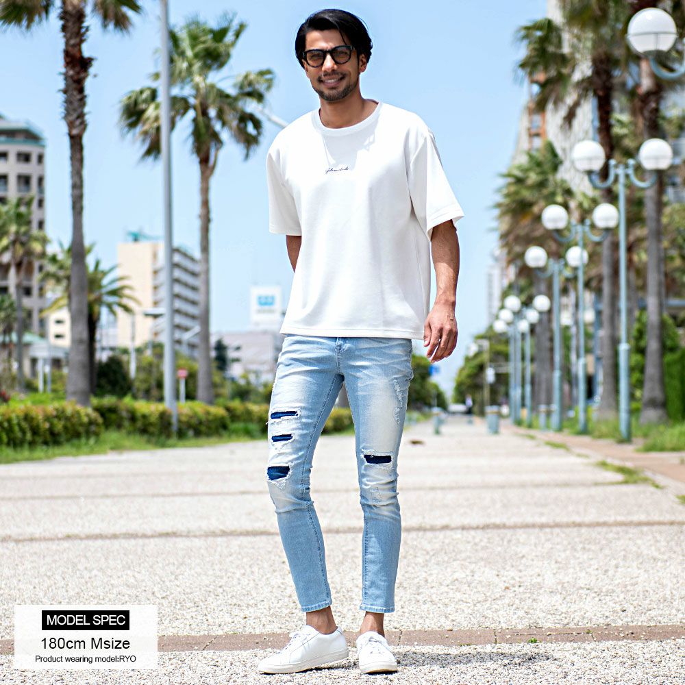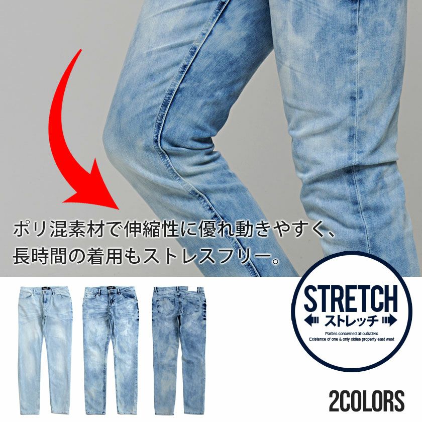 デニムパンツ メンズ ブランド おしゃれ スキニーパンツ デニム パンツ スキニーデニム ジーンズ テーパードパンツ ブリーチ ペンキ飛ばし リペア加工 細身 スリム タイト ストレッチ CavariA(キャバリア)リペアペインティングストレッチスキニーアンクルデニムパンツ/全2色