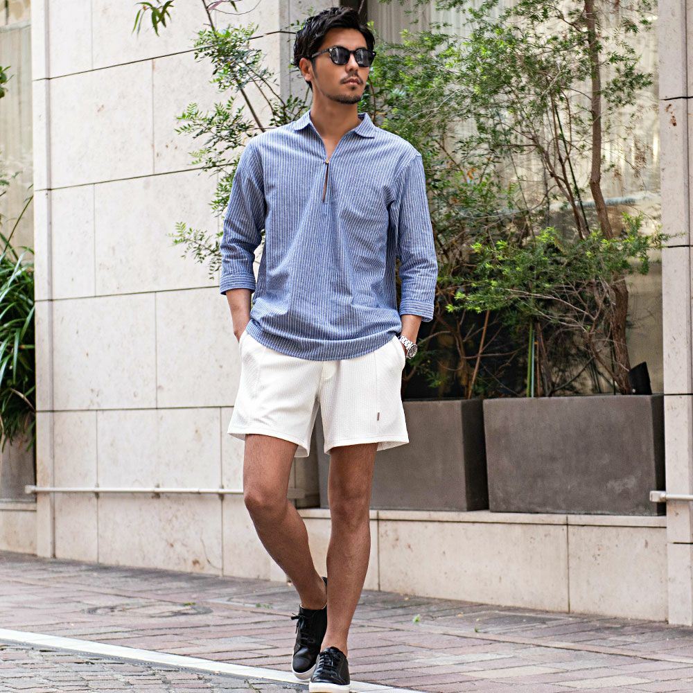 暑い季節のおしゃれアイテム、ハーフパンツ。リラックス感が魅力の夏の必需品。 【SALE/セール】CavariA(キャバリア)型押しパイルショーツ/全2色