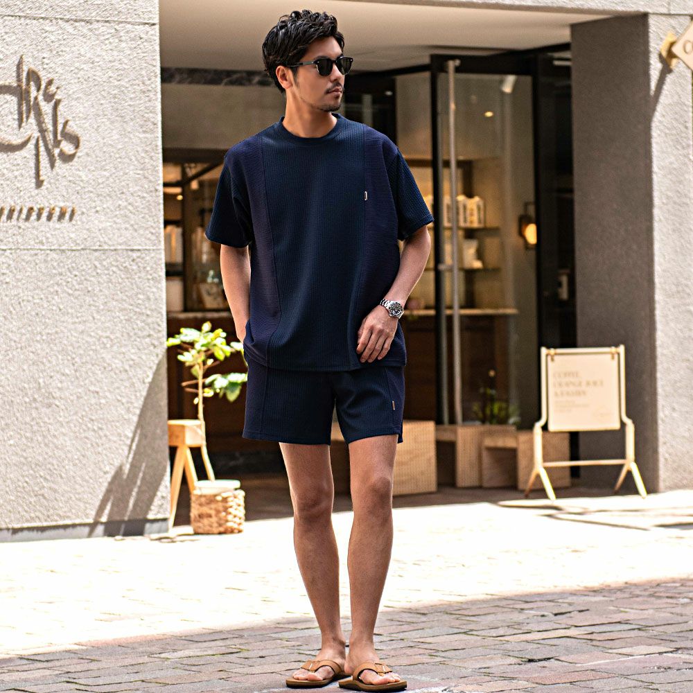 ※こちらの商品はパンツのみの販売となります。別売りのTシャツと組み合わせることで、セットアップとしてもお使い頂けます。 【SALE/セール】CavariA(キャバリア)異素材切替ジャガードドッキングショートパンツ/全4色