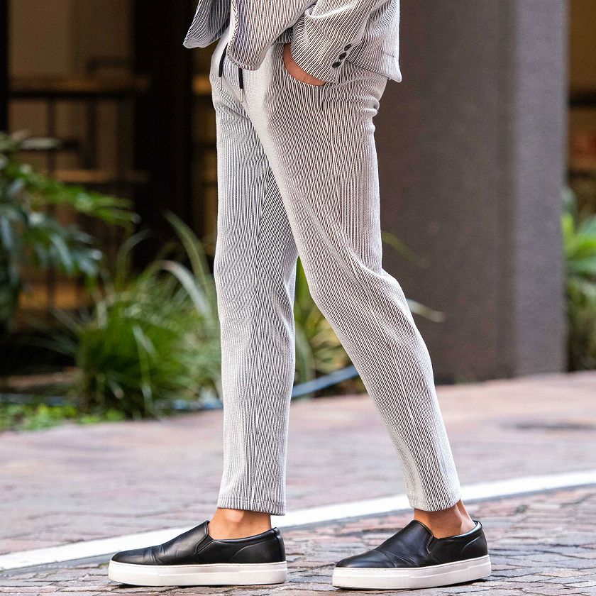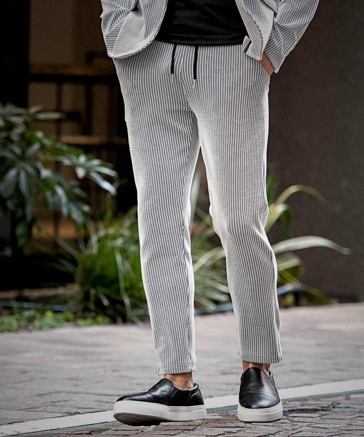 ※こちらの商品はパンツのみの販売となります。別売りのジャケットと組み合わせることで、セットアップとしてもお使い頂けます。 CavariA(キャバリア)細ふくれストライプパンツ/全3色