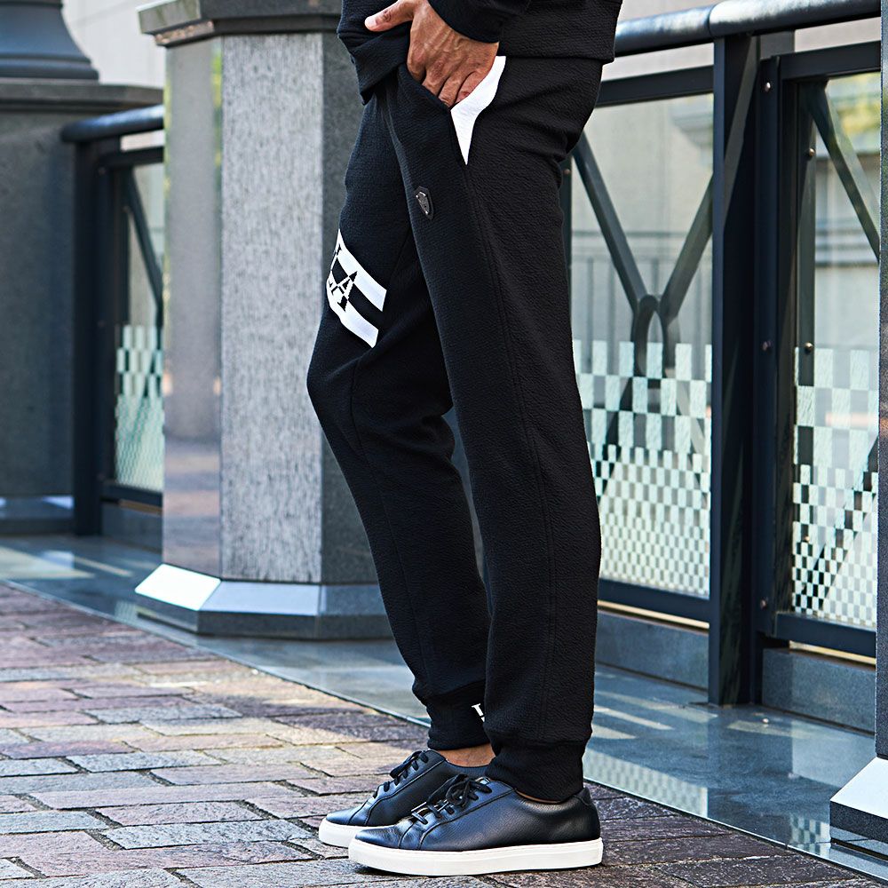 ※こちらの商品はパンツのみの販売となります。別売りのトレーナー・パーカーと組み合わせることで、セットアップとしてもお使い頂けます。 LUXE/R(ラグジュ)PUラインジャガードポンチパンツ/全3色