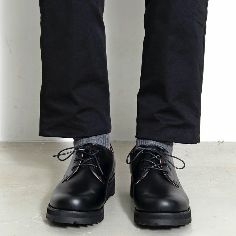 程よい光沢とシワ感のある上質なPUレザーを採用したレースアップブーツ。