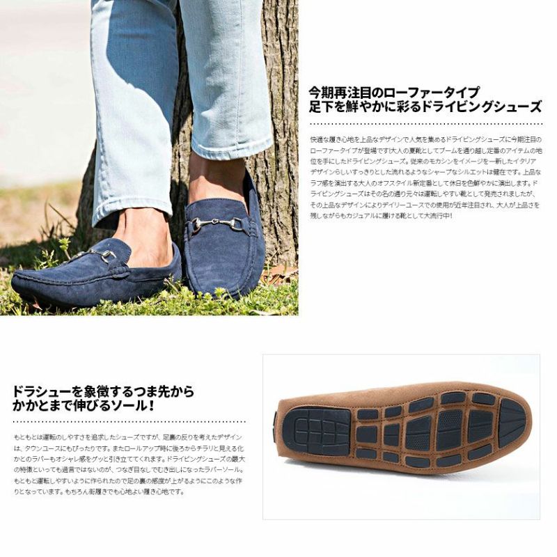 定番のビット付きデザインでボディはフェイクスウェード生地を使い、柔らかい履き心地が魅力。