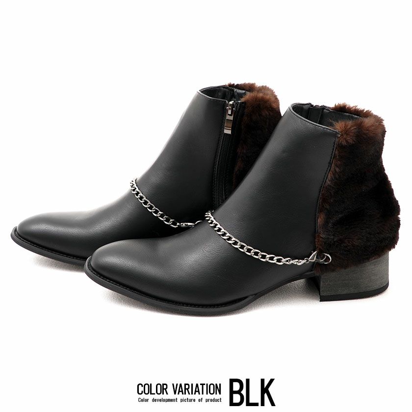 冬の必須アイテム、スタイリッシュなブーツ。暖かさとデザイン性を両立させた一足。 Bitter select(ビターセレクト)チェーン付きレザー×ファーブーツ/全2色