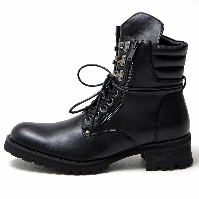 BITTER STORE(ビターストア)にBOREDOM【ボアダム】のブーツが入荷しました。 上質で肉厚なPUレザーを使用したレースアップブーツ。 武骨なデザインで両サイドに施したダブルジップがポイントです。 ヒールの高さは5cmと高めに設定しているので、脚長効果もありつつ、歩きやすいのも特徴です。 ソールはタンクソールを使用しており、滑りにくく耐久性もあります。 スキニーパンツとの相性も良く幅広いコーディネートに使えるアイテムです。 ※モデル画像は照明などの影響により実際の商品と異なる場合がございます。