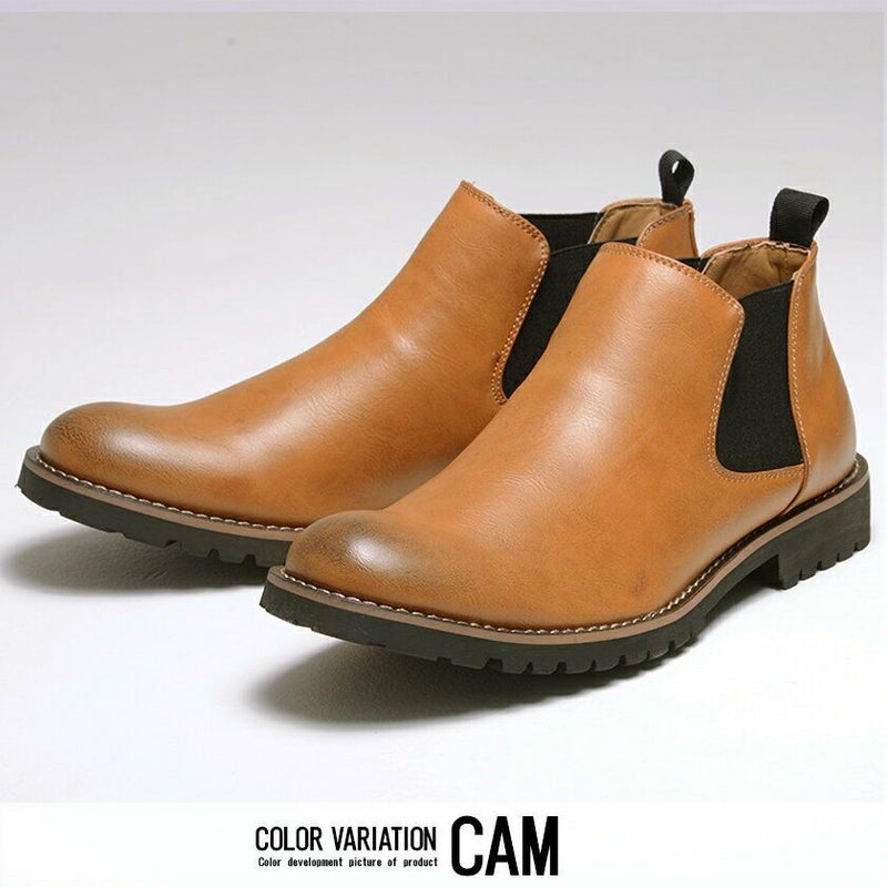 PUレザーを使用したサイドゴアブーツ。