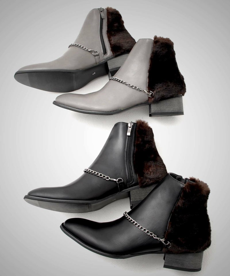 Bitter select【ビターセレクト】のショートブーツが入荷しました。 今季大注目トレンドのファー使いのシンプルなショートブーツに取り外し可能なチェーンでアクセントをプラス。 レディースではこの時期定番のファーブーツのデザインをメンズに落とし込んだトレンドアイテムです。 程よくシャープなトゥラインでシンプルなデザインはコーディネートの幅も広く使えて履くだけでトレンド感が格段にアップするオススメアイテムです。 ※モデル画像は照明などの影響により実際の商品と異なる場合がございます。