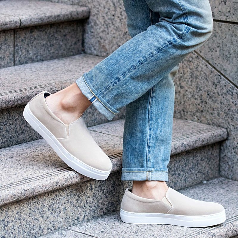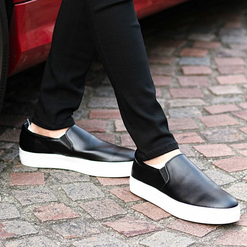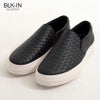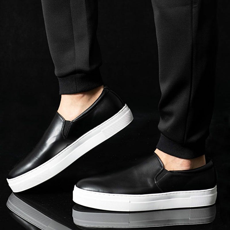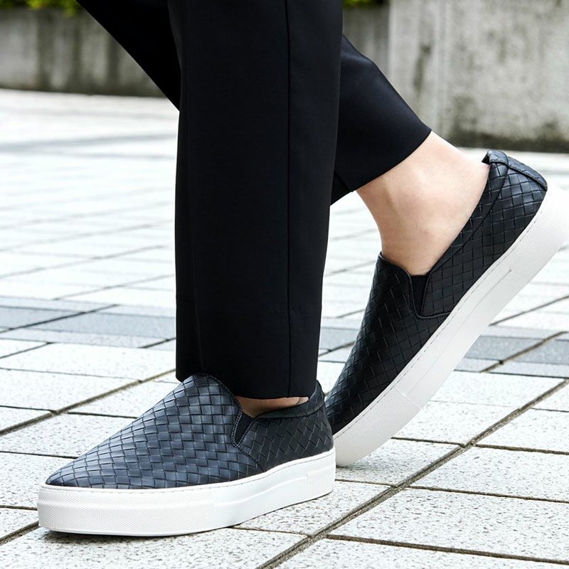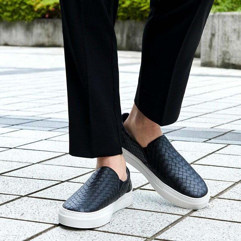 PUレザーを使用したスリッポン。