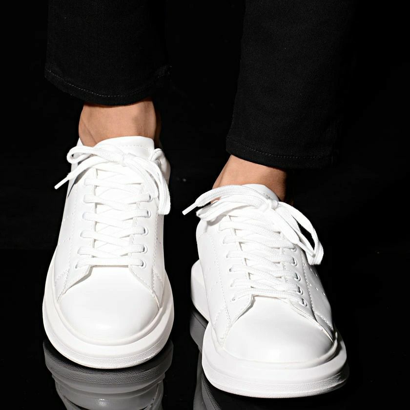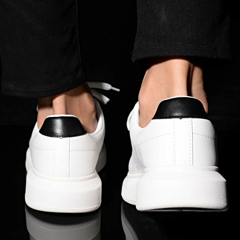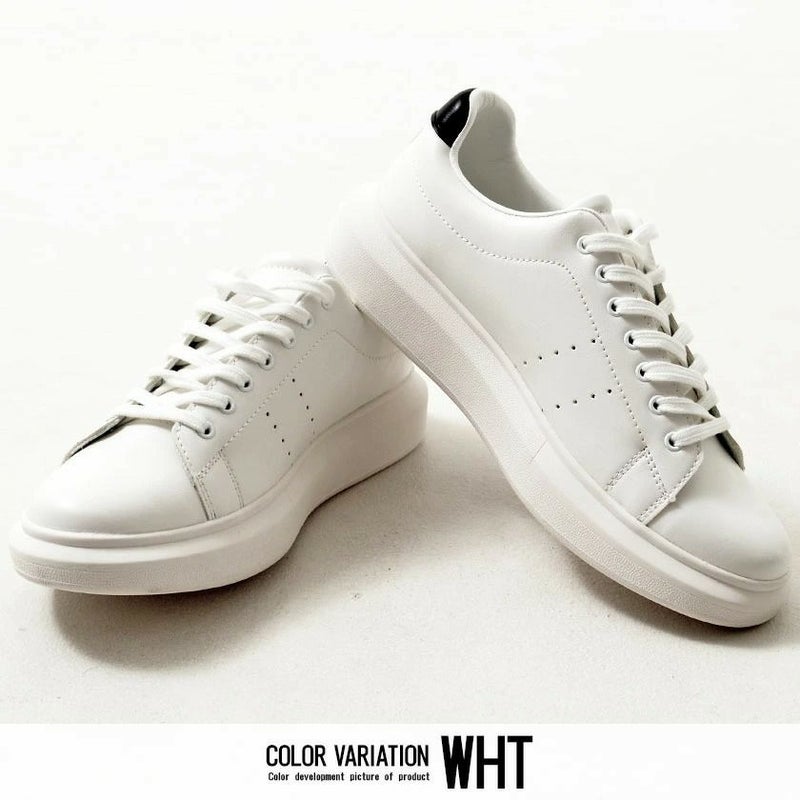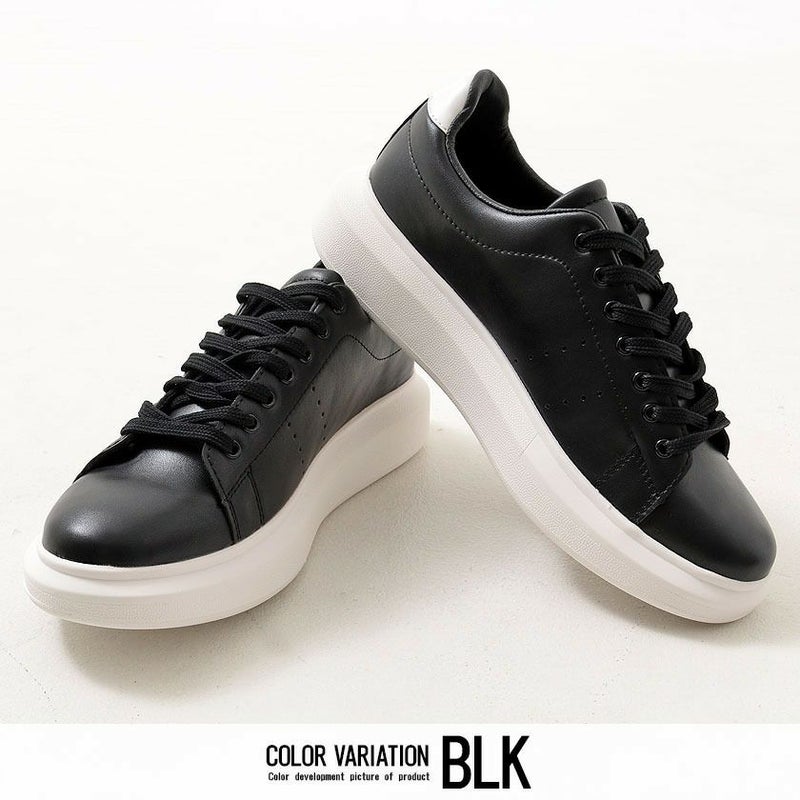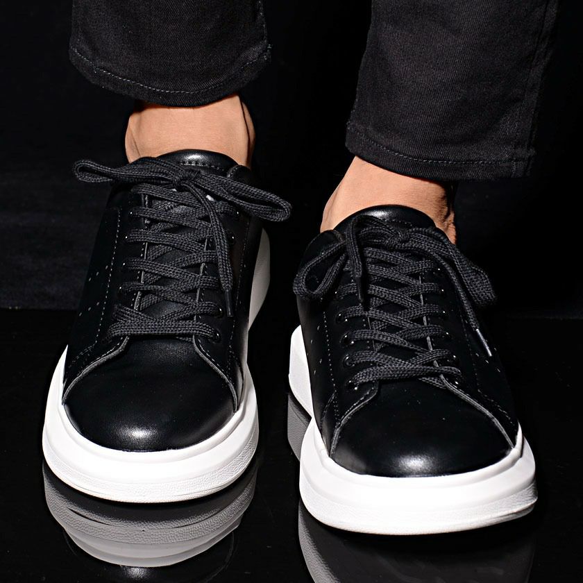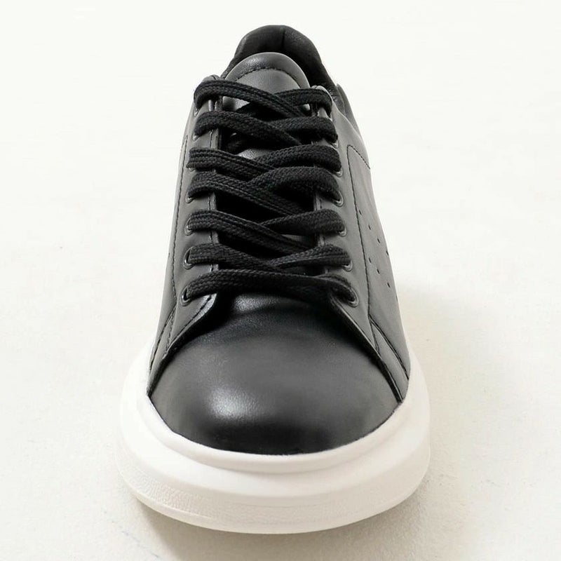 PUレザーを使用したレースアップスニーカー。