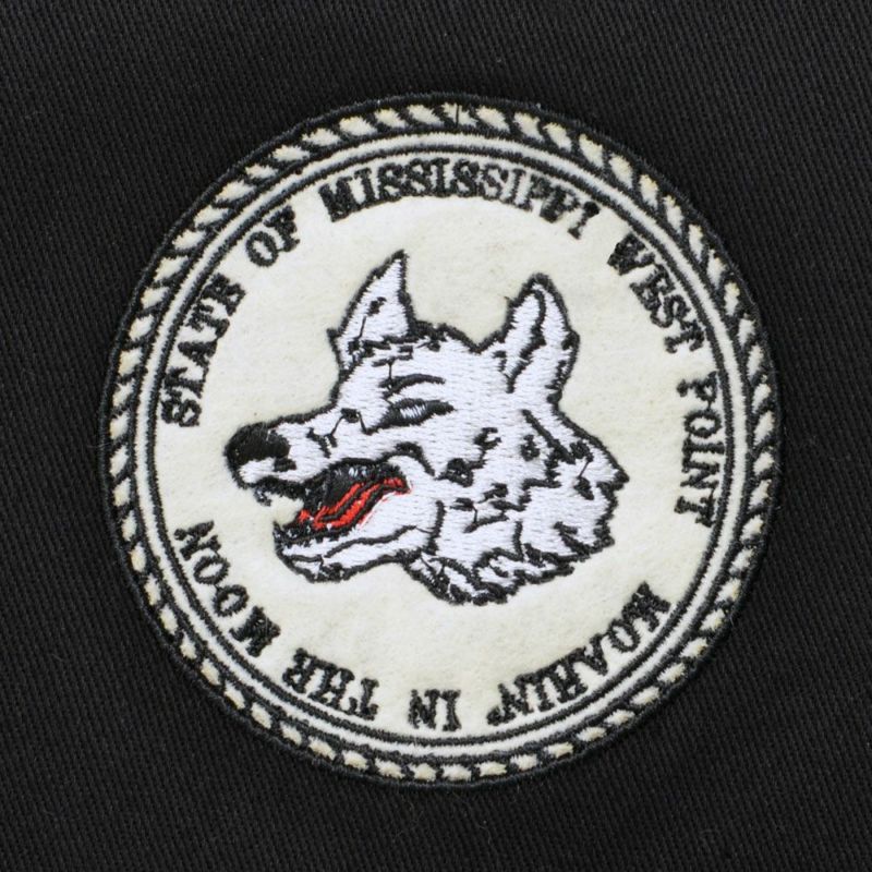 胸元や袖にあしらわれた印象的な狼のワッペンが、スタイルにアクセントをプラス。